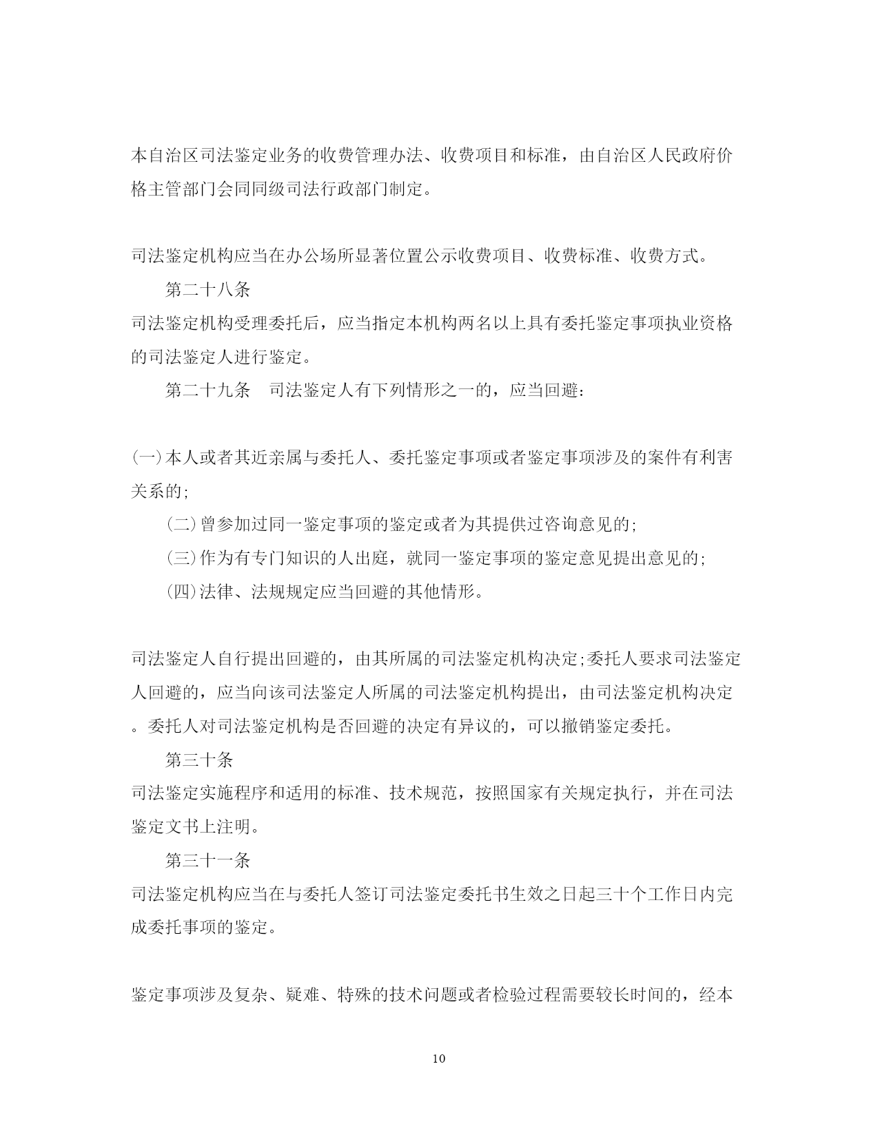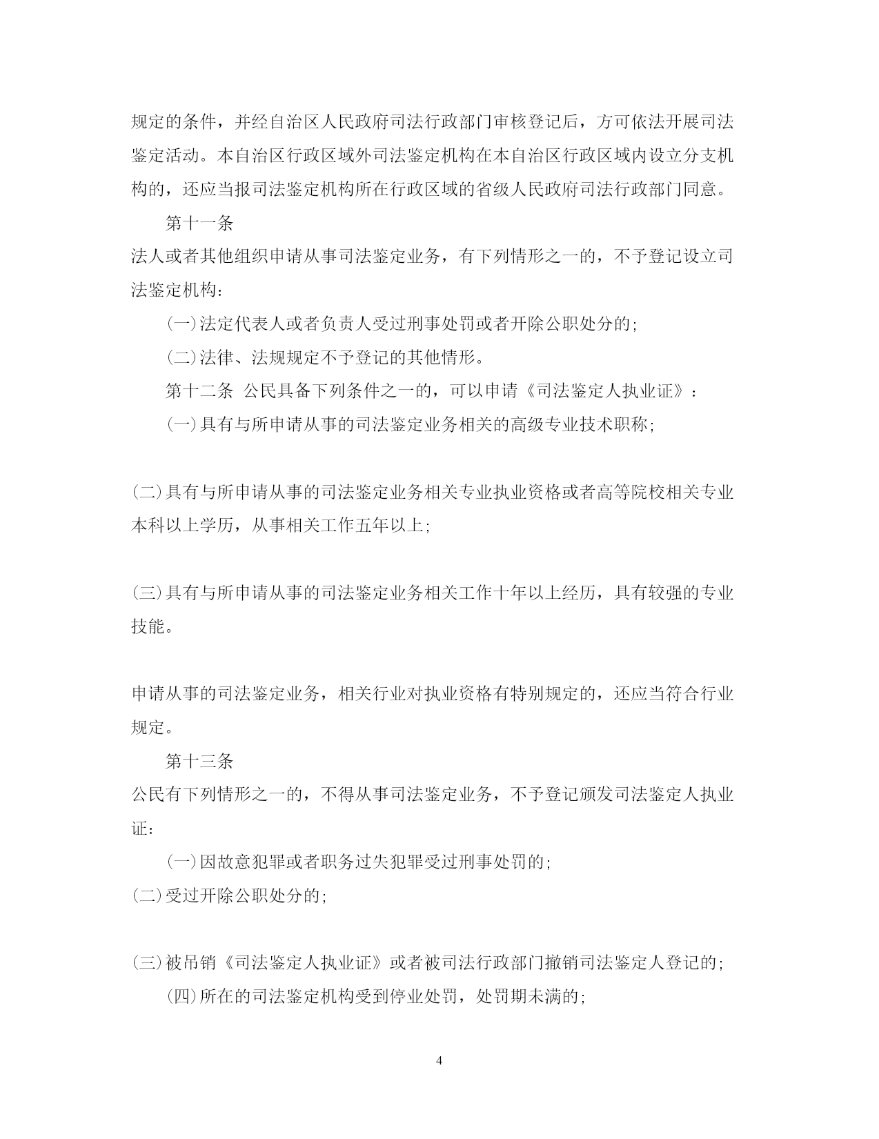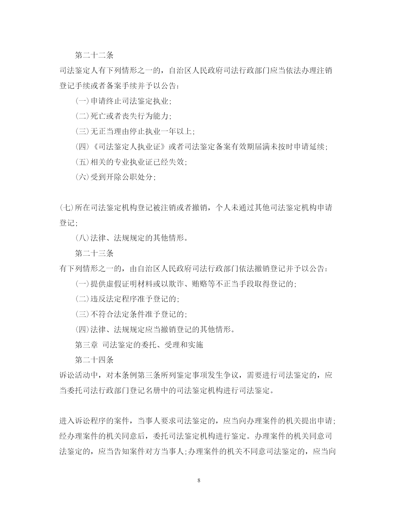 此资料由网络收集而来,如有侵权请告知上传者立即删除。资料共分享,我们负责传递知识。PAGEPAGE17广西司法鉴定管理条例司法鉴定改革一直是我国诉讼法学领域内的热点问题。司法鉴定有着悠久的历史,但做为一项法律制度建设,则是随着现代法律制度的发展逐步成长起来的。下文是广西壮族自治区司法鉴定管理条例,欢迎阅读!广西司法鉴定管理条例全文第一章总则第一条为了规范司法鉴定活动,加强对司法鉴定机构和司法鉴定人的管理,促进司法公正,保障当事人的合法权益,根据《全国人民代表大会常务委员会关于司法鉴定管理问题的决定》和有关法律、行政法规,结合本自治区实际,制定本条例。第二条本自治区行政区域内司法鉴定机构、司法鉴定人及其司法鉴定活动的监督管理,适用本条例。人民检察院、公安机关、国家安全机关设立的司法鉴定机构、司法鉴定人及其司法鉴定活动的监督管理,按照国家有关规定执行。国家对司法鉴定机构、司法鉴定人及其司法鉴定活动的监督管理另有规定的,从其规定。第三条本条例所称司法鉴定,是指司法鉴定机构和司法鉴定人运用科学技术或者专门知识对诉讼涉及的专门性问题进行鉴别和判断并提供鉴定意见的活动,包括法医类、物证类、声像资料类鉴定以及诉讼需要的其他类鉴定。本条例所称司法鉴定机构和司法鉴定人,是指经自治区人民政府司法行政部门审核登记,取得《司法鉴定许可证》《司法鉴定人执业证》,从事前款规定司法鉴定业务的机构和人员。第四条自治区和设区的市人民政府应当根据经济社会发展状况统筹规划本行政区域的司法鉴定事业,建立司法鉴定管理、司法鉴定法律援助、司法鉴定行业重大专项和民族地区司法鉴定机构专项经费保障机制,推动司法鉴定事业健康发展。第五条自治区人民政府司法行政部门负责本行政区域的司法鉴定活动的监督管理工作。设区的市和县(市、区)人民政府司法行政部门依照本条例规定负责本行政区域的司法鉴定活动的监督管理工作。第六条司法鉴定机构和司法鉴定人实行统一登记管理制度。除法律、法规另有规定外,未经自治区人民政府司法行政部门审核登记并编入名册,任何组织和个人不得从事司法鉴定业务。人民检察院、公安机关、国家安全机关根据侦查工作需要设立的司法鉴定机构及其司法鉴定人员按照国家有关规定从事司法鉴定业务,实行备案登记制度,由人民检察院、公安机关、国家安全机关直接管理,不得面向社会接受委托从事司法鉴定业务。自治区人民政府司法行政部门收到人民检察院、公安机关、国家安全机关的有关备案登记材料后,应当在一个月内予以备案登记,单独编制名册并公告。备案登记的司法鉴定机构、司法鉴定人情况发生变化的,应当及时书面告知自治区人民政府司法行政部门。第七条司法鉴定机构和司法鉴定人从事司法鉴定业务,实行司法鉴定人负责制度,应当遵守法律、法规,恪守职业道德和执业纪律,执行科学统一的司法鉴定程序、技术标准和操作规范,接受社会监督。第八条自治区人民政府司法行政部门与本级人民法院、人民检察院、公安机关、国家安全机关应当建立司法鉴定工作联动协调机制。第九条司法鉴定机构、司法鉴定人可以依法参加司法鉴定协会。司法鉴定协会应当依照本条例和司法鉴定协会章程开展活动,对会员加强职业道德、行为规范以及执业技能等行业自律管理,依法保护会员的合法权益,维护有序竞争。司法鉴定协会应当接受司法行政部门的指导和监督。第二章司法鉴定机构和司法鉴定人第十条法人或者其他组织申请登记设立司法鉴定机构的,应当具备下列条件:(一)有符合规范的名称、符合司法鉴定要求的执业场所和不少于二十万元人民币的资金;(二)有明确的司法鉴定业务范围;(三)有在业务范围内进行司法鉴定必需的仪器、设备;(四)有在业务范围内进行司法鉴定必需的依法通过计量认证或者实验室认可的检测实验室;(五)申请从事的每项司法鉴定业务有三名以上司法鉴定人。申请从事的司法鉴定业务相关行业有特殊资质要求的,除具备前款规定条件外,还应当具备相应的行业资质。司法鉴定机构在本自治区行政区域内设立分支机构的,分支机构应当符合第一款规定的条件,并经自治区人民政府司法行政部门审核登记后,方可依法开展司法鉴定活动。本自治区行政区域外司法鉴定机构在本自治区行政区域内设立分支机构的,还应当报司法鉴定机构所在行政区域的省级人民政府司法行政部门同意。第十一条法人或者其他组织申请从事司法鉴定业务,有下列情形之一的,不予登记设立司法鉴定机构:(一)法定代表人或者负责人受过刑事处罚或者开除公职处分的;(二)法律、法规规定不予登记的其他情形。第十二条公民具备下列条件之一的,可以申请《司法鉴定人执业证》:(一)具有与所申请从事的司法鉴定业务相关的高级专业技术职称;(二)具有与所申请从事的司法鉴定业务相关专业执业资格或者高等院校相关专业本科以上学历,从事相关工