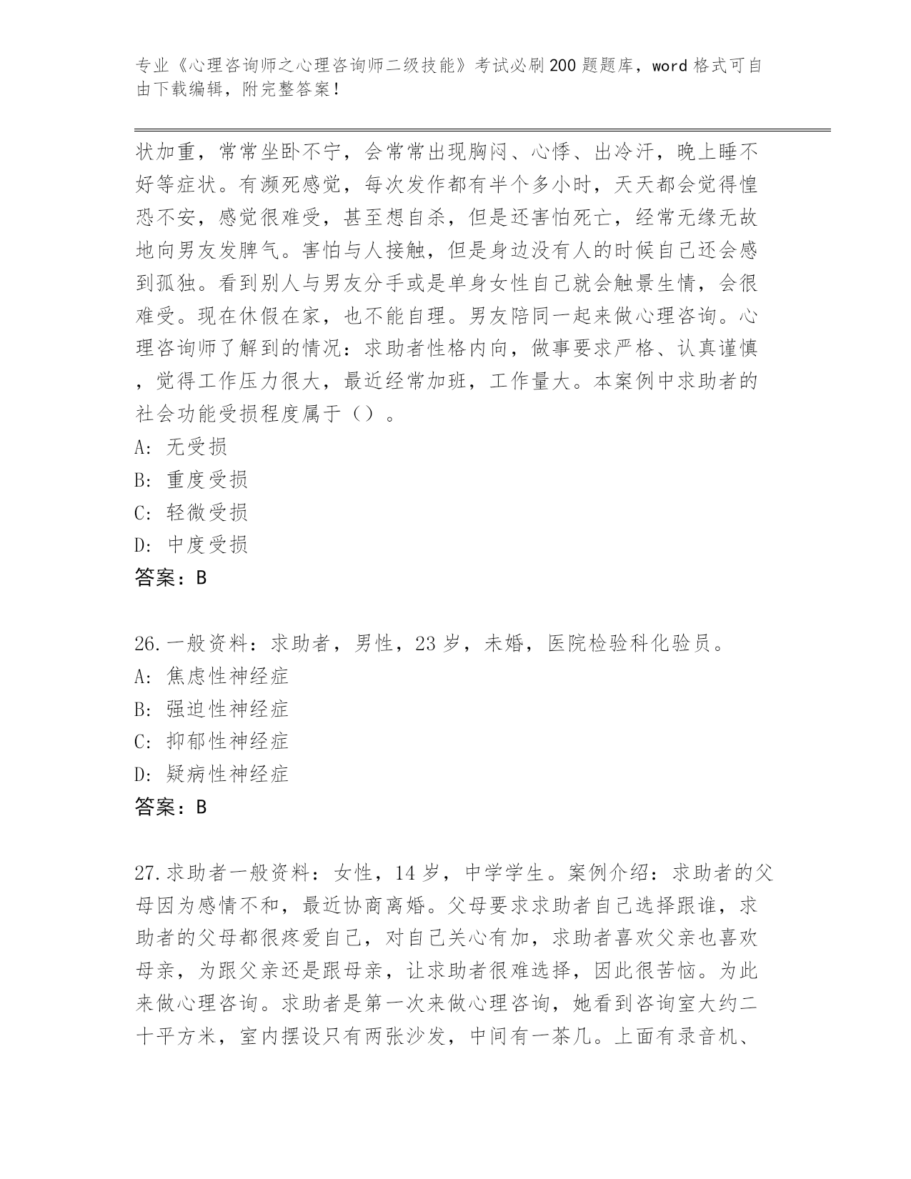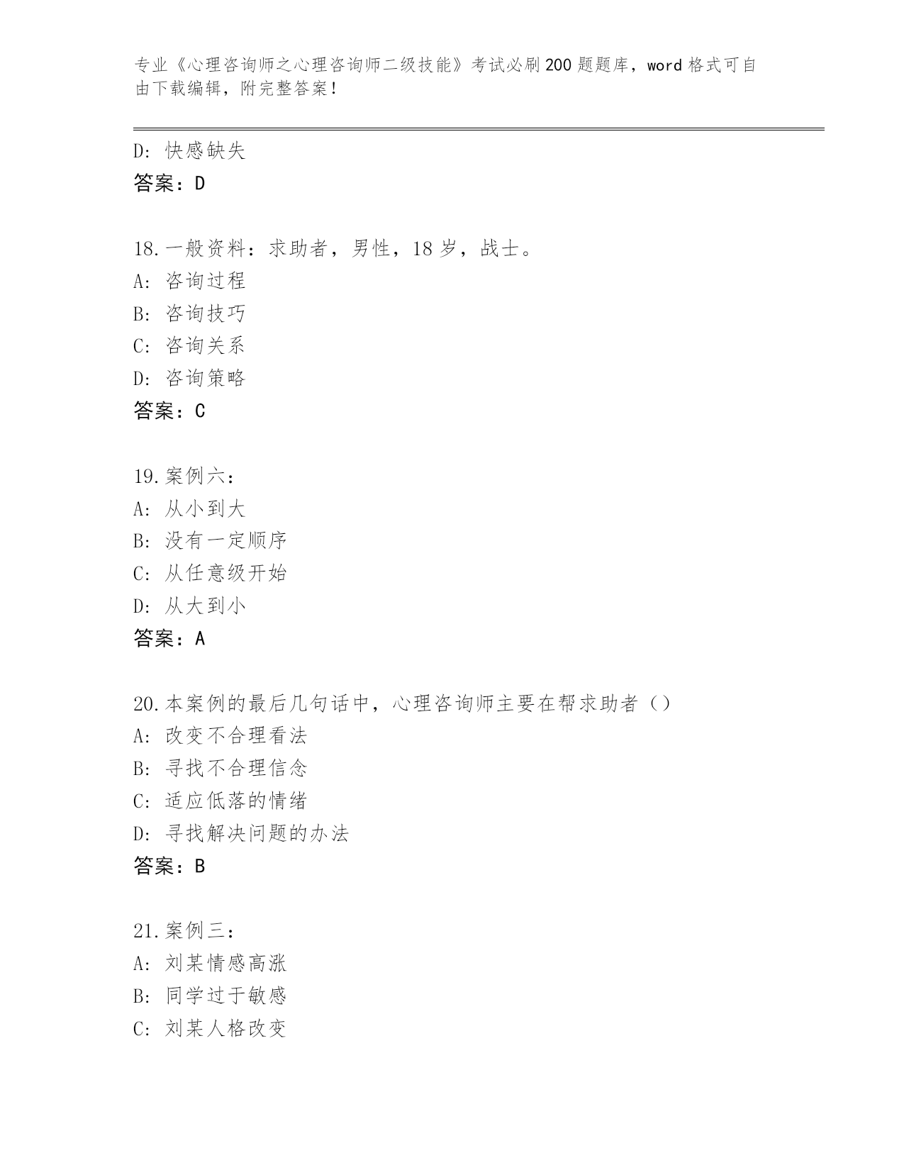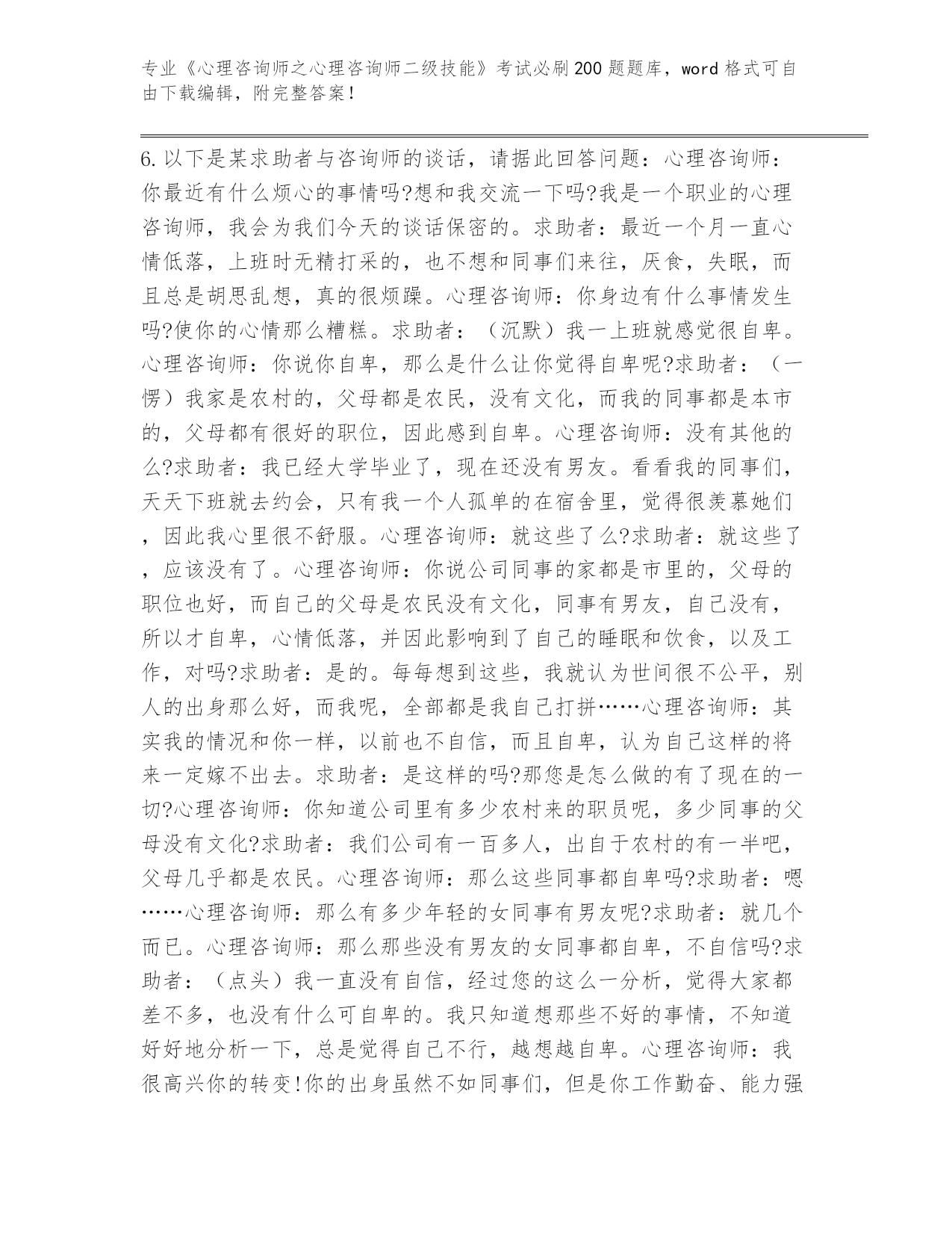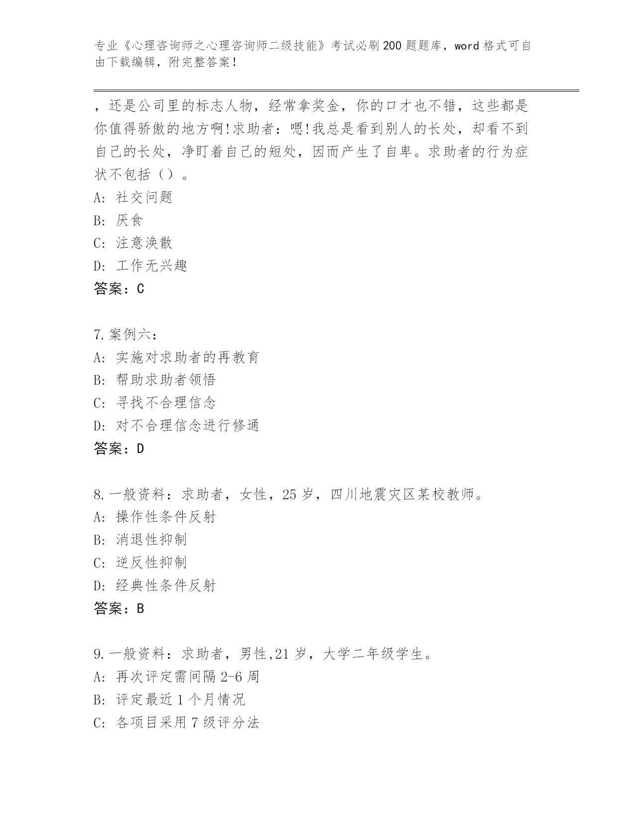 广东省《心理咨询师之心理咨询师二级技能》考试必刷200题完整版加答案解析