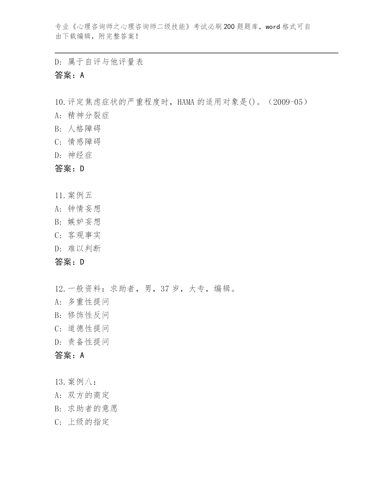 山西省2024《心理咨询师之心理咨询师二级技能》考试必刷200题完整版加答案