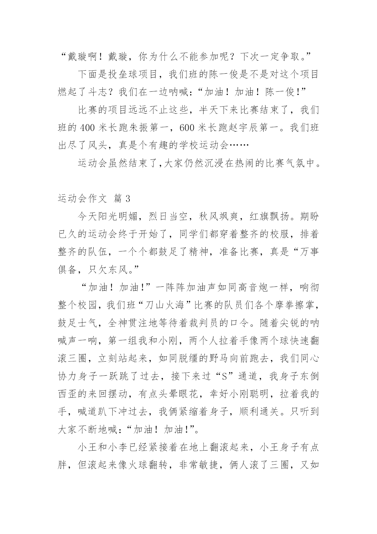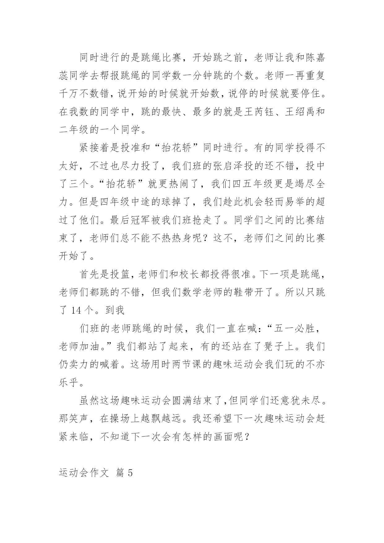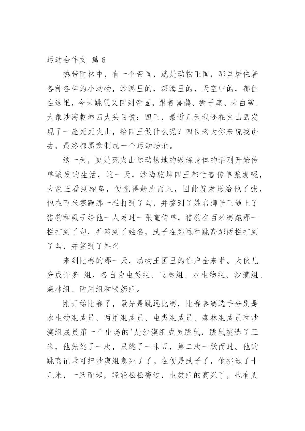 运动会作文关于运动会作文汇总6篇在学习、工作乃至生活中,大家对作文都再熟悉不过了吧,作文要求篇章结构完整,一定要避免无结尾作文的出现。那么问题来了,到底应如何写一篇优秀的作文呢?下面是小编整理的运动会作文6篇,仅供参考,希望能够帮助到大家。运动会作文篇1星期三那天,我们学校举行了一场激动人心的运动会。上午8:30分,运动会开始了,同学们都各显神通。本次运动会分别有:50米跑”200米跑”400米跑”扔实心球”跳远”立定跳远”丢沙包等。首先是女子200米跑步。”砰”,枪声一响,四(3)班的运动员李思嘉遥遥领先,把其他同学落在后面。四(3)班的同学大声的.为她助威”加油,使得她越跑越有劲,最终获得了第一名的好成绩。接下来是四(3)班的运动员倪菡,她也是参加200米跑步。她有充分的准备。枪声一响,就跑。开始,她为了保持体力,速度并不是很快,跑在第二个位置。到最后的时候,他奋力往前冲,以惊人的速度冲过前一个同学,到达终点,她也获得了第一名的好成绩。倪菡还参加了跳远比赛。开始做准备试跳时,她跳得并不好,可正式跳时,她起跑“跳”落地的整个过程都做得非常的到位,再加上我们的大声助威,使得她跳得非常棒。又获得了一个第一名。我们全班同学都为她取得好成绩感到无比自豪。本次运动会我参加了扔实心球和400米跑两项。预备前,试扔实心球时,我扔得很远,正式比赛扔的时候,姿势”力度都很好,由于我太紧张,结果只得了第三名。400米跑步决赛,我先是遥遥领先,占了上风,后来因我体力不足而被落到了第二,只剩下50米时,我心里就在说:”我不是别人,我是诗雨,我相信,我能行”!于是,我用尽了全身的力气冲刺,最终还是只得了第三名……这次运动会,我们都获得了优异的成绩,通过这次运动会,我看到了自己薄弱的一面??关键的时候就发挥不好。我一定会向优秀的同学学习,争取下次能得个第一的好成绩。运动会作文篇2在这春光明媚、生机勃勃的早上,我们迎来一年一度的学校运动会。会场上很热闹,大家兴高采烈、井然有序地来到操场。首先是拉拉队表演,她们两手挥舞,姿势优美很有秩序。轮到武术操了,他们一招一式刚劲有力。比赛正式开始了,只见运动员们风驰电掣般的速度,像一只只飞奔在草原上的骏马,在跑道上你追我赶,发奋拼搏。而我却不能参加比赛,只能享受着比赛的`快乐。我问自己:“戴璇啊!戴璇,你为什么不能参加呢?下次一定争取。”下面是投垒球项目,我们班的陈一俊是不是对这个项目燃起了斗志?我们在一边呐喊:“加油!加油!陈一俊!”比赛的项目远远不止这些,半天下来比赛结束了,我们班的400米长跑朱振第一,600米长跑赵宇辰第一。我们班出尽了风头,真是个有趣的学校运动会……运动会虽然结束了,大家仍然沉浸在热闹的比赛气氛中。运动会作文篇3今天阳光明媚,烈日当空,秋风飒爽,红旗飘扬。期盼已久的运动会终于开始了,同学们都穿着整齐的校服,排着整齐的队伍,一个个都鼓足了精神,准备比赛,真是“万事俱备,只欠东风。”“加油!加油!”一阵阵加油声如同高音炮一样,响彻整个校园,我们班“刀山火海”比赛的队员们各个摩拳擦掌,鼓足士气,全神贯注地等待着裁判员的口令。随着尖锐的呐喊声一响,第一组我和小刚,两个人拉着手像两个球快速翻滚三圈,立刻站起来,如同脱缰的野马向前跑去,我们同心协力身子一跃跳了过去,接下来过“S”通道,我身子东倒西歪的来回摆动,有点头晕眼花,幸好小刚聪明,拉着我的手,喊道趴下冲过去,我俩紧缩着身子,顺利通关。只听到大家不断地喊:“加油!加油!”。小王和小李已经紧接着在地上翻滚起来,小王身子有点胖,但滚起来像火球翻转,非常敏捷,俩人滚了三圈,又如同兔子般飞快地跑了起来,眼看就要跳过去了,可是小王身子胖,怎么也跳不过去,急得满头大汗,小李急中生计,喊道:“我俩跨过去。”两人顺利通关,在场的拉拉队员们紧缩的眉头终于舒展开来,松了一口气。开始过“S”通道了,胖胖的.小王身子一扭一扭很快通过,可是最后要爬过去,小李喊道:“紧贴着地,快速通过。”小王面如土色,立刻趴下紧贴着地面毫不示弱的顺利通关。小强和小明配合更加默契了,一眨眼的功夫他俩像两只小鸟就开始过“S”通道,俩人身子东倒西歪的像走人字步,很快就到最后一关,只见他俩像两只老鼠一样一溜烟的爬过去了。这次“刀山火海”的运动会比赛,我们班虽然没得第一,但是“失败是成功之母”,我们个个都很高兴,很有收获,也明白了“团结就是力量”的道理。运动会作文篇4周三下午,天气很冷,但还是阻挡不了同学们的热情。我们穿着干净整洁的校服,戴着鲜艳的红领巾来到学校。怀着一颗激动的心准备参加旧镇小学一年一度的趣味运动会。杨校长宣布—“第二届趣味运动会现在开始。”报名参加的同学都很激动。第一项是一、二、三年级的'“袋鼠运瓜”,其实就是一个人用腿夹着球,谁先到终点谁就赢了。三个年级都很卖力,冠军被三年级夺