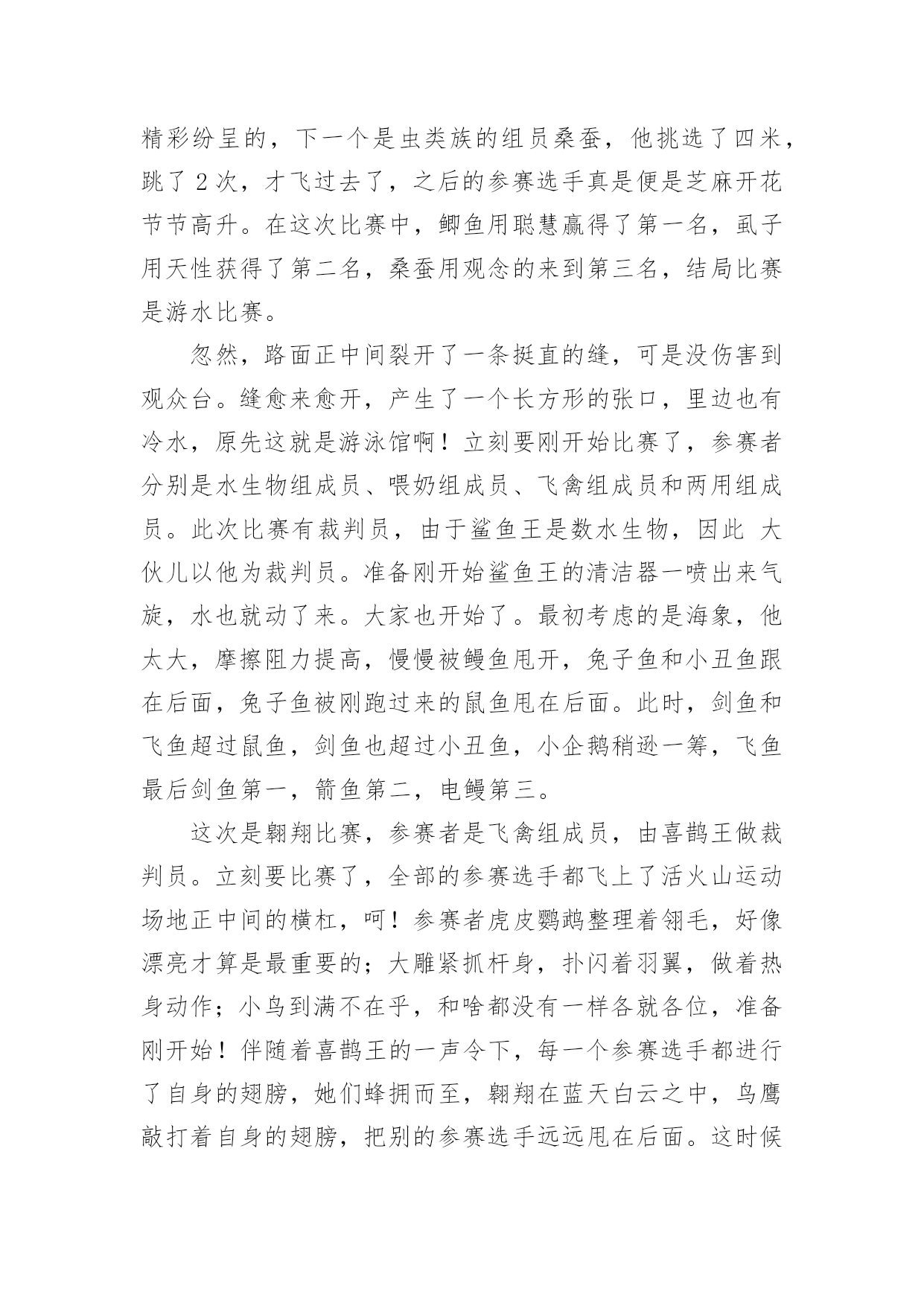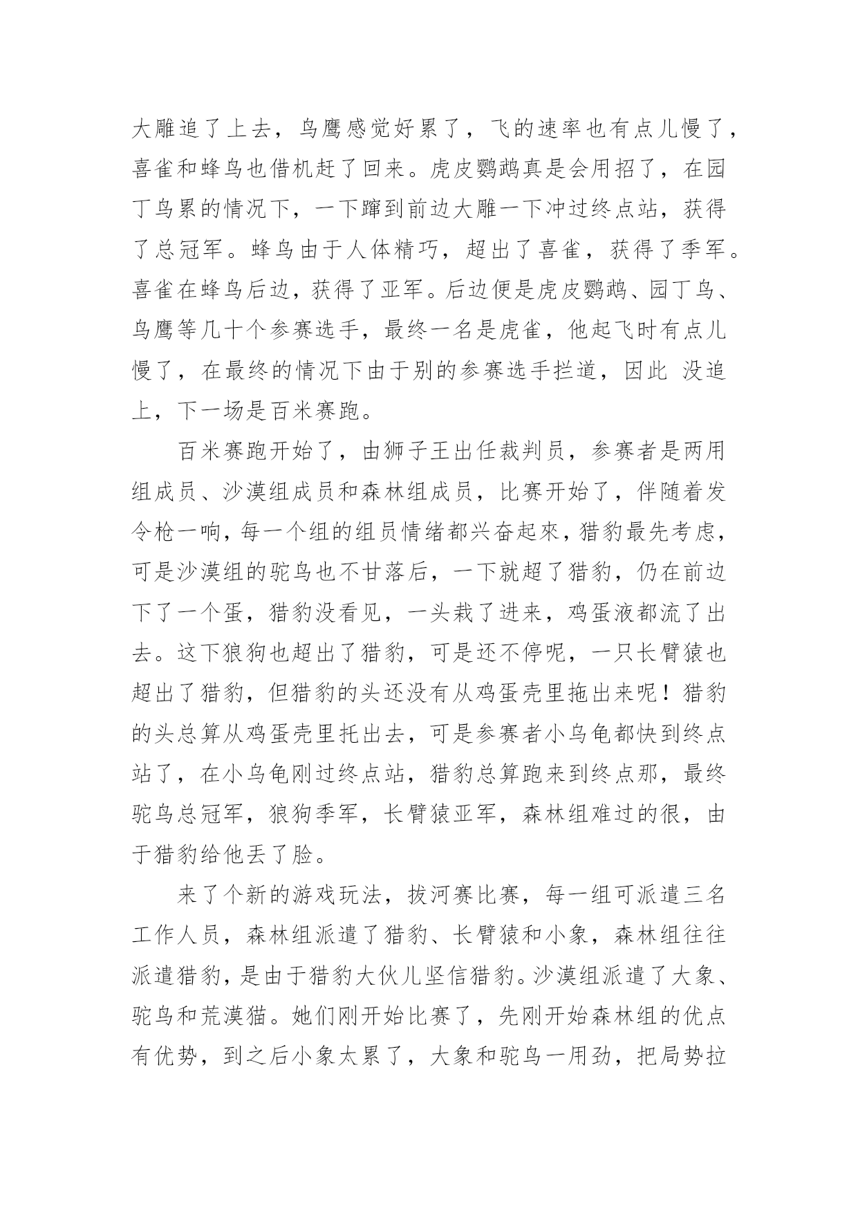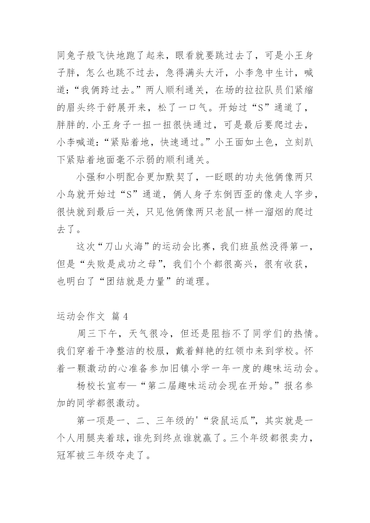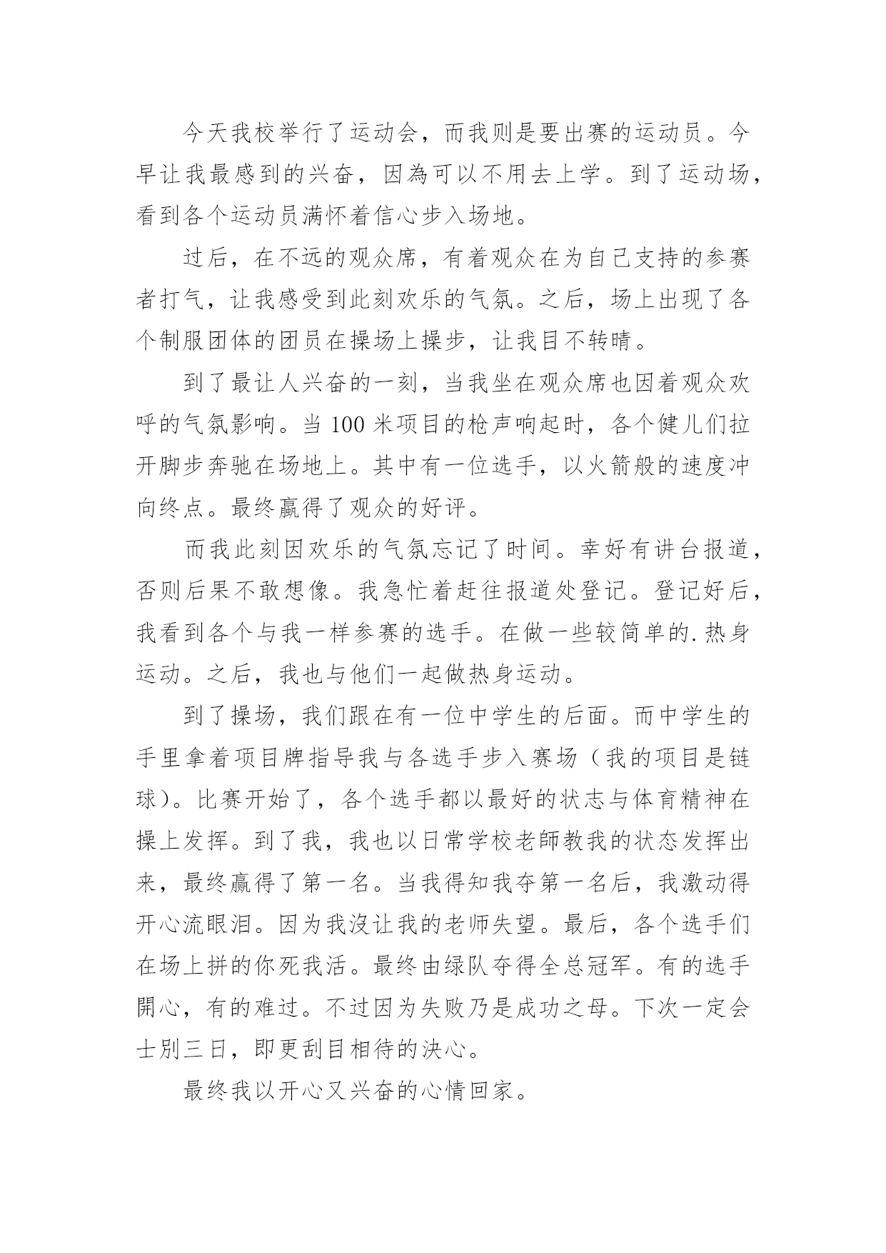 运动会作文关于运动会作文汇总6篇在学习、工作乃至生活中,大家对作文都再熟悉不过了吧,作文要求篇章结构完整,一定要避免无结尾作文的出现。那么问题来了,到底应如何写一篇优秀的作文呢?下面是小编整理的运动会作文6篇,仅供参考,希望能够帮助到大家。运动会作文篇1星期三那天,我们学校举行了一场激动人心的运动会。上午8:30分,运动会开始了,同学们都各显神通。本次运动会分别有:50米跑”200米跑”400米跑”扔实心球”跳远”立定跳远”丢沙包等。首先是女子200米跑步。”砰”,枪声一响,四(3)班的运动员李思嘉遥遥领先,把其他同学落在后面。四(3)班的同学大声的.为她助威”加油,使得她越跑越有劲,最终获得了第一名的好成绩。接下来是四(3)班的运动员倪菡,她也是参加200米跑步。她有充分的准备。枪声一响,就跑。开始,她为了保持体力,速度并不是很快,跑在第二个位置。到最后的时候,他奋力往前冲,以惊人的速度冲过前一个同学,到达终点,她也获得了第一名的好成绩。倪菡还参加了跳远比赛。开始做准备试跳时,她跳得并不好,可正式跳时,她起跑“跳”落地的整个过程都做得非常的到位,再加上我们的大声助威,使得她跳得非常棒。又获得了一个第一名。我们全班同学都为她取得好成绩感到无比自豪。本次运动会我参加了扔实心球和400米跑两项。预备前,试扔实心球时,我扔得很远,正式比赛扔的时候,姿势”力度都很好,由于我太紧张,结果只得了第三名。400米跑步决赛,我先是遥遥领先,占了上风,后来因我体力不足而被落到了第二,只剩下50米时,我心里就在说:”我不是别人,我是诗雨,我相信,我能行”!于是,我用尽了全身的力气冲刺,最终还是只得了第三名……这次运动会,我们都获得了优异的成绩,通过这次运动会,我看到了自己薄弱的一面??关键的时候就发挥不好。我一定会向优秀的同学学习,争取下次能得个第一的好成绩。运动会作文篇2在这春光明媚、生机勃勃的早上,我们迎来一年一度的学校运动会。会场上很热闹,大家兴高采烈、井然有序地来到操场。首先是拉拉队表演,她们两手挥舞,姿势优美很有秩序。轮到武术操了,他们一招一式刚劲有力。比赛正式开始了,只见运动员们风驰电掣般的速度,像一只只飞奔在草原上的骏马,在跑道上你追我赶,发奋拼搏。而我却不能参加比赛,只能享受着比赛的`快乐。我问自己:“戴璇啊!戴璇,你为什么不能参加呢?下次一定争取。”下面是投垒球项目,我们班的陈一俊是不是对这个项目燃起了斗志?我们在一边呐喊:“加油!加油!陈一俊!”比赛的项目远远不止这些,半天下来比赛结束了,我们班的400米长跑朱振第一,600米长跑赵宇辰第一。我们班出尽了风头,真是个有趣的学校运动会……运动会虽然结束了,大家仍然沉浸在热闹的比赛气氛中。运动会作文篇3今天阳光明媚,烈日当空,秋风飒爽,红旗飘扬。期盼已久的运动会终于开始了,同学们都穿着整齐的校服,排着整齐的队伍,一个个都鼓足了精神,准备比赛,真是“万事俱备,只欠东风。”“加油!加油!”一阵阵加油声如同高音炮一样,响彻整个校园,我们班“刀山火海”比赛的队员们各个摩拳擦掌,鼓足士气,全神贯注地等待着裁判员的口令。随着尖锐的呐喊声一响,第一组我和小刚,两个人拉着手像两个球快速翻滚三圈,立刻站起来,如同脱缰的野马向前跑去,我们同心协力身子一跃跳了过去,接下来过“S”通道,我身子东倒西歪的来回摆动,有点头晕眼花,幸好小刚聪明,拉着我的手,喊道趴下冲过去,我俩紧缩着身子,顺利通关。只听到大家不断地喊:“加油!加油!”。小王和小李已经紧接着在地上翻滚起来,小王身子有点胖,但滚起来像火球翻转,非常敏捷,俩人滚了三圈,又如同兔子般飞快地跑了起来,眼看就要跳过去了,可是小王身子胖,怎么也跳不过去,急得满头大汗,小李急中生计,喊道:“我俩跨过去。”两人顺利通关,在场的拉拉队员们紧缩的眉头终于舒展开来,松了一口气。开始过“S”通道了,胖胖的.小王身子一扭一扭很快通过,可是最后要爬过去,小李喊道:“紧贴着地,快速通过。”小王面如土色,立刻趴下紧贴着地面毫不示弱的顺利通关。小强和小明配合更加默契了,一眨眼的功夫他俩像两只小鸟就开始过“S”通道,俩人身子东倒西歪的像走人字步,很快就到最后一关,只见他俩像两只老鼠一样一溜烟的爬过去了。这次“刀山火海”的运动会比赛,我们班虽然没得第一,但是“失败是成功之母”,我们个个都很高兴,很有收获,也明白了“团结就是力量”的道理。运动会作文篇4周三下午,天气很冷,但还是阻挡不了同学们的热情。我们穿着干净整洁的校服,戴着鲜艳的红领巾来到学校。怀着一颗激动的心准备参加旧镇小学一年一度的趣味运动会。杨校长宣布—“第二届趣味运动会现在开始。”报名参加的同学都很激动。第一项是一、二、三年级的'“袋鼠运瓜”,其实就是一个人用腿夹着球,谁先到终点谁就赢了。三个年级都很卖力,冠军被三年级夺