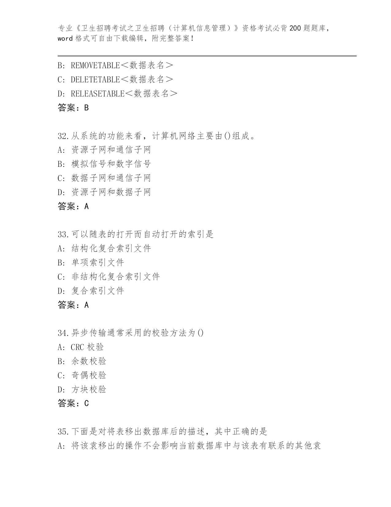 2024年浙江省泰顺县《卫生招聘考试之卫生招聘(计算机信息管理)》资格考试必背200题【名师系列】