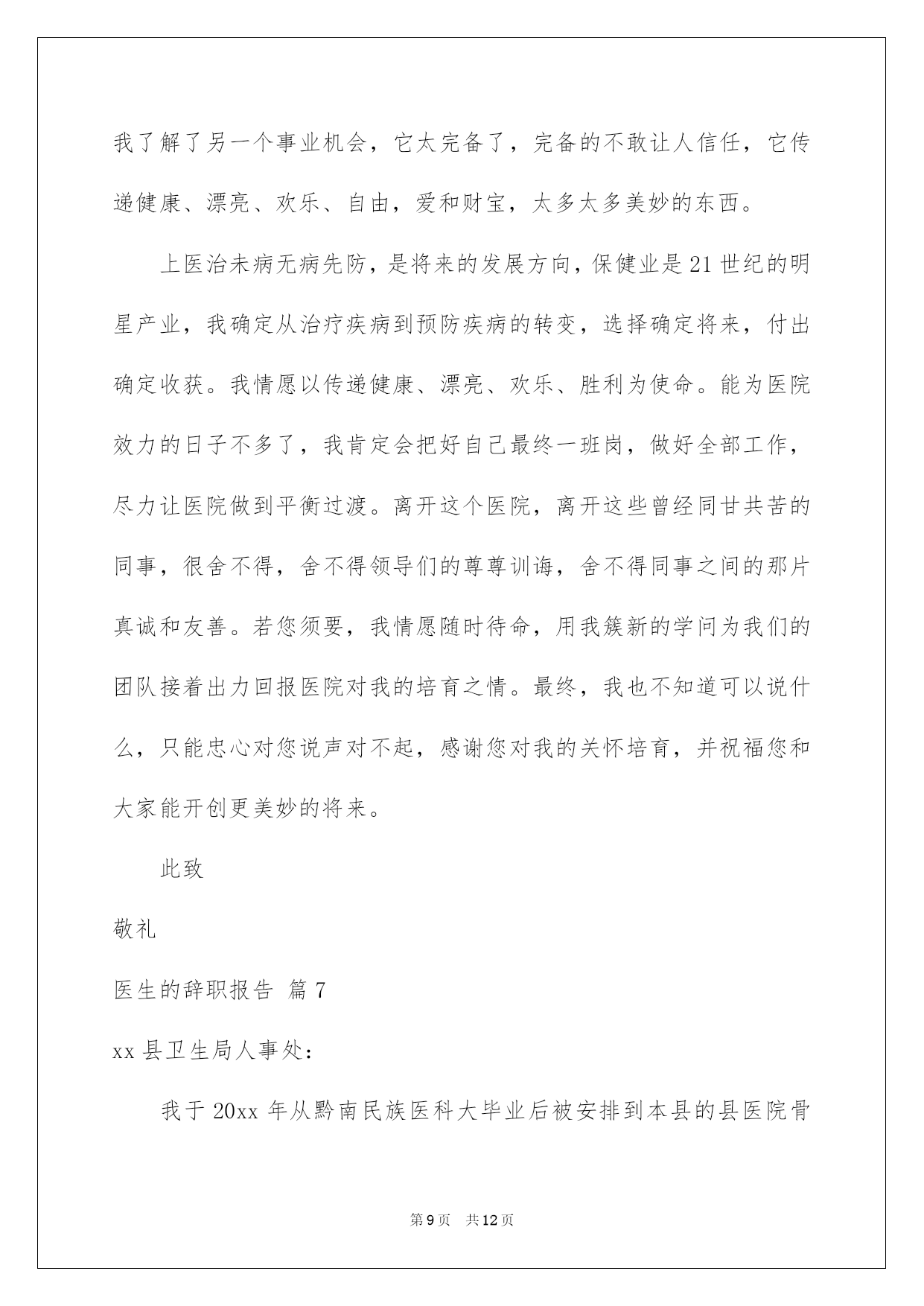 第PAGE\*Arabic\*MERGEFORMAT12页共NUMPAGES\*Arabic\*MERGEFORMAT12页第PAGE\*MERGEFORMAT12页共NUMPAGES\*MERGEFORMAT12页第PAGE\*MERGEFORMAT12页共NUMPAGES\*MERGEFORMAT12页第PAGE\*MERGEFORMAT12页共NUMPAGES\*MERGEFORMAT12页第PAGE\*MERGEFORMAT12页共NUMPAGES\*MERGEFORMAT12页第PAGE\*MERGEFORMAT12页共NUMPAGES\*MERGEFORMAT12页第PAGE\*MERGEFORMAT12页共NUMPAGES\*MERGEFORMAT12页第PAGE\*MERGEFORMAT12页共NUMPAGES\*MERGEFORMAT12页第PAGE\*MERGEFORMAT12页共NUMPAGES\*MERGEFORMAT12页第PAGE\*MERGEFORMAT12页共NUMPAGES\*MERGEFORMAT12页第PAGE\*MERGEFORMAT12页共NUMPAGES\*MERGEFORMAT12页2022医生的辞职报告医生的辞职报告模板汇总8篇随着个人素养的提升,报告的适用范围越来越广泛,写报告的时候要留意内容的完整。我们应当如何写报告呢?下面是我为大家整理的医生的辞职报告8篇,供大家参考借鉴,希望可以帮助到有须要的挚友。医生的辞职报告篇1XX县卫生局人事处:我于20xx年从黔南民族医科大毕业后被安排到本县县医院骨伤科工作。我感谢两年多来医院给我学习进步的机会,也感谢院领导对我的关切、帮助、教化以及同事们对我的工作、生活中的照看,在此我特别诚心地感谢大家!因家中父母年老多病需人照料,又因我与爱人长期两地生活等实际困难,现向领导提出辞去现职,返回家乡工作的恳求。我的家乡在XX省XX县XX乡。父亲现年75岁,因长年辛苦,腰椎难受,衣食不能自理;母亲现年70岁,除了耕田种地外,还要照料我父亲和打理整个家屋,再加上她也已是年过半百的人了,身体不太好且行动不便。我于20xx年结婚,爱人在家务农,现又怀有身孕,由于我在外地工作,家中照看两位老人和其它轻重家务劳动都由爱人一人来担负,而这个时候爱人恰好是最须要休息、关切和照看的人,在长期的操劳中,每当看到爱人累得上气接不着下气,双方父母都剧烈要求我返乡参与考试上岗。这些年以来,祖国的经济建设风风火火、蒸蒸日上,作为一名党培育出来的医务人员,应当以救死扶伤为己任,在医疗这一雄伟事业中多做贡献,但由于家庭实际困难的羁绊,不免时时分散精力。为了妥当支配生活,解决困难,全力以赴地投入经济建设之中,我特恳求领导批准我的辞职,选择就近工作。最终,我诚心祝福XX县卫生事业越办越好。申请人:XXXXXX年X月X日医生的辞职报告篇2敬重的医院领导:从20xx年初至今,进入某某医院工作两年的时间里,得到了某某医院各位同事的多方帮助,我特别感谢某某医院各位同事。在过去的两年里,我在某某医院里工作的很快乐,感觉某某医院的气氛就和一个大家庭一样,大家相处的融洽和谐,同时在某某医院里也学会了如何与同事相处,如何与客户建立良好关系等方面的东西。并在某某医院的过去两年里,利用某某医院赐予良好学习时间,学习了一些新的东西来充溢了自己,并增加自己的一些学问和实践阅历。我对于医院两年多的照看表示真心的感谢!!在经过xx年下半年的时间里,某某医院赐予了很好的机会,让自己学习做市场方面的运做,但由于自己缺乏市场等方面的阅历,自己没有能很好的为某某医院做好新的市场开发,自己身感有愧医院的两年的培育。由于我个人感觉,我在过去的一段时间里的表现不能让自己感觉满足,感觉有些愧对医院这两年的照看,自己也感觉自己在过去两年没有给某某医院做过点贡献,也由于自己感觉自己的实力还差的许多,在某某医院的各方面需求上自己实力不够。所以,经过自己慎重考虑,为了自己和医院考虑,自己现向某某医院提出辞职,望领导理解,赐予批准。此致敬礼!辞职人:xx辞职时间:xx年xx月xx日医生的辞职报告篇3敬重的院领导:我很缺憾自己在这个时候向医院正式提出辞职。来到xx医院已经整整3年了,正是在这里我起先踏上了社会,完成了自己从一个学生到社会人的转变。有过欢乐,有过收获,也有过泪水和苦痛。医院同等的人际关系和开明的工作作风,一度让我有着找到了依靠的感觉,在这里我能快乐的工作,快乐的学习。然而工作上的毫无成就感总让自己彷徨。医生是我从小的幻想,我希望我可以帮助别人解决苦痛,给别人带来更多健