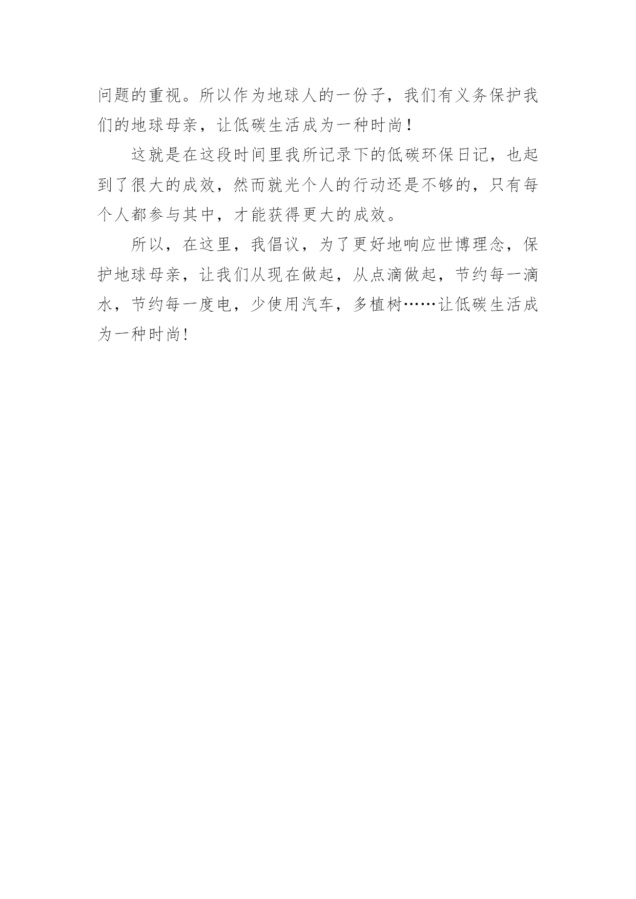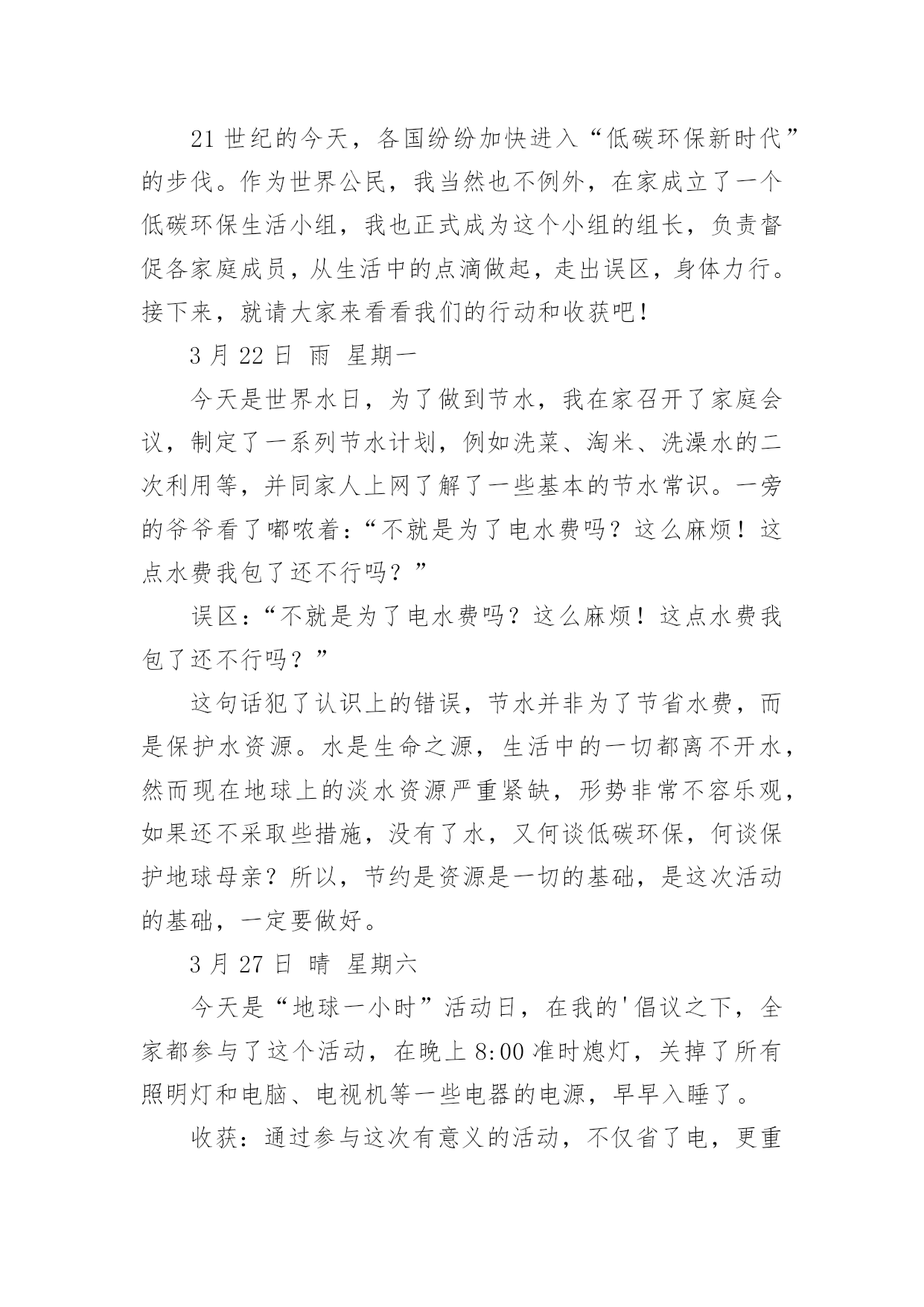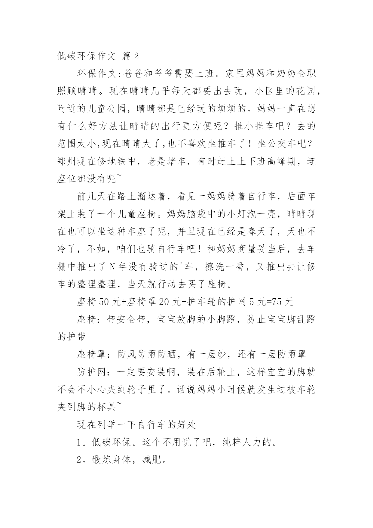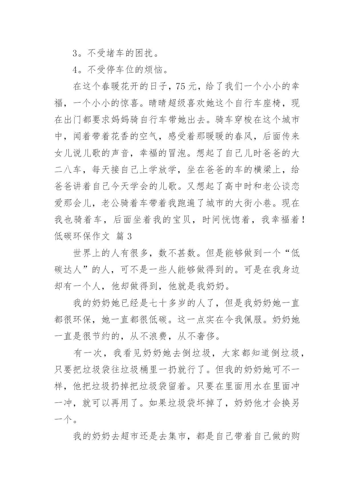 低碳环保作文低碳环保作文精选(4篇)在日复一日的学习、工作或生活中,大家都写过作文吧,写作文是培养人们的观察力、联想力、想象力、思考力和记忆力的重要手段。为了让您在写作文时更加简单方便,下面是小编为大家收集的低碳环保作文4篇,仅供参考,欢迎大家阅读。低碳环保作文篇1低碳生活,从我做起,从小事做起。夏天越来越炎热,冬天也不再那么寒冷,地球逐渐出现了温室效应。原来是我们居住的家园生病了,它被二氧化碳这个坏蛋弄得“晕头转向”。地球发烧了,温度在上升。南、北极的冰川开始融化,冰一单开始融化,一些岛屿国家和沿海城市就会随着上涨的海水被淹没;现在的人们还执迷不悟的砍伐森林,大地、草原、森林干旱地球就会出现沙漠化,出现的沙漠就会更多;许多冻僵的害虫菌类,就会重新繁殖。这下该怎么办呢?低碳生活,从我做起,从小事做起。在学校里,我们节省纸张、不踩草坪、不在墙上乱写滥画;在家里,节省每一滴水、每一度电;出门在外,尽量少开车,多坐公交,或者骑车和步行等,都是一种绿色的.生活方式。从点滴做起,从小事做起。低碳生活,可以让我们的身体更健康、让我们的环境更美好,大家携起手来,共同努力吧。低碳环保作文篇2环保作文:爸爸和爷爷需要上班。家里妈妈和奶奶全职照顾晴晴。现在晴晴几乎每天都要出去玩,小区里的花园,附近的儿童公园,晴晴都是已经玩的烦烦的。妈妈一直在想有什么好方法让晴晴的出行更方便呢?推小推车吧?去的范围太小,现在晴晴大了,也不喜欢坐推车了!坐公交车吧?郑州现在修地铁中,老是堵车,有时赶上上下班高峰期,连座位都没有呢~前几天在路上溜达着,看见一妈妈骑着自行车,后面车架上装了一个儿童座椅。妈妈脑袋中的小灯泡一亮,晴晴现在也可以坐这种车座了呢,并且现在已经是春天了,天也不冷了,不如,咱们也骑自行车吧!和奶奶商量妥当后,去车棚中推出了N年没有骑过的'车,擦洗一番,又推出去让修车的整理整理,当天就行动去买了座椅。座椅50元+座椅罩20元+护车轮的护网5元=75元座椅:带安全带,宝宝放脚的小脚蹬,防止宝宝脚乱蹬的护带座椅罩:防风防雨防晒,有一层纱,还有一层防雨罩防护网:一定要安装啊,装在后轮上,这样宝宝的脚就不会不小心夹到轮子里了。话说妈妈小时候就发生过被车轮夹到脚的杯具~现在列举一下自行车的好处1。低碳环保。这个不用说了吧,纯粹人力的。2。锻炼身体,减肥。3。不受堵车的困扰。4。不受停车位的烦恼。在这个春暖花开的日子,75元,给了我们一个小小的幸福,一个小小的惊喜。晴晴超级喜欢她这个自行车座椅,现在出门都要求妈妈骑自行车带她出去。骑车穿梭在这个城市中,闻着带着花香的空气,感受着那暖暖的春风,后面传来女儿说儿歌的声音,幸福的冒泡。想起了自己儿时爸爸的大二八车,每天接自己上学放学,坐在爸爸的车的横梁上,给爸爸讲着自己今天学会的儿歌。又想起了高中时和老公谈恋爱那会儿,老公骑着车带着我跑遍了城市的大街小巷。现在我也骑着车,后面坐着我的宝贝,时间恍惚着,我幸福着!低碳环保作文篇3世界上的人有很多,数不甚数。但是能够做到一个“低碳达人”的人,可不是一些人能够做得到的。可是在我身边却有一个人,他却做得到,他就是我奶奶。我的奶奶她已经是七十多岁的人了,但是我奶奶她一直都很环保,她一直都很低碳。这一点实在令我佩服。奶奶她一直是很节约的,从不浪费,从不奢侈。有一次,我看见奶奶她去倒垃圾,大家都知道倒垃圾,只要把垃圾袋往垃圾桶里一扔就行了。但我的奶奶她可不一样,他把垃圾扔掉把垃圾袋留着。只要在里面用水在里面冲一冲,就可以再用了。如果垃圾袋坏掉了,奶奶他才会换另一个。我的奶奶去超市还是去集市,都是自己带着自己做的购物袋去的,又一次我开见奶奶她正在做购物袋去超市。我问奶奶你为啥不买,去要自己动手去做?奶奶说,现在要环保,要低碳,而且还能够省钱。奶奶每次去的`时候都是挑打折的东西买。奶奶有一个习惯就是每天早上和一杯热呼呼的茶,而且每一次喝完之后,都会把一部份拿过去晒一晒,另一部份拿去浇在花和树的底下,成为花和树的营养,使它们茁壮成长。在社会上有很多家庭用油,但是倒油时会控制不住油的量。所以奶奶去买了一个控油瓶,烧菜时可控制油量。那天以后,我觉得奶奶烧的菜比以前好吃多了。有一次,我去上学,我要爸爸开车去送我去学校。可是被奶奶听见了,奶奶说,上学还要爸爸送,只是没出息自己走过去。我硬着头皮要爸爸送我去学校。奶奶说:“乘车多不好啊!车子的尾气排出的二氧化碳后一氧化硫会污染大自然,所以要自己走路上学,这样不仅可以保护大自然还可以锻炼自己的身体。我才明白,所以以后我天天自己上学。奶奶用起肥皂来,也是很节约的。奶奶把许多的小肥皂放进一个丝袜里,打个结,然后挂在水龙头上,如果要洗手时在上面搓一搓。这样一来就可以节约很多肥皂。让我们一起向低碳达人学习吧!一起环保,一起保护地球。地球上的资源是有限的,无