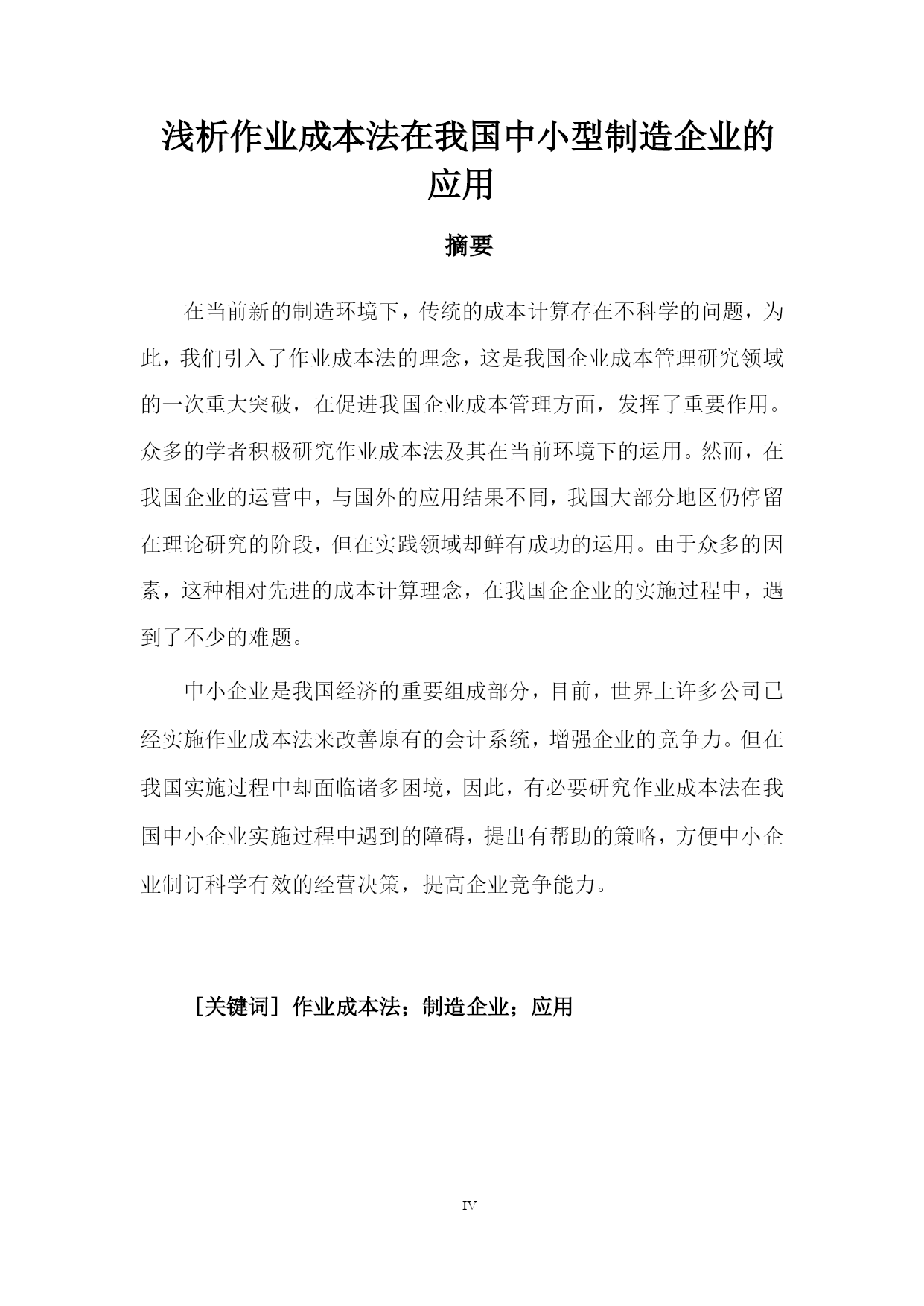 浅析作业成本法在我国中小型制造企业的应用.docx