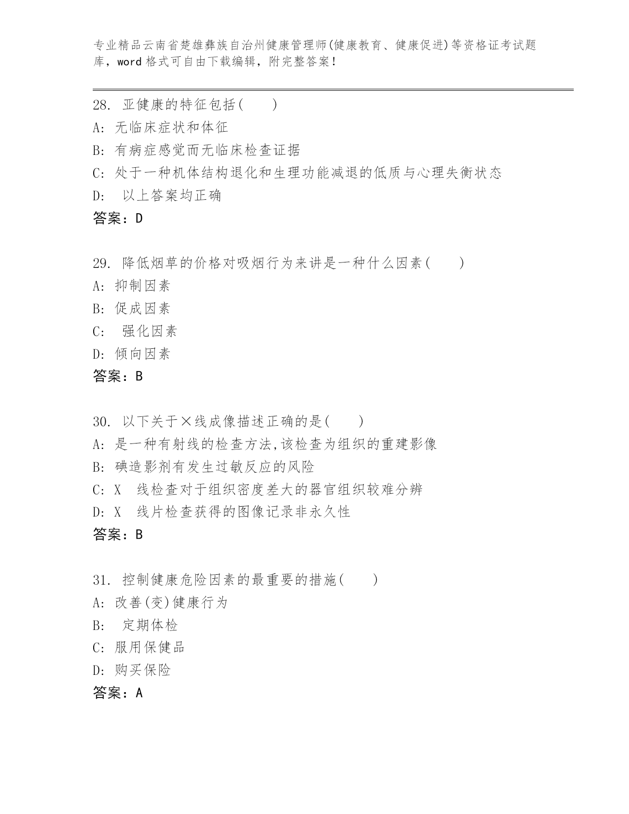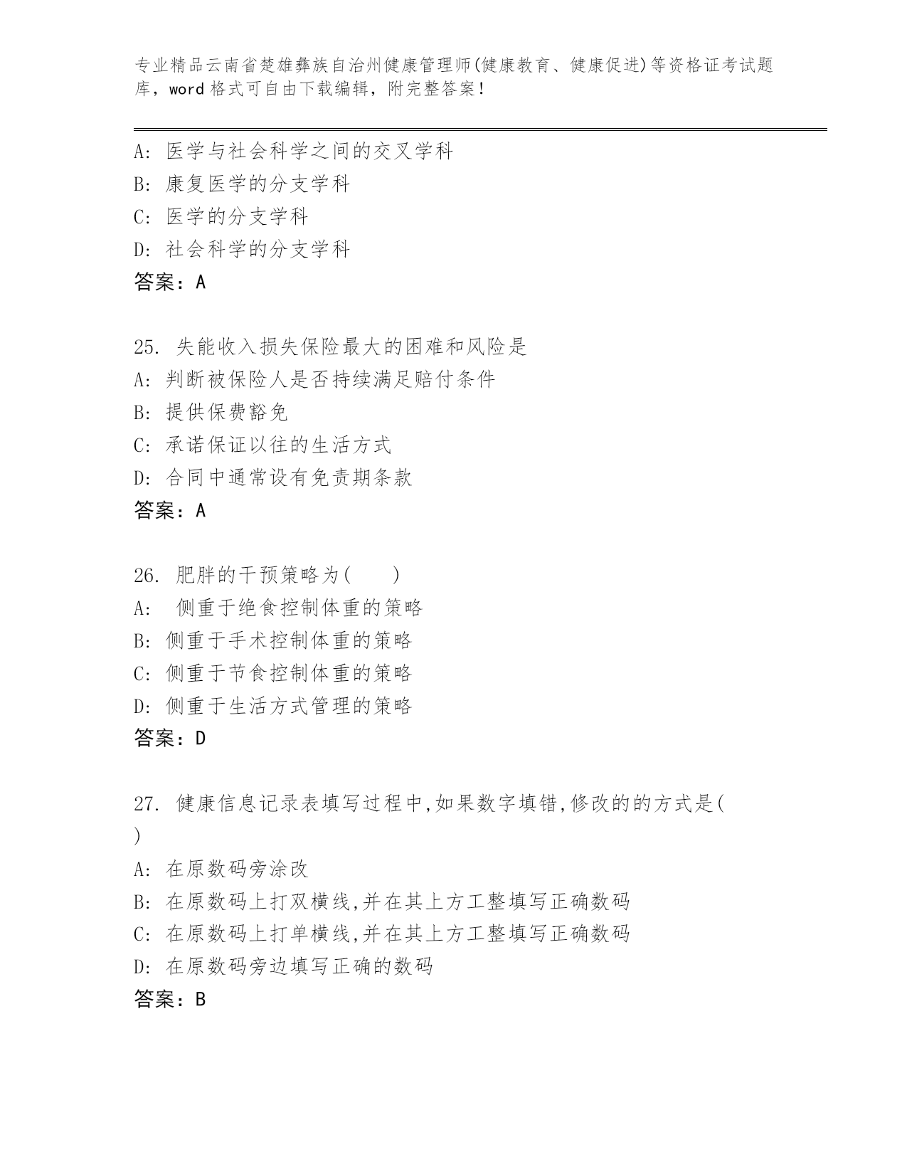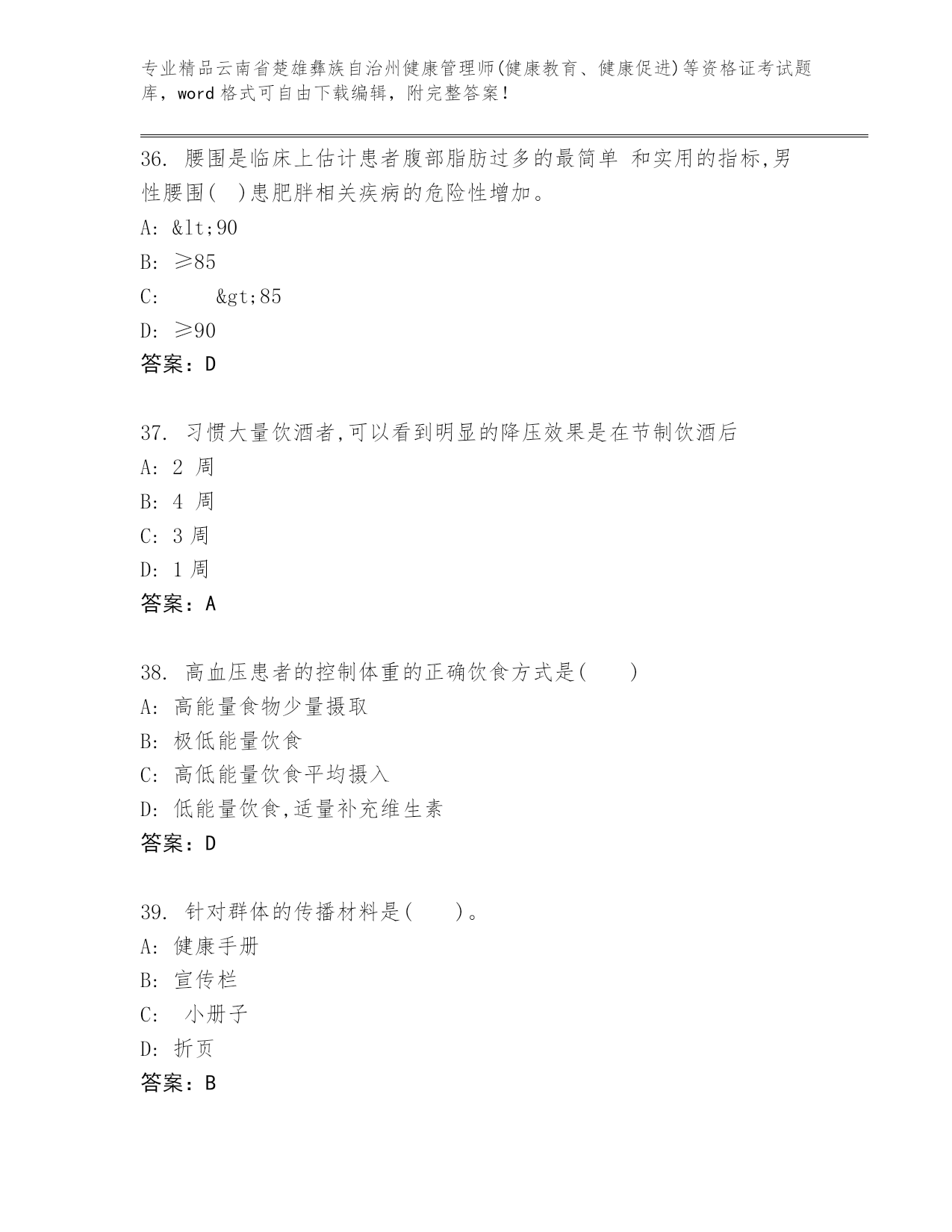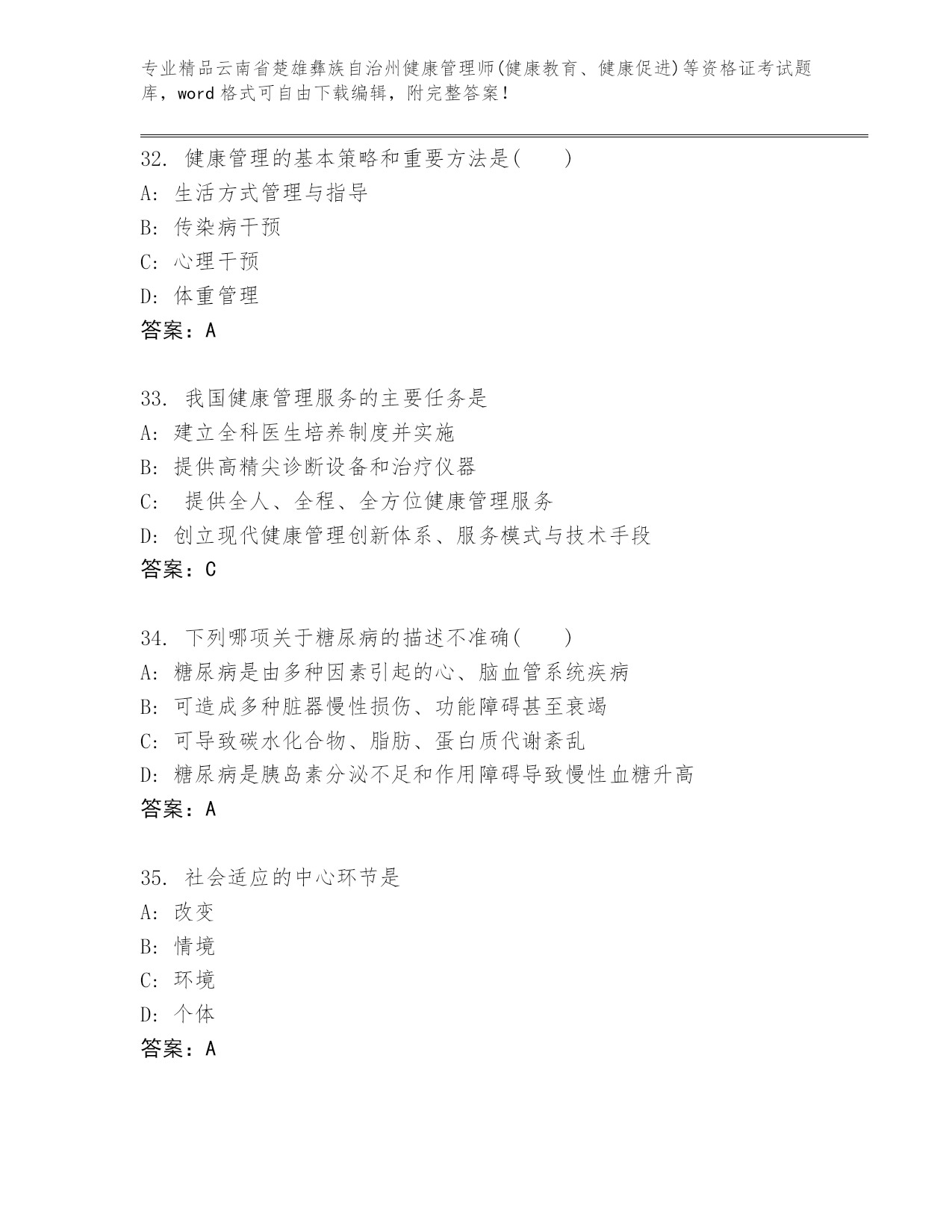 云南省楚雄彝族自治州健康管理师(健康教育、健康促进)等资格证考试大全答案下载.docx