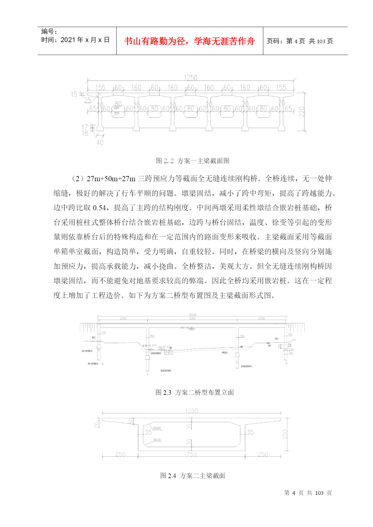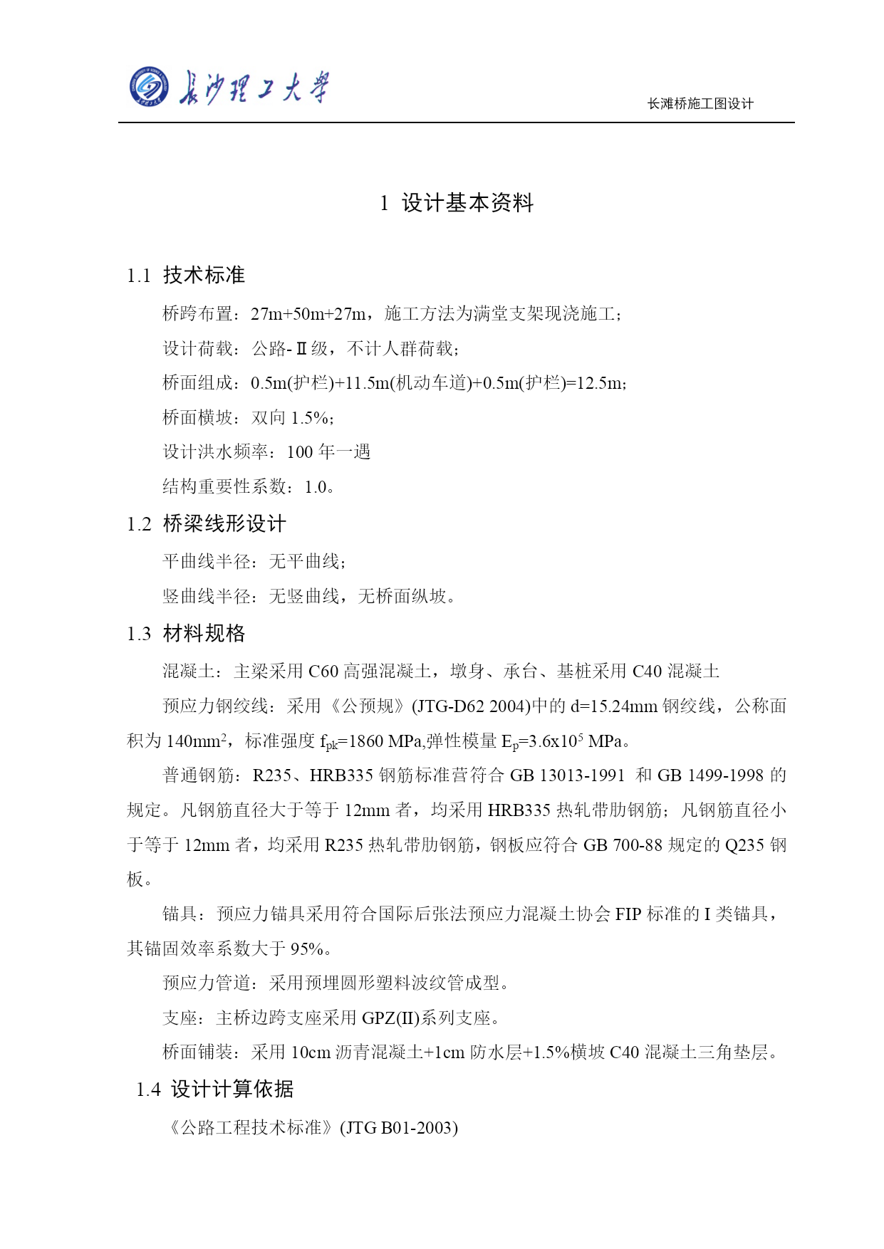 长滩桥施工图设计长滩桥施工图设计目录TOC\o"1-4"\h\uHYPERLINK\l_Toc327651设计基本资料PAGEREF_Toc3276511.1技术标准HYPERLINK\l_Toc16111PAGEREF_Toc1611111.2桥梁线形布置HYPERLINK\l_Toc20316PAGEREF_Toc203161HYPERLINK\l_Toc146481.3材料规格PAGEREF_Toc146481HYPERLINK\l_Toc249371.4设计计算依据PAGEREF_Toc249371HYPERLINK\l_Toc209861.5通航水位PAGEREF_Toc209862HYPERLINK\l_Toc137071.6支座强迫位移及温度影响PAGEREF_Toc137072HYPERLINK\l_Toc227841.7基本计算数据PAGEREF_Toc227842HYPERLINK\l_Toc313212方案设计与比选PAGEREF_Toc313213HYPERLINK\l_Toc206272.1工程概况PAGEREF_Toc206273HYPERLINK\l_Toc181162.2方案设计PAGEREF_Toc181164HYPERLINK\l_Toc170312.3方案比较PAGEREF_Toc170316HYPERLINK\l_Toc36653截面尺寸拟定PAGEREF_Toc36657HYPERLINK\l_Toc46363.1设计特点及受力特点PAGEREF_Toc46367HYPERLINK\l_Toc88733.1.1设计特点PAGEREF_Toc88737HYPERLINK\l_Toc171293.1.2受力特点PAGEREF_Toc171297HYPERLINK\l_Toc152043.2结构尺寸拟定PAGEREF_Toc152047HYPERLINK\l_Toc65143.2.1主梁箱梁构造PAGEREF_Toc65147HYPERLINK\l_Toc284743.2.2主梁截面尺寸拟定PAGEREF_Toc284747HYPERLINK\l_Toc27453.3毛截面几何特性计算PAGEREF_Toc27459HYPERLINK\l_Toc234654主梁作用效应计算PAGEREF_Toc2346511HYPERLINK\l_Toc206694.1结构自重作用效应计算PAGEREF_Toc2066911HYPERLINK\l_Toc8404.1.1结构单元划分PAGEREF_Toc84011HYPERLINK\l_Toc66644.1.2施工阶段的模拟PAGEREF_Toc666411HYPERLINK\l_Toc244704.2汽车荷载作用效应计算PAGEREF_Toc2447014HYPERLINK\l_Toc293604.2.1汽车冲击系数和箱梁横向分布系数PAGEREF_Toc2936014HYPERLINK\l_Toc190764.2.2温度应力及基础沉降内力计算PAGEREF_Toc1907619HYPERLINK\l_Toc67354.3内力组合PAGEREF_Toc673526HYPERLINK\l_Toc176744.3.1按承载能力极限状态设计PAGEREF_Toc1767426HYPERLINK\l_Toc222014.3.2按正常使用极限状态设计PAGEREF_Toc2220127HYPERLINK\l_Toc29374.3.3计算结果PAGEREF_Toc293728HYPERLINK\l_Toc44825预应力钢束估算及布置PAGEREF_Toc448236HYPERLINK\l_Toc116405.1计算原理PAGEREF_Toc1164036HYPERLINK\l_Toc160175.3预应力筋布置原则PAGEREF_Toc1601740HYPERLINK\l_Toc201705.4调束以及预应力钢束布置情况PAGEREF_Toc2017041HYPERLINK\l_Toc15430