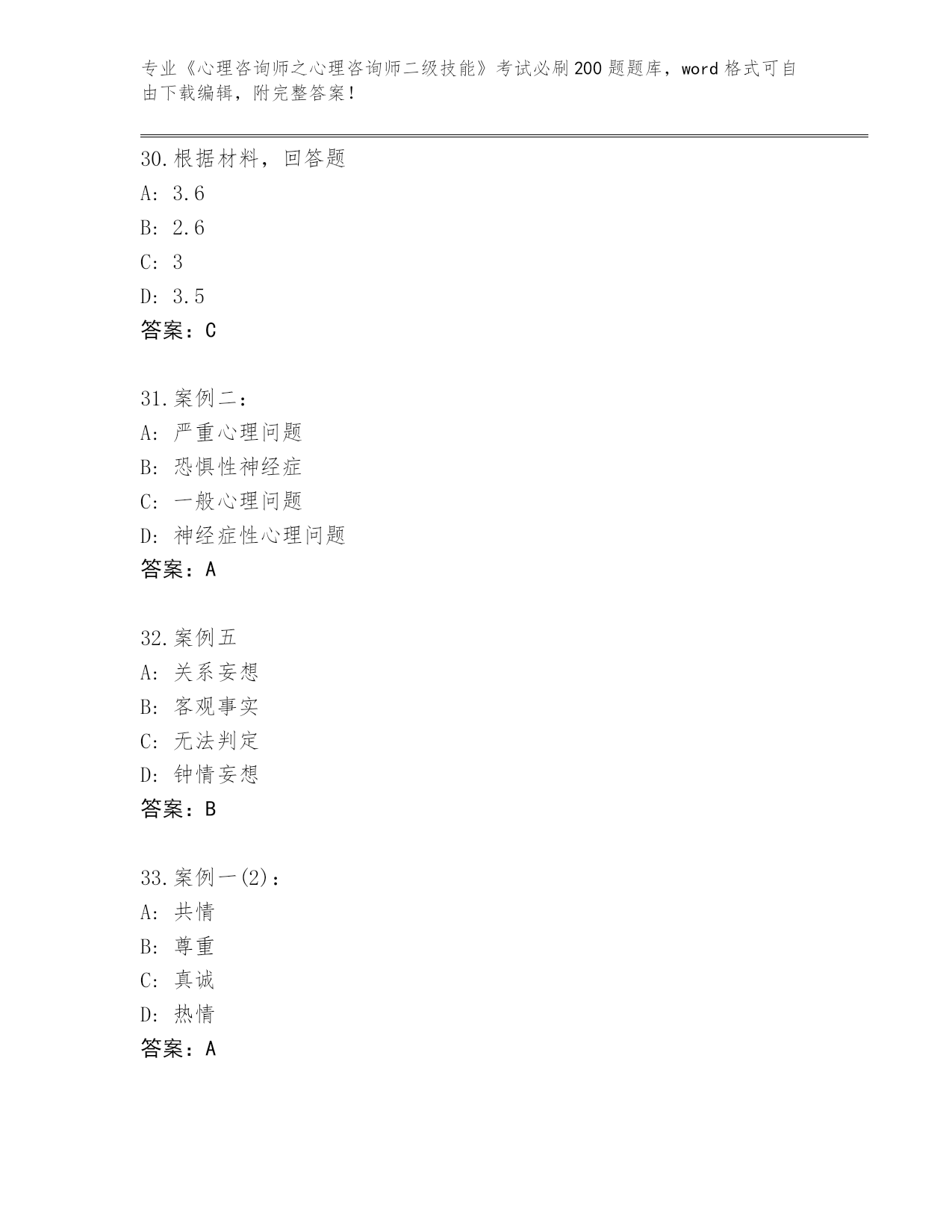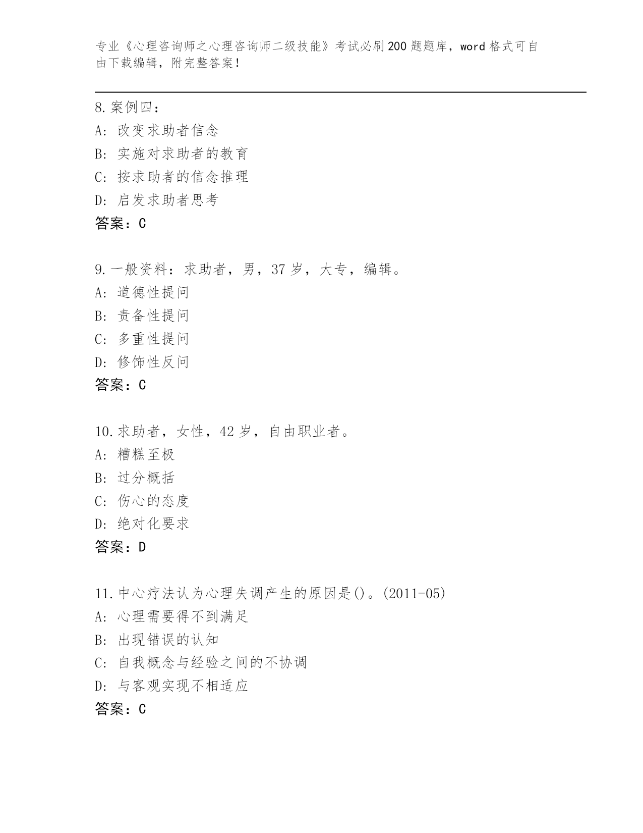内部使用山西省《心理咨询师之心理咨询师二级技能》考试必刷200题(含答案)