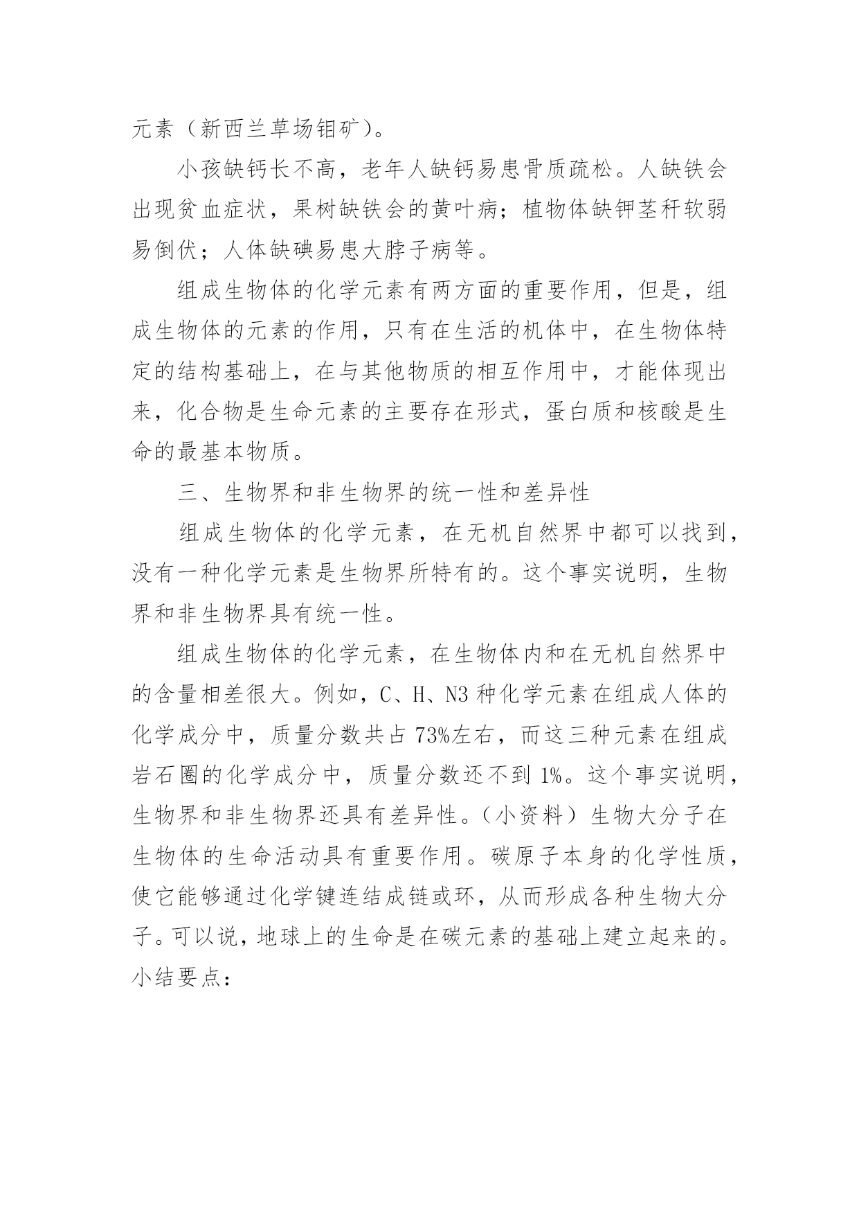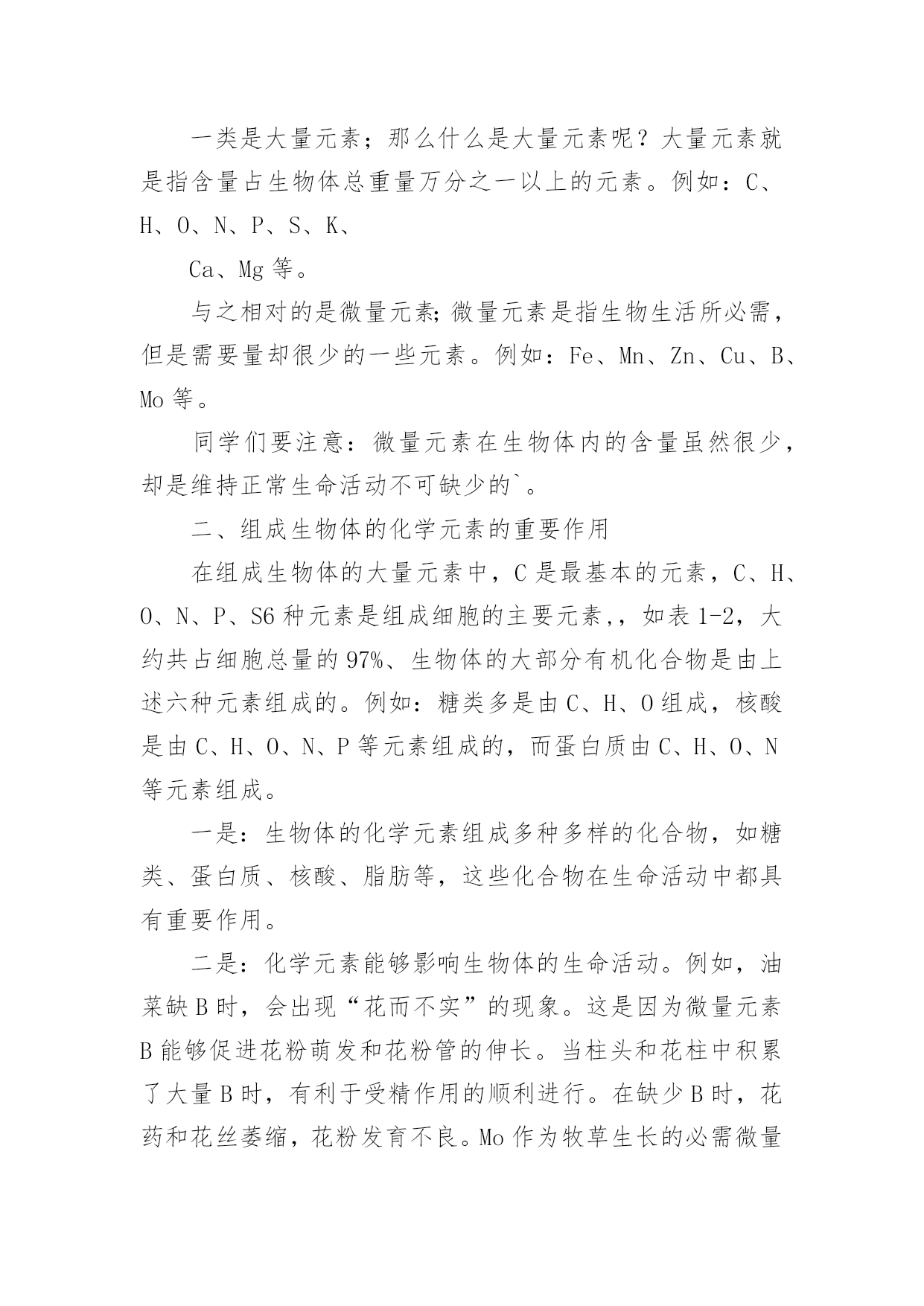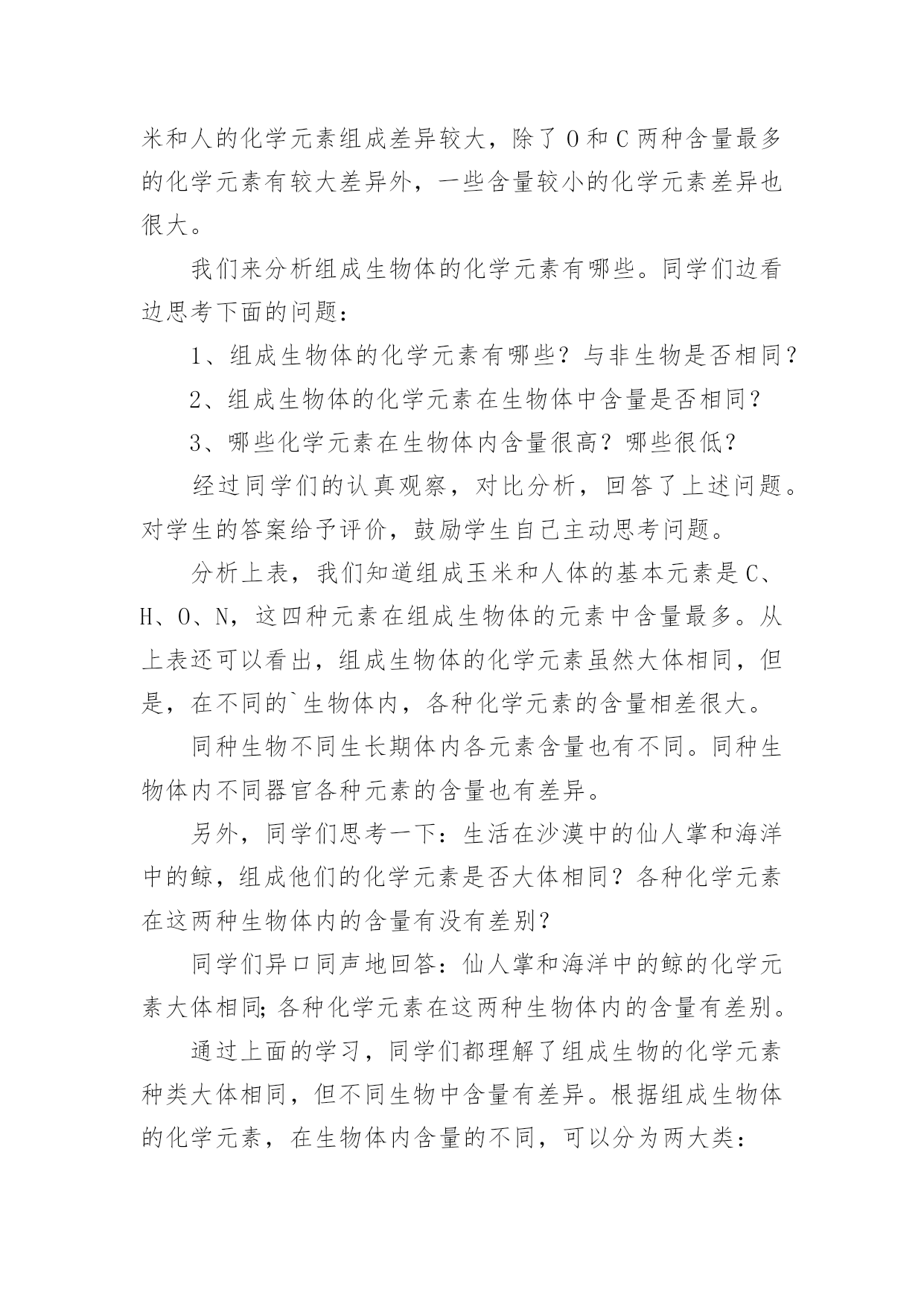 生物教学设计生物教学设计范文作为一名专为他人授业解惑的人民教师,编写教学设计是必不可少的,借助教学设计可以更好地组织教学活动。我们该怎么去写教学设计呢?下面是小编收集整理的生物教学设计范文,欢迎阅读与收藏。生物教学设计1降低化学反应活化能的酶——酶的作用一、版本:人教版高中生物必修1二、设计内容:第5章细胞的能量供应和利用第1节降低化学反应活化能的酶(第1课时——酶的作用)三、设计理念在实施新课程中,需要构建与新课程理念相适应的教学策略。根据新课程理念,高中生物重在培养学生的科学思维、科学方法、科学精神等生物科学素养。使学生由以前的“学会”到“想学”再到“会学”,“引导──探究”发现式教学法就是在这种理念下应运而生的,该教学法以问题解决为中心的学习方式。本节课以“引导──探究”科学发现的过程来学习科学研究的方法为设计理念。符合《基础教育课程改革纲要(试行)》的要求:“改变课程实施过于强调接受学习、死记硬背、机械训练的现状,倡导学生主动参与、合作学习、乐于探究、勤于动手,培养学生搜集和处理信息的能力、获取新知识的`能力、分析和解决问题的能力以及交流与合作的能力”。该理念的运用有利于学生科学素养、协作精神的培养,有利于培养学生的创新精神和实践能力,有利于学生主动建构知识、发展能力、形成正确的情感态度与价值观。它不仅重视知识的获取,而且更加重视学生获取知识的过程及方法,更加突出地培养学生的学习能力。在问题的推动下、在教师的引导下,学生学得主动,学得积极,真正体现了“教为主导,学为主体”的思想。四、教材分析1、地位和作用“降低化学反应活化能的酶”第1课时——酶的作用,主要探讨酶在细胞代谢中的作用。该内容以第4章第3节物质的跨膜运输方式中的主动运输需要消耗能量以及初中生物学“消化”为基础。学习本节利于“细胞代谢的学习”,利于选修模块中有关酶的应用、微生物发酵、蛋白质提取和分离等知识的学习。2、教学目标(1)知识目标:说明酶在代谢中的作用(Ⅰ)。(2)技能目标:进行有关的实验和探索,按所设计的实验方案和步骤,正确完成相关的实验操作。学会控制自变量,观察和检测因变量的变化,以及设置对照组和重复实验(Ⅱ)。(3)情感目标:①评价自己的实验结果,②参与交流,听取别人的正确意见,维护或修改自己的方案和意见。3、过程与方法通过“比较过氧化氢在不同条件下的分解”实验,感悟酶作为催化剂特点,及控制变量的方法。利用教材上形象、直观的图解和文字说明,让学生明确催化剂可降低化学反应的活化能。4、确定教学重、难点及解决方法教学重点:酶的作用。[解决方法]利用学生对无机催化剂的知识基础切入,引入酶的学习。通过实验、资料分析得出酶的作用。自然界中的生命现象都与酶的活动有关,活细胞内全部的生物化学反应都是在酶的催化下完成的。在人体内,大约每分钟要发生几百万次的化学反应,这么多的化学反应之所以能在常温、常压下进行,完全是因为酶的作用,酶是一种什么样的物质?在化学反应中是怎样起作用的?显然应是本节课内容的重点。教学难点:①酶降低化学反应活化能的原理。②控制变量的科学方法。[解决方法]①利用教材上形象,直观的图解和文字说明,让学生明确催化剂可降低化学反应的活化能。②通过比较过氧化氢在不同条件下的分解实验,感悟酶作为催化剂特点,及控制变量的方法。活化能这个名词在高中生物教材体系中是第一次出现,无论是学生还是教师对这个名词都很陌生。化学反应之所以能进行,就是达到反应所需的活化能。在酶的作用下,原来不能进行反应的物质发生了反应,是增加了反应物的自由能,还是降低了反应所需的活化能?通过实验和类比,必需要让学生理解。在过去几年的高考中,虽然出现了实验生物教学设计2授课内容:组成生物体的化学元素一、知识目标:1)了解构成细胞和生物体的化学元素组成;2)掌握构成细胞的主要元素;3)理解和掌握主要化学元素的作用;4)通过生物体组成元素与非生物的对比,理解生物界与非生物界的统一性与差异性。二、情感目标:通过学习组成生物体的化学元素,认识生物界与非生物界的统一性和差异性;使学生初步学会抓住知识中的主要矛盾和矛盾的主要方面的学习方法;培养学生用抓住事物之间的内在联系的观点分析事物,认识世界的思维方法。三、技能目标:通过对组成生物体的化学元素相关知识的学习和分析,培养学生理解思考和分析问题的能力,初步培养学生跨学科分析问题的能力。教学重点、难点:1、组成生物体的化学元素及这些化学元素的重要作用;2、2、组成生物体最基本的元素是碳;3、生物界和非生物界的统一性和差异性。核心概念:大量元素,微量元素地球上的生物,现在已知的大约200万种。不同种类的生物体,在个体大小、形态结构和生理功能等方面都不相同。但是,组成生物体的化学元素和化合物是大体相同的,也就是说,生物体的生命活动都有共同的物质基础。物
