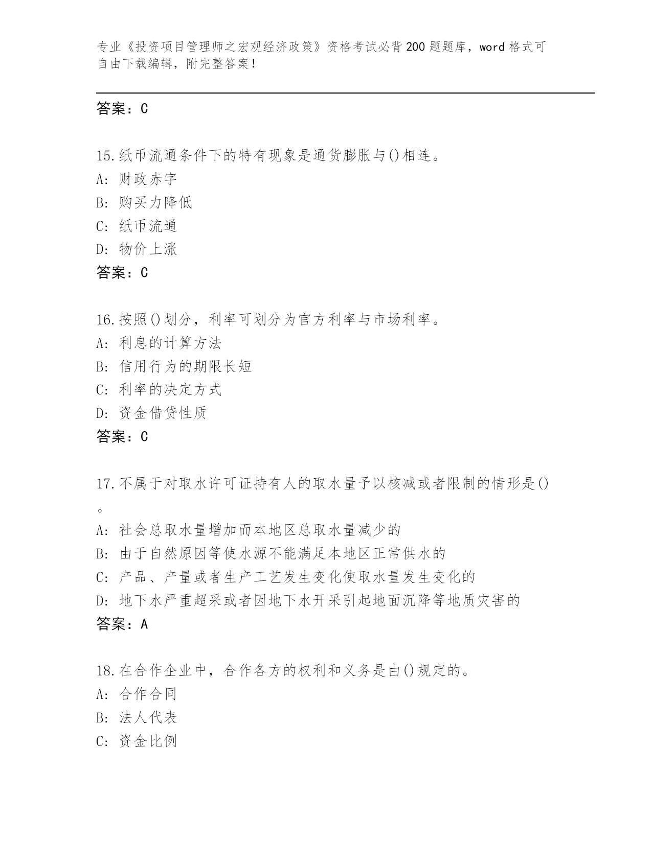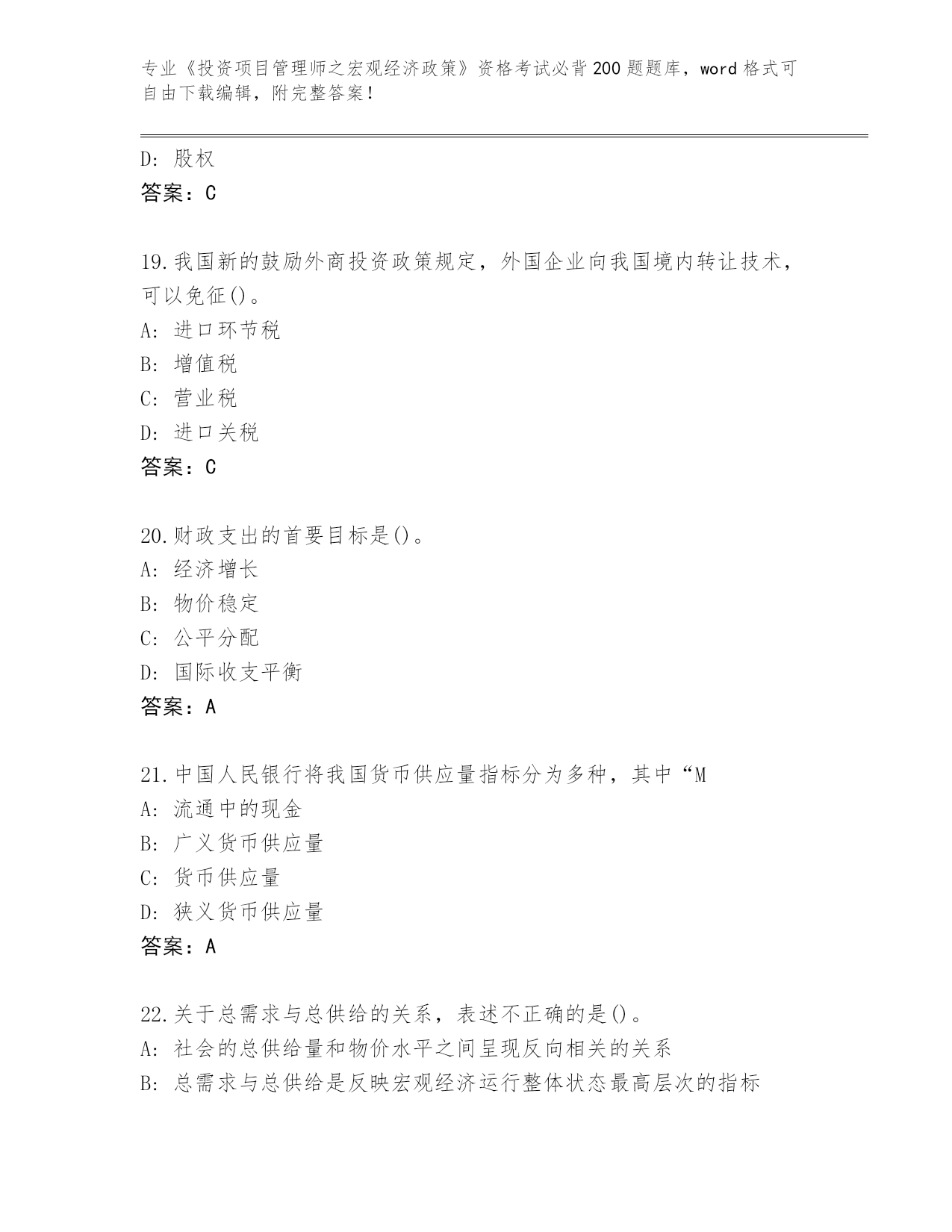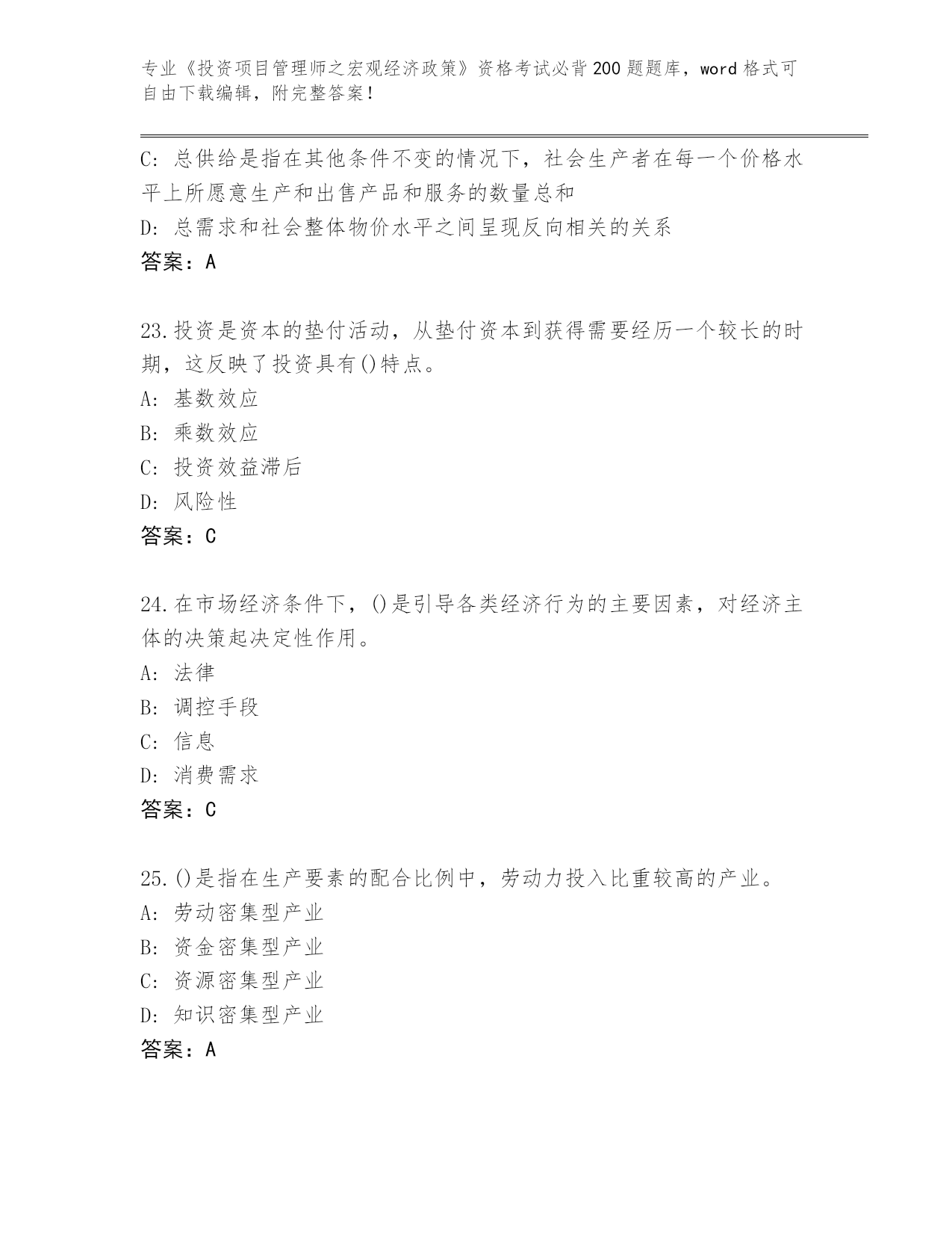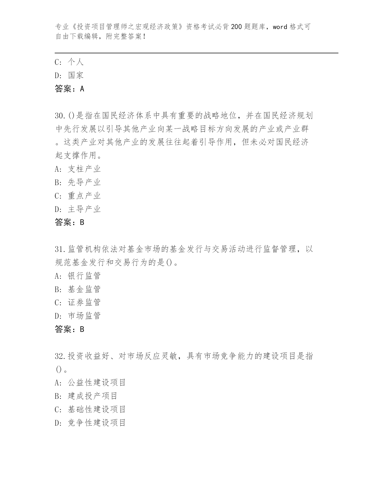 2024甘肃省玛曲县《投资项目管理师之宏观经济政策》资格考试必背200题完整题库答案下载