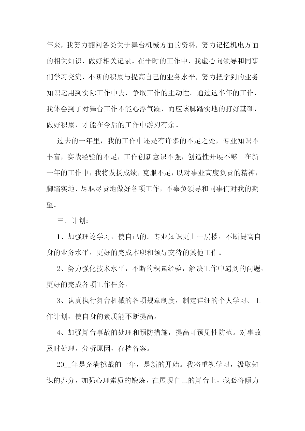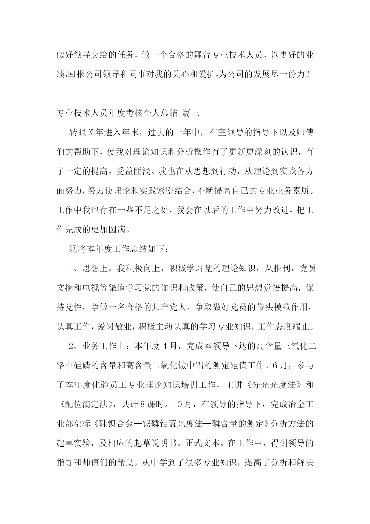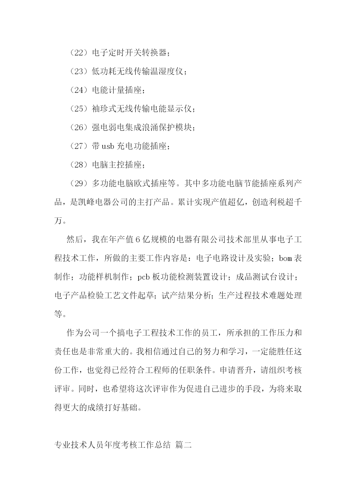 专业技术人员履职考核总结优秀9篇专业技术人员年度考核工作总结篇一本人__年x月毕业函授学院,主修逻辑数字电路、微机原理、汇编语言程序设计、微机控制技术、电脑操作系统等课程。并且在业余时间学完了电路原理、模拟电子技术、数字电子技术、单片机应用技术、电子画图软件protel99se等课程,使个人的专业技术能力得到了充实和提高。20__年x月__日被__市人事局评为助理工程师。任职前后我在电器有限公司技术部和电子电器厂技术部从事电子工程技术工作,回顾过去近20年的技术工作,成绩是可喜的。但也存在着很多有待提高的问题,现将我任现职以来的专业技术工作总结如下:一、政治思想品德本人参加工作以来,严格地遵守国家的各项法律和法规,从未参与各种违法违纪的活动。工作中努力开拓、积极进取,注重以理论联系实际,发现问题并及时分析问题,也能严谨地解决好问题,以此提高自身的工作能力和业务水平。努力研究专业知识,学习新技术,拓宽视野,不断提高业务素养。自觉履行职务,遵守职责,积极承担工作任务。工作认真细致,爱岗敬业,诚实守信,保守公司秘密,对于单位制订的各项规章制度,我都严格遵守。宽以待人,有良好的团队合作意识。二、专业技术水平1、任职以来我曾获得1个实用专利和1个__市科技进步奖。2、任职以来我在电器有限公司技术部里从事电子工程技术工作,设计完成的主要项目如下:(1)带错接、短路报警功能的接触顺序测试仪;(2)带断路和短路报警功能的网络、电话线路测试仪;(3)多功能系列插座成品测试台;(4)带浪涌保护功能的电源插座系列;(5)烟雾报警器;(6)电脑专用插座;(7)带电源滤波器的多功能电脑节能插座;(8)带功率显示、过载保护的电脑节能插座;(9)可拆式漏电保护插头;(10)遥控电视机节能插座;(11)三路轻触式电子控制开关插座;(12)脚踏电子控制开关插座;(13)浪涌保护失效报警插座;(14)接地故障报警插座;(15)冰箱多功能保护器;(16)空调节能转换器;(17)充电器节能控制插座;(18)usb集线器;(19)红外线遥控插座;(20)无线电遥控转换器;(21)人体感应电子开关;(22)电子定时开关转换器;(23)低功耗无线传输温湿度仪;(24)电能计量插座;(25)袖珍式无线传输电能显示仪;(26)强电弱电集成浪涌保护模块;(27)带usb充电功能插座;(28)电脑主控插座;(29)多功能电脑欧式插座等。其中多功能电脑节能插座系列产品,是凯峰电器公司的主打产品。累计实现产值超亿,创造利税超千万。然后,我在年产值6亿规模的电器有限公司技术部里从事电子工程技术工作,所做的主要工作内容是:电子电路设计及实验;bom表制作;功能样机制作;pcb板功能检测装置设计;成品测试台设计;电子产品检验工艺文件起草;试产结果分析;生产过程技术难题处理等。作为公司一个搞电子工程技术工作的员工,所承担的工作压力和责任也是非常重大的。我相信通过自己的努力和学习,一定能胜任这份工作,也觉得已经符合工程师的任职条件。申请晋升,请组织考核评审。同时,也希望将这次评审作为促进自己进步的手段,为将来取得更大的成绩打好基础。专业技术人员年度考核工作总结篇二20__年是忙碌而又充实的一年作为__公司演艺分公司的一员,我在公司领导以及同事的关心指导下,较好的完成了自己的本职工作,完成了从一个刚毕业的大学生到舞台机械专业技术人员的蜕变,也为我今后的发展点亮了一盏航灯,感谢公司领导和各位同事。现将一年的工作总结如下:一、理论学习方面20__年8月8日进入公司时,正处于舞台安装调试阶段,让我清晰的看到自身工作的不足之处。我跟着总装的工程师们观摩、请教、实际动手操作,短时间内我对舞台机械有了一个彻底的了解。舞美装台和排练时,让我的理论与实践有了充分的融合。10月1日首演之后,公司请专家对我们进行了舞台机械专业知识的培训,使我对舞台机械有了更深的认知。虽然如此,我深深地知道自己与领导的要求还存在着差距,所以我把学习作为武装和提高自己的首要任务,把参加集体组织的学习和个人自学结合起来,一方面积极参加集中组织的学习活动,另一方面根据自身发展要求和工作需要,本着缺什么补什么的原则,搞好个人自学,不断吸纳新知识,掌握新技能,增强新本领。二、业务学习方面刻苦钻研,不断积累。在公司张经理、郑经理的悉心指导,同事们的帮忙下,让我的各方面业务水平有了显著提升。20__年是不断进步的一年,出于对本职工作的热爱以及自身的正确定位,我在业务方面投入了极大的热情,对于舞台机械方面工作来不得半点含糊。由于自己的学识、能力、和经验与所在的岗位的要求还有一定距离。这半年来,我努力翻阅各类关于舞台机械方面的资料,努力记忆机电方面的相关知识,做