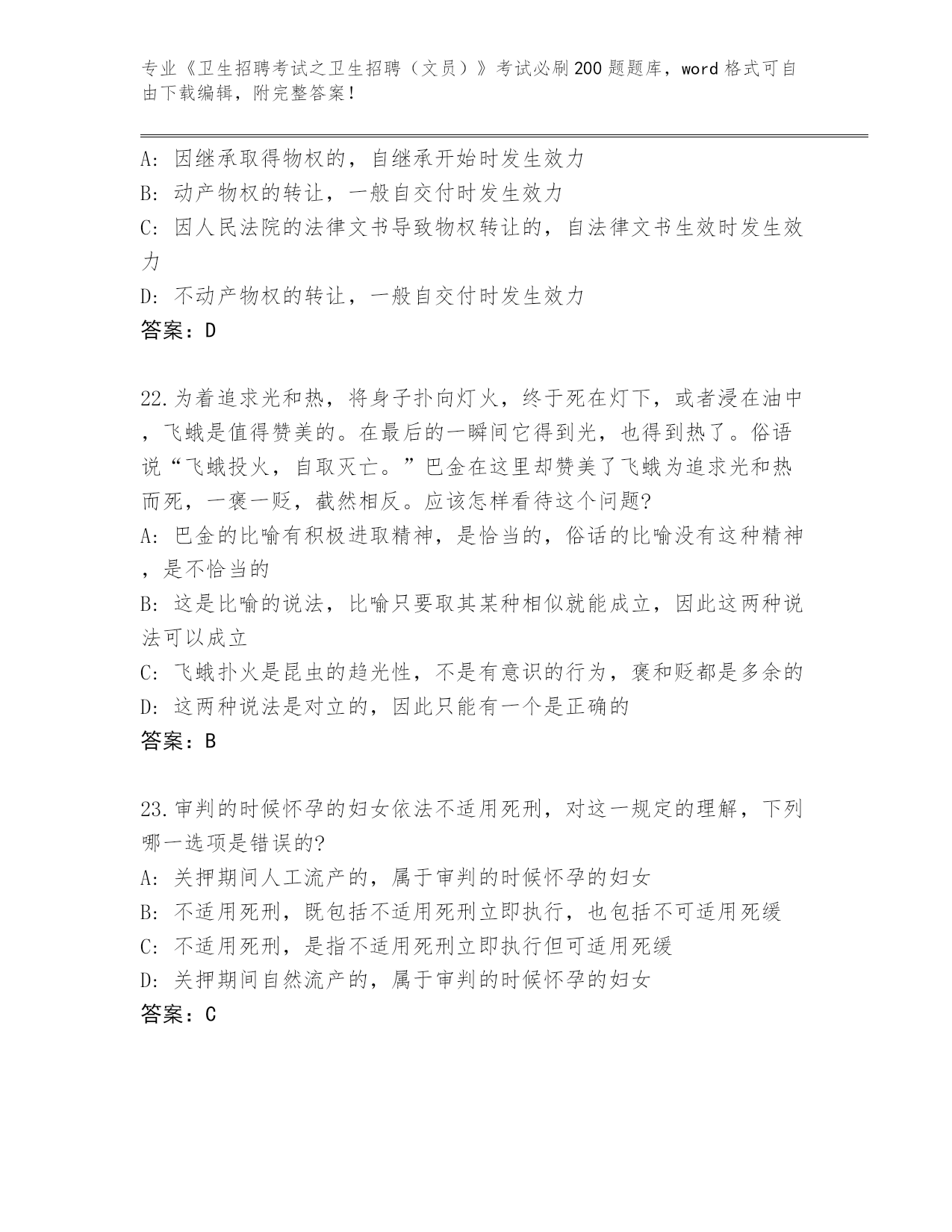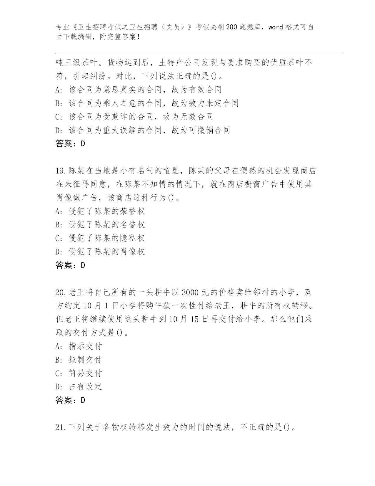 内部使用江苏省盱眙县《卫生招聘考试之卫生招聘(文员)》资格考试必刷200题通关秘籍题库含答案(典型题)