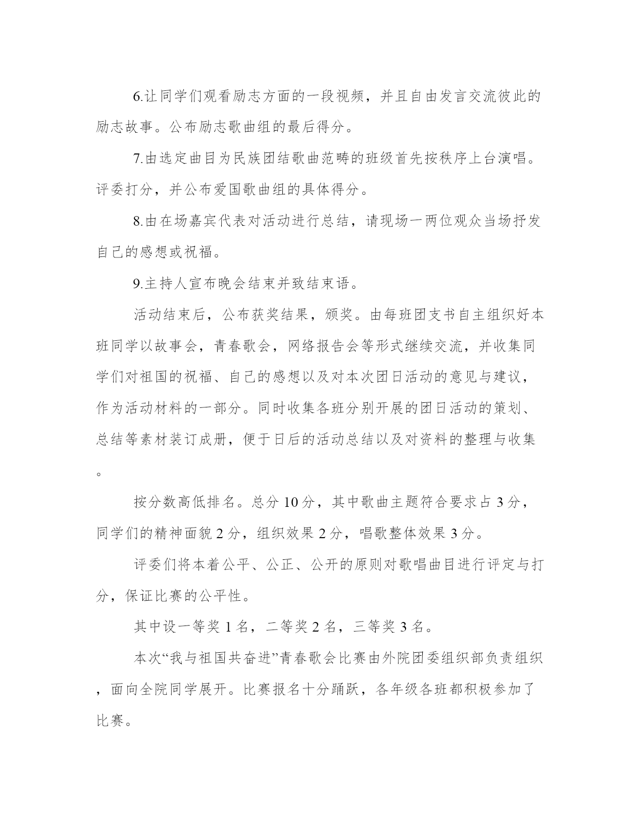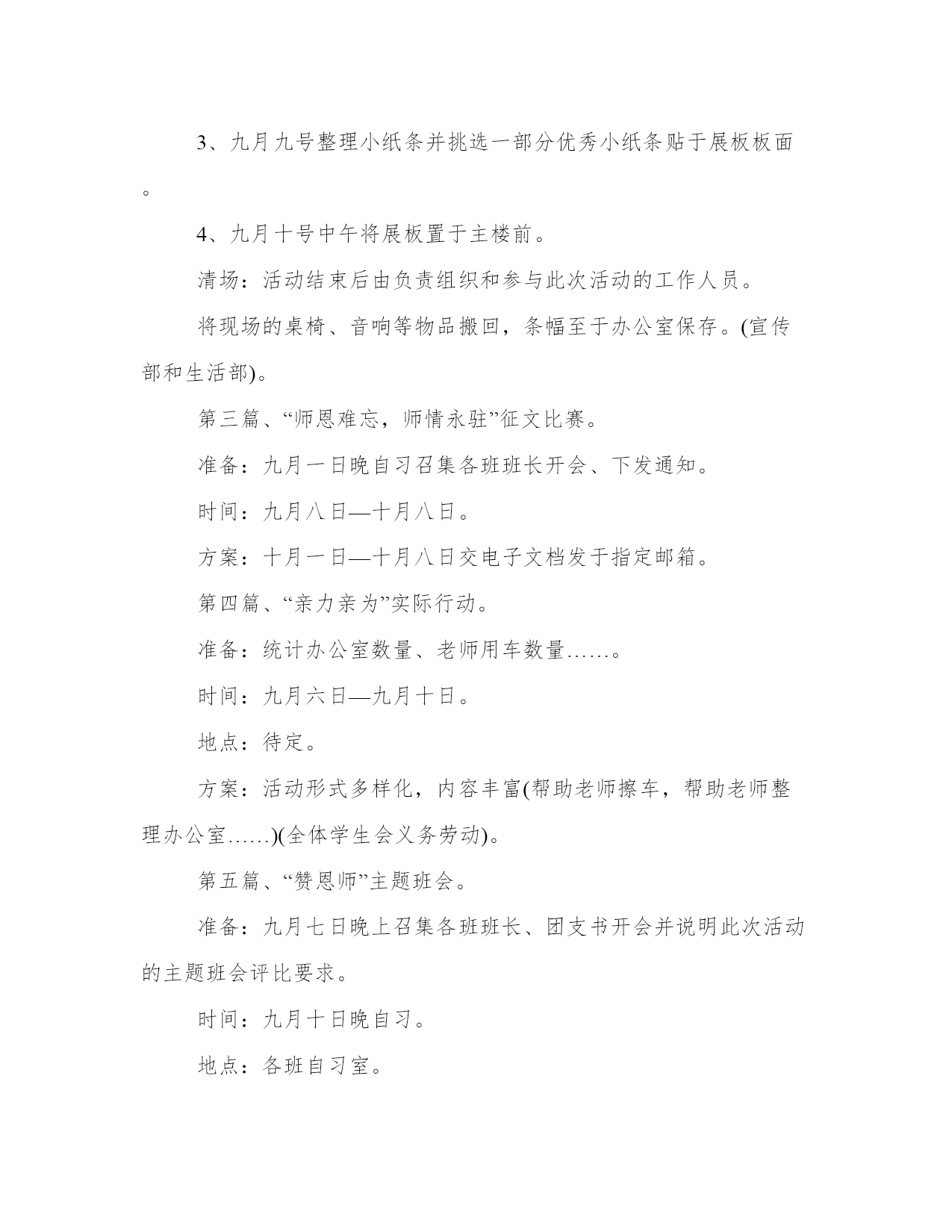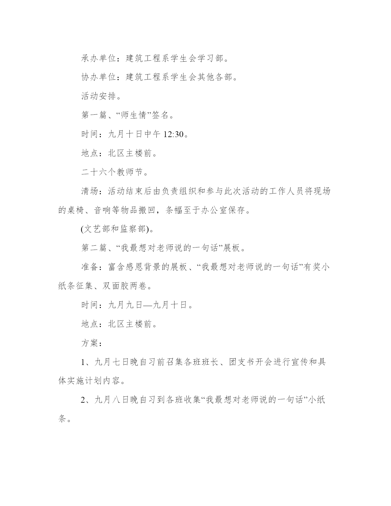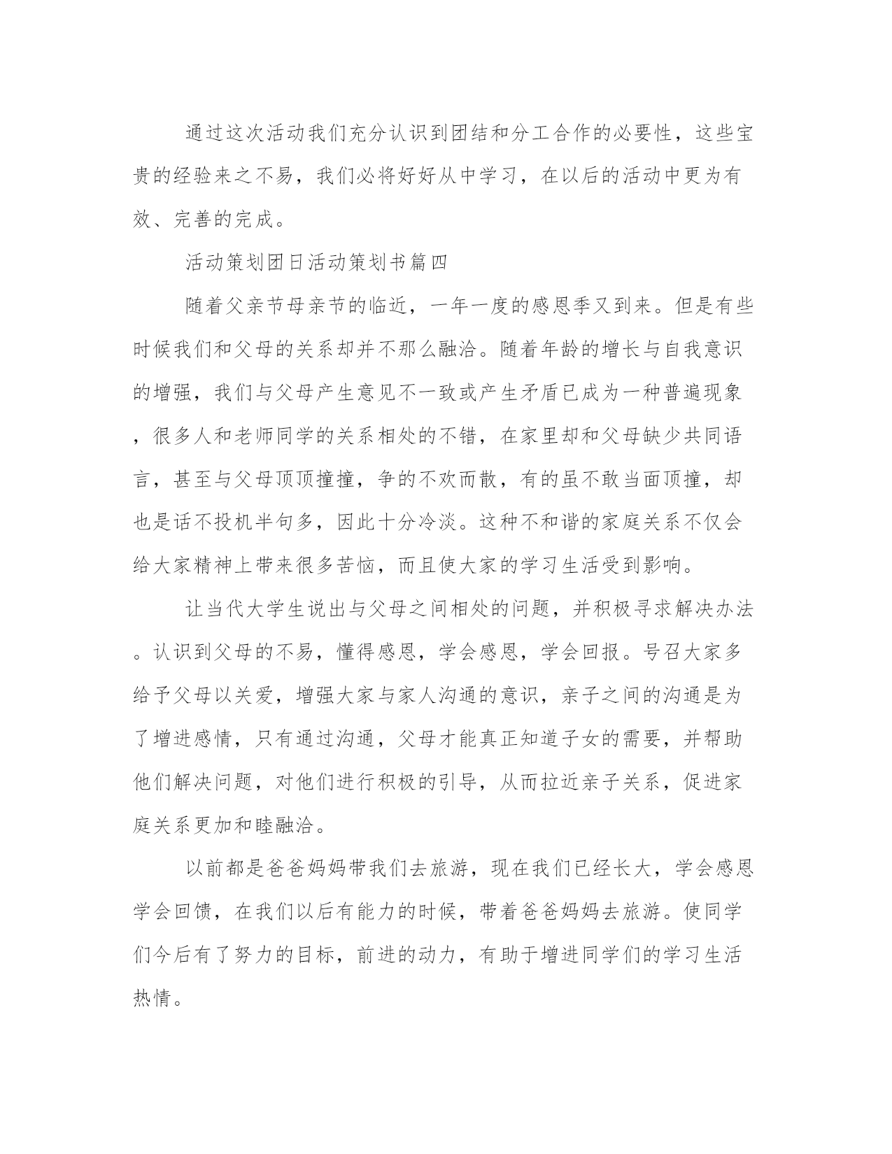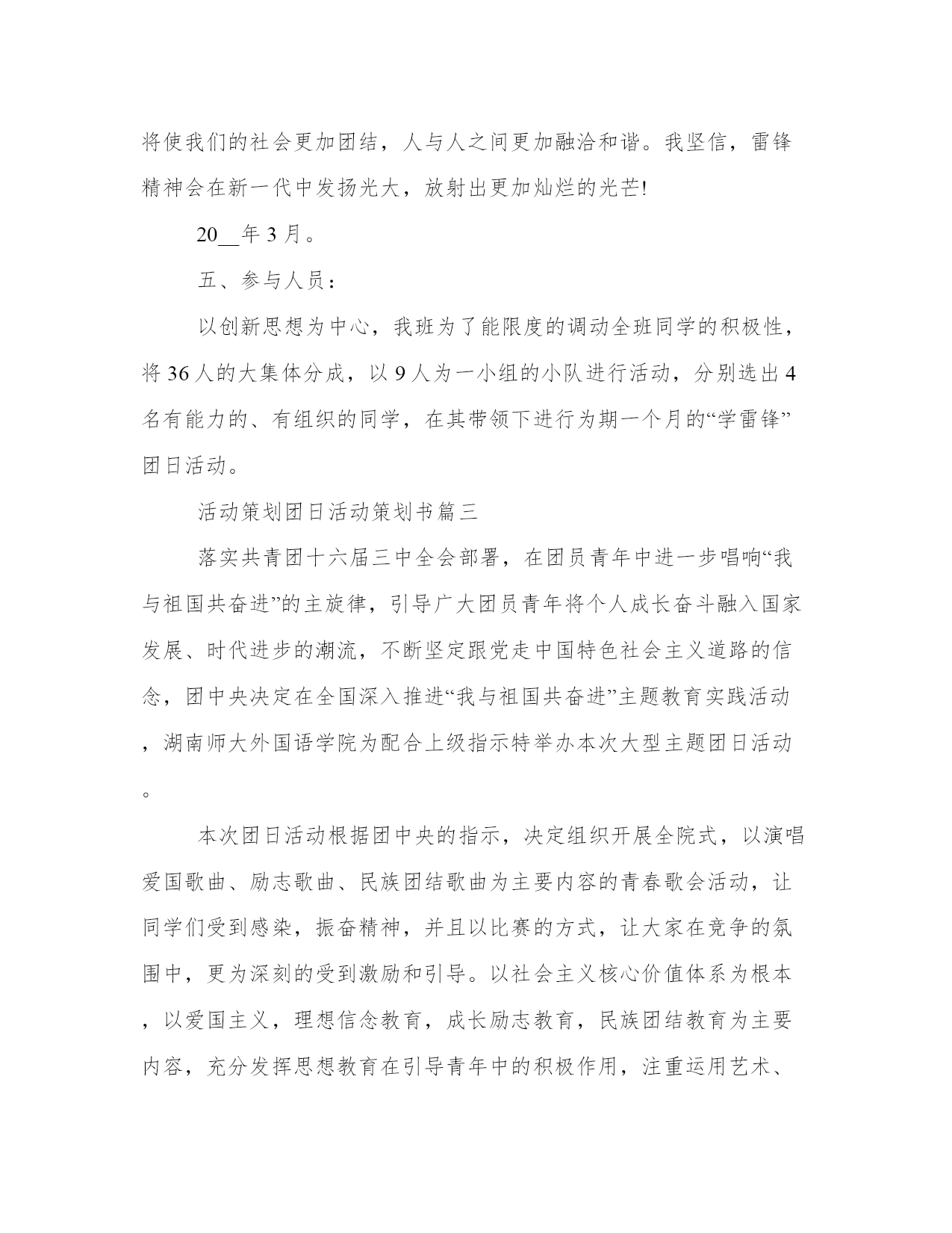 活动策划团日活动策划书(优质17篇)学习技巧可以帮助我们更快速地掌握知识,提高学习效率。总结是一个动态的过程,我们应该随时总结,不断完善自己的行为和表现。通过范文的学习,我们可以发现总结的写作风格和方法有很多种,可以灵活运用。活动策划团日活动策划书篇一目的:通过这次活动,增进师生之间的感情,也让学生学会感恩。的精神,由衷地向老师表示敬意,感谢老师的辛勤工作,通过实际行动表达对老师的敬意,增进师生感情。主题:桃李满天下,恩情似海深。内容:“师生情”签名。“我最想对老师说的一句话”展板。“师恩难忘,师情永驻”征文比赛。“亲力亲为”实际行动。“赞恩师”歌诵。参加对象:建筑工程系系全体同学。时间:20xx年9月1日—20xx年9月10日。地点:北区主楼前(签名、展板)。主办单位:建筑工程系团总支学生会。承办单位:建筑工程系学生会学习部。协办单位:建筑工程系学生会其他各部。活动安排。第一篇、“师生情”签名。时间:九月十日中午12:30。地点:北区主楼前。二十六个教师节。清场:活动结束后由负责组织和参与此次活动的工作人员将现场的桌椅、音响等物品搬回,条幅至于办公室保存。(文艺部和监察部)。第二篇、“我最想对老师说的一句话”展板。准备:富含感恩背景的展板、“我最想对老师说的一句话”有奖小纸条征集、双面胶两卷。时间:九月九日—九月十日。地点:北区主楼前。方案:1、九月七日晚自习前召集各班班长、团支书开会进行宣传和具体实施计划内容。2、九月八日晚自习到各班收集“我最想对老师说的一句话”小纸条。3、九月九号整理小纸条并挑选一部分优秀小纸条贴于展板板面。4、九月十号中午将展板置于主楼前。清场:活动结束后由负责组织和参与此次活动的工作人员。将现场的桌椅、音响等物品搬回,条幅至于办公室保存。(宣传部和生活部)。第三篇、“师恩难忘,师情永驻”征文比赛。准备:九月一日晚自习召集各班班长开会、下发通知。时间:九月八日—十月八日。方案:十月一日—十月八日交电子文档发于指定邮箱。第四篇、“亲力亲为”实际行动。准备:统计办公室数量、老师用车数量……。时间:九月六日—九月十日。地点:待定。方案:活动形式多样化,内容丰富(帮助老师擦车,帮助老师整理办公室……)(全体学生会义务劳动)。第五篇、“赞恩师”主题班会。准备:九月七日晚上召集各班班长、团支书开会并说明此次活动的主题班会评比要求。时间:九月十日晚自习。地点:各班自习室。活动策划团日活动策划书篇二一、活动背景:今天学习雷锋的热情贯穿云霄,__年后的今天虽然寒风凛冽,非常的寒冷,但我们的内心却是火热的,因为这是一个快乐的日子。因为“助人是快乐之本嘛。”在雷锋精神渐渐消退的今天,在现在东北人都是活雷锋大行其道时,连雷锋是干什么都不清时,我们趁这个日子,举行“雷锋精神我传承”签名活动,以此来发扬雷锋精神。大家在此次活动中,积极踊跃,热情高涨,打破了那严寒的包围。那一张签名纸上留下的不只是每个人的名字,是人同学门想起那无私、关爱、理解和奉献的雷锋精神,再反思自己的人生意义,从而使雷锋精神发扬光大。二、活动主题:学习雷锋精神,点滴从我做起。三、活动目的:今天,当改革开放,人民越来越追求精神享受的时候,更需要向雷锋同志学习,雷锋同志为人民服务的价值观已成为人民永远的呼声,正义的呼声,道德的呼声。雷锋的精神有着广阔而深沉的内涵,他已经不是一个人,一个代号,而是新时代人类追求和谐的象征。我们的祖国会因为注入了雷锋精神而更加年轻,高举雷锋精神的火炬,必将使我们的社会更加团结,人与人之间更加融洽和谐。我坚信,雷锋精神会在新一代中发扬光大,放射出更加灿烂的光芒!20__年3月。五、参与人员:以创新思想为中心,我班为了能限度的调动全班同学的积极性,将36人的大集体分成,以9人为一小组的小队进行活动,分别选出4名有能力的、有组织的同学,在其带领下进行为期一个月的“学雷锋”团日活动。活动策划团日活动策划书篇三落实共青团十六届三中全会部署,在团员青年中进一步唱响“我与祖国共奋进”的主旋律,引导广大团员青年将个人成长奋斗融入国家发展、时代进步的潮流,不断坚定跟党走中国特色社会主义道路的信念,团中央决定在全国深入推进“我与祖国共奋进”主题教育实践活动,湖南师大外国语学院为配合上级指示特举办本次大型主题团日活动。本次团日活动根据团中央的指示,决定组织开展全院式,以演唱爱国歌曲、励志歌曲、民族团结歌曲为主要内容的青春歌会活动,让同学们受到感染,振奋精神,并且以比赛的方式,让大家在竞争的氛围中,更为深刻的受到激励和引导。以社会主义核心价值体系为根本,以爱国主义,理想信念教育,成长励志教育,民族团结教育为主要内容,充分发挥思想教育在