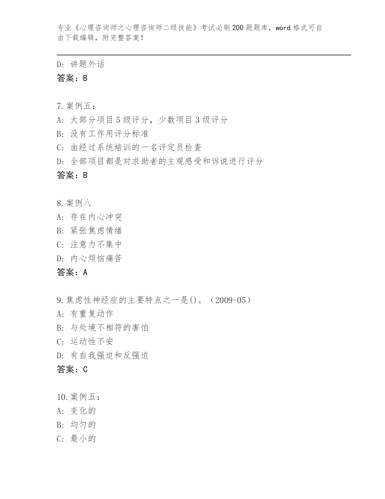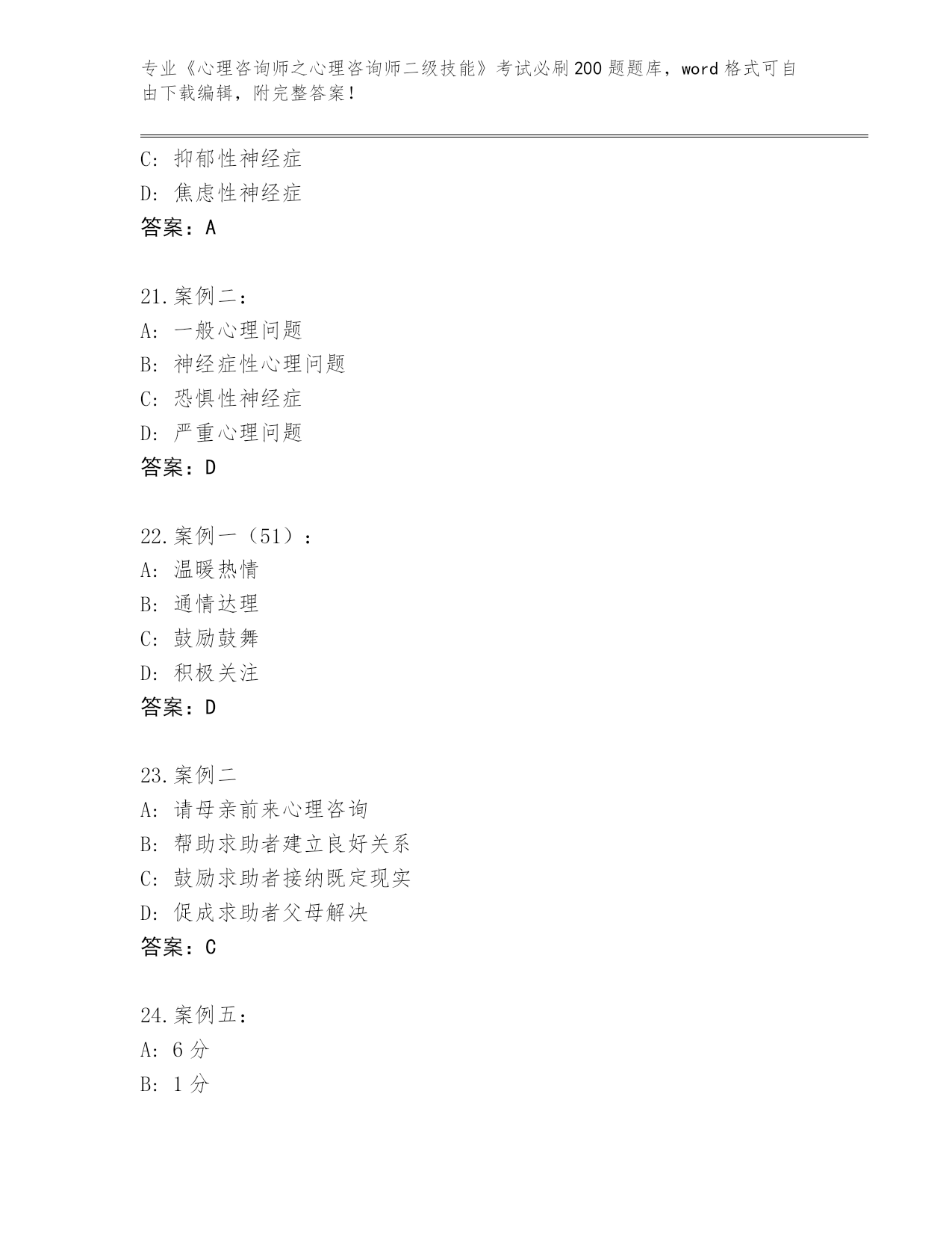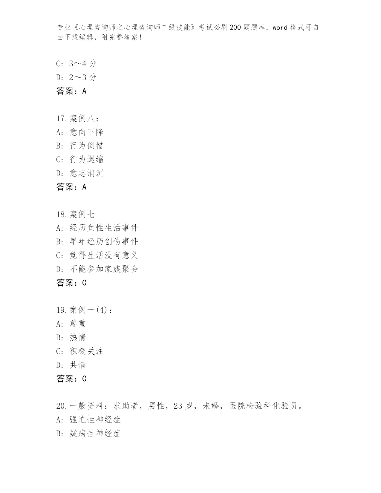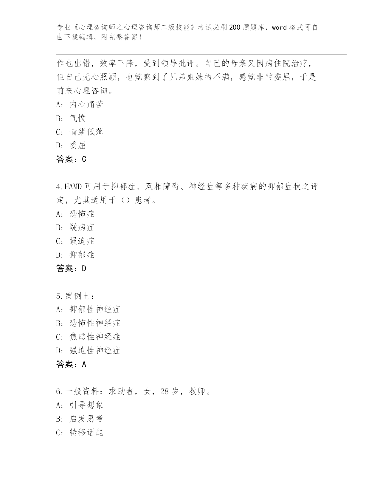 吉林省历年《心理咨询师之心理咨询师二级技能》考试必刷200题王牌题库【夺冠系列】