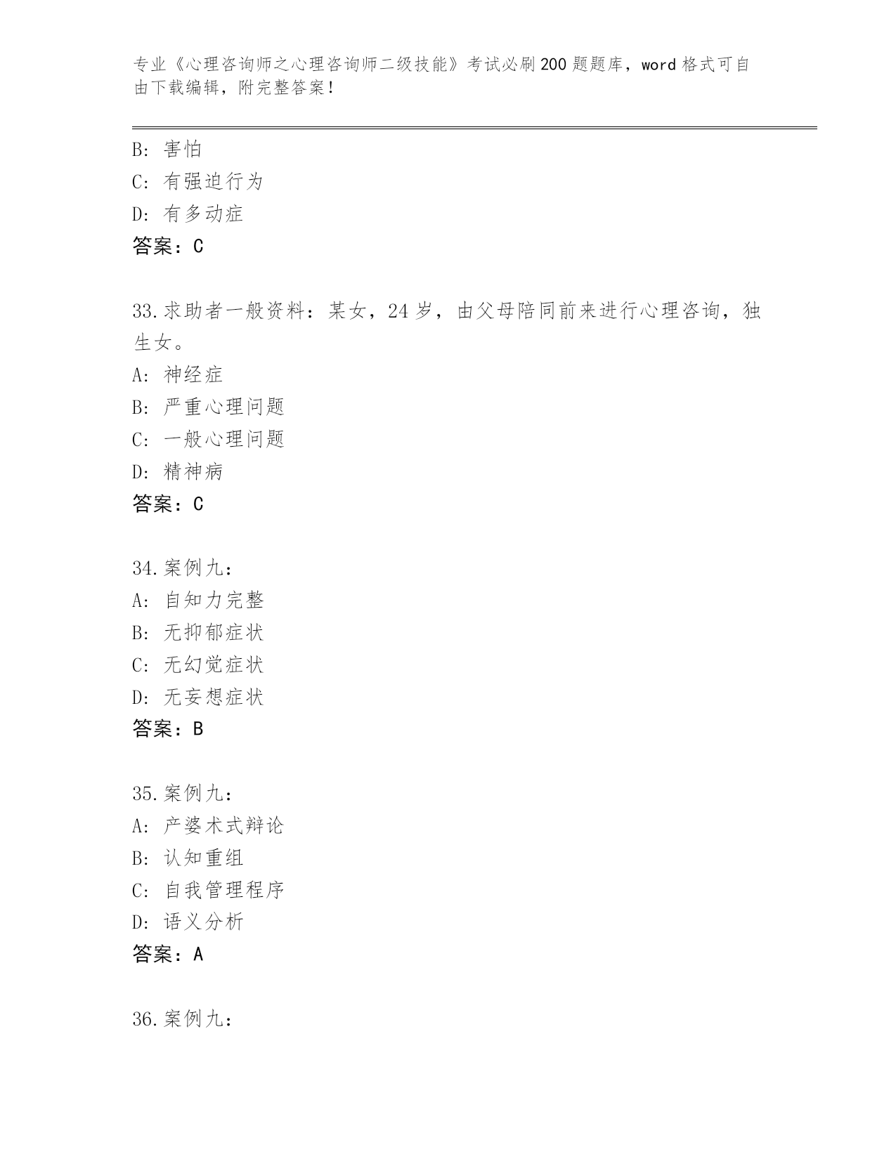 吉林省《心理咨询师之心理咨询师二级技能》考试必刷200题内部题库带答案(新)