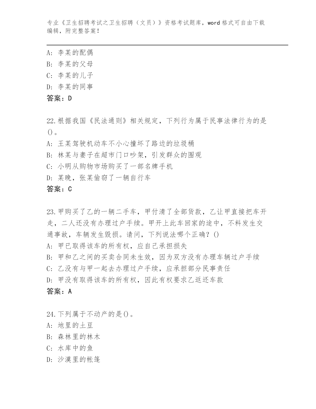 2024年浙江省下城区《卫生招聘考试之卫生招聘(文员)》资格考试大全附答案(A卷)
