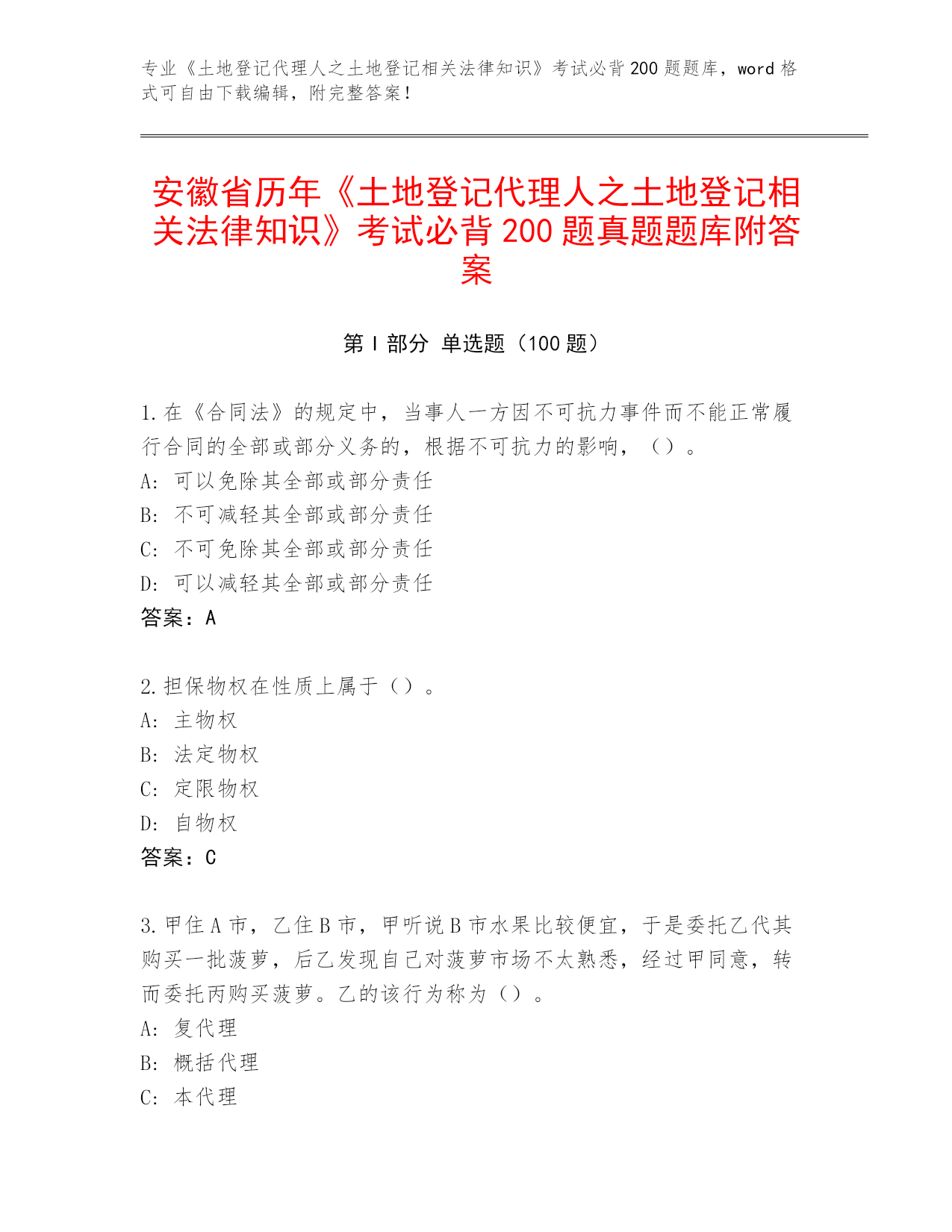 安徽省历年《土地登记代理人之土地登记相关法律知识》考试必背200题真题题库附答案.docx