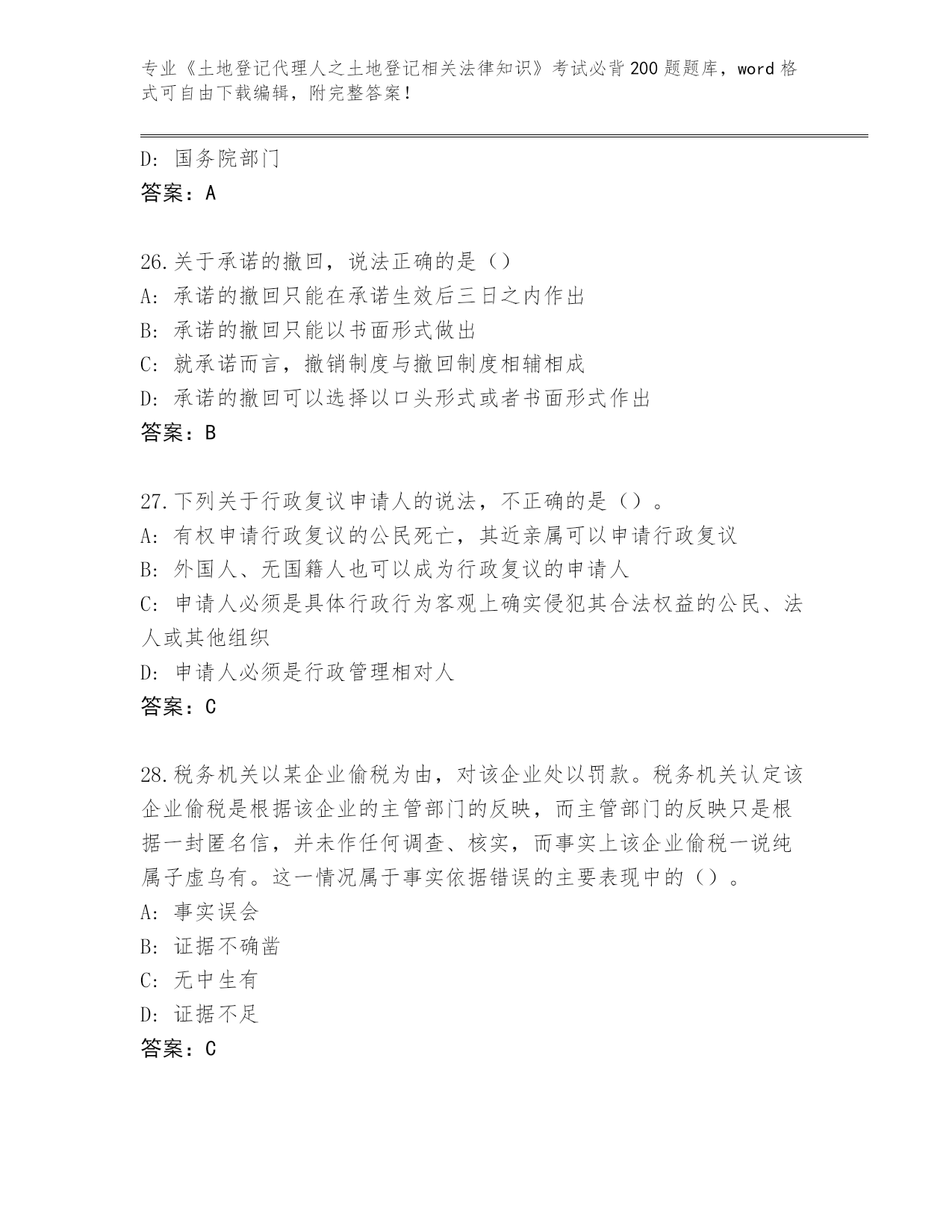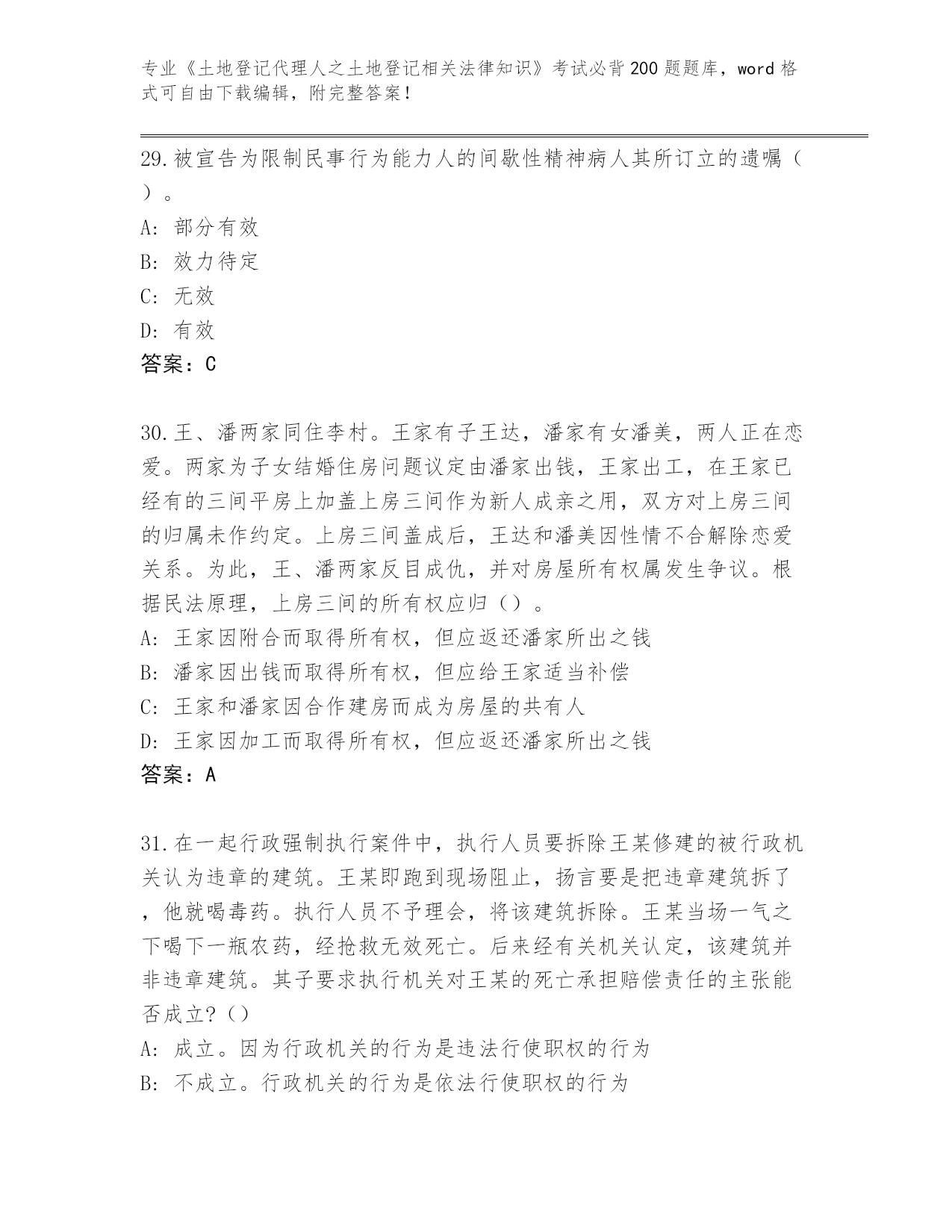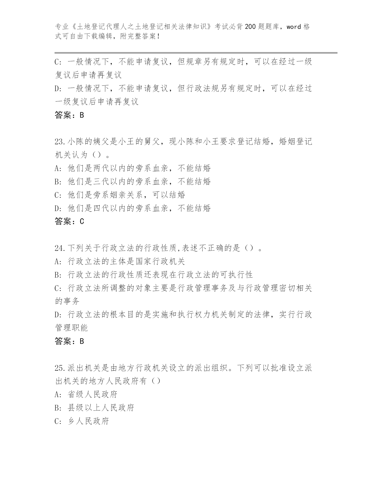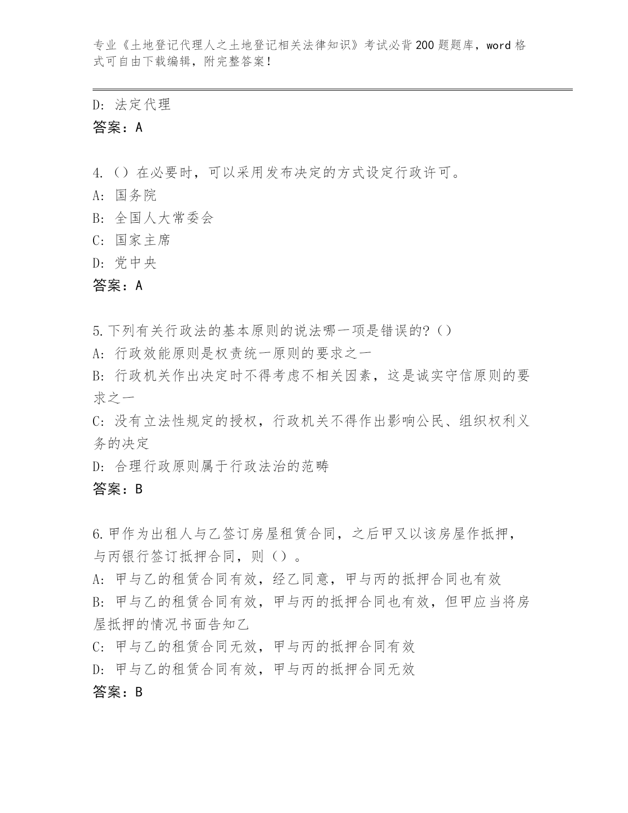 陕西省商州区2024年《土地登记代理人之土地登记相关法律知识》考试必背200题题库及答案(真题汇编)