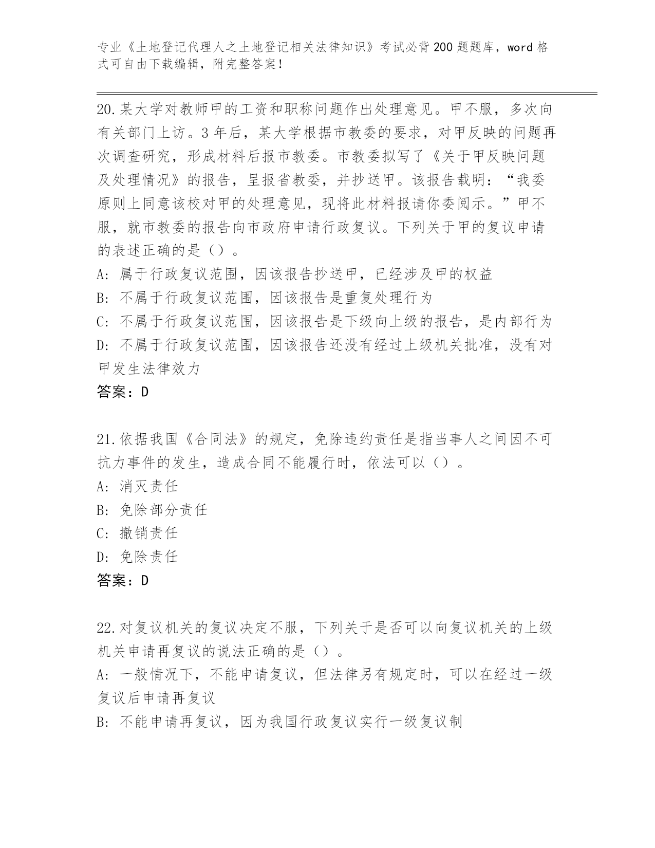 安徽省历年《土地登记代理人之土地登记相关法律知识》考试必背200题真题题库附答案