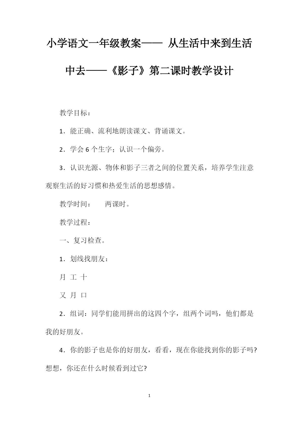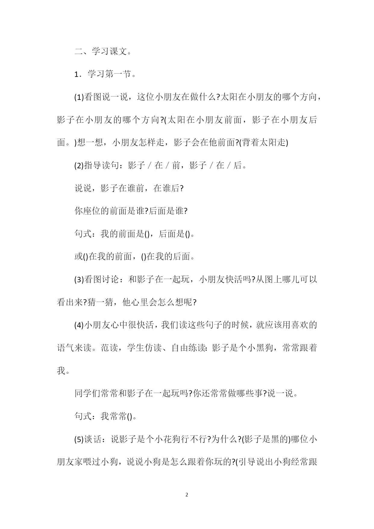 小学语文一年级教案——从生活中来到生活中去——《影子》第二课时教学设计.doc