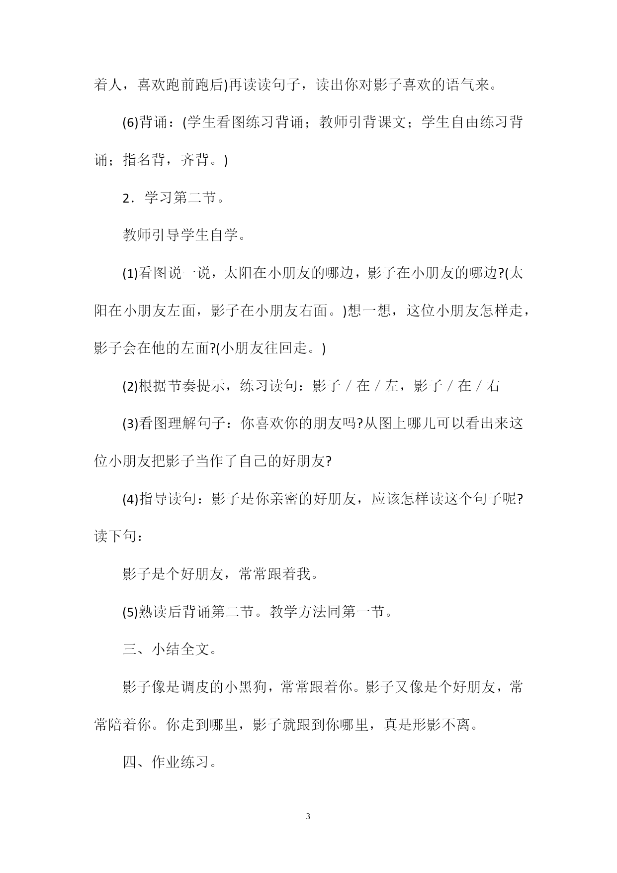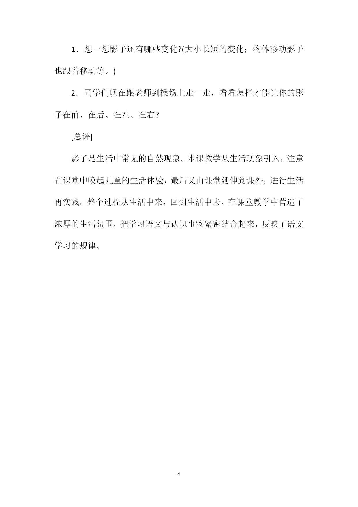 小学语文一年级教案——从生活中来到生活中去——《影子》第二课时教学设计