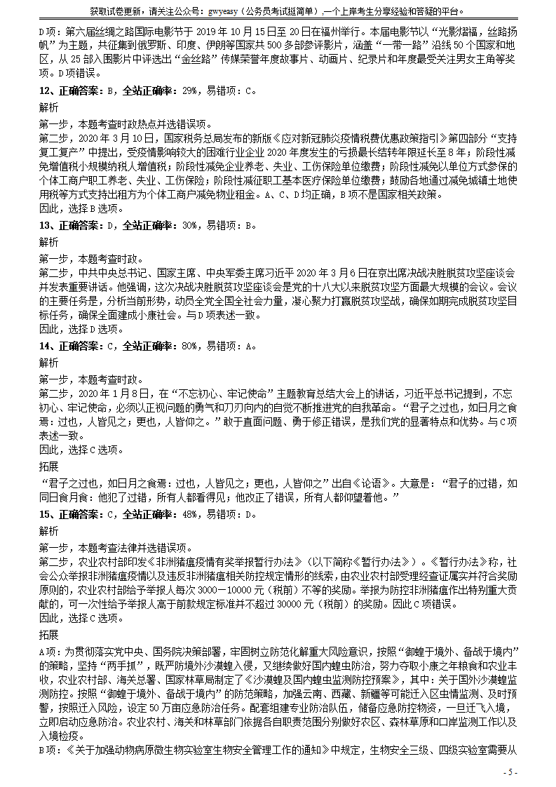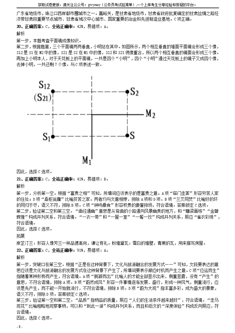 2020年0822云南公务员考试《行测》真题参考答案及解析.pdf