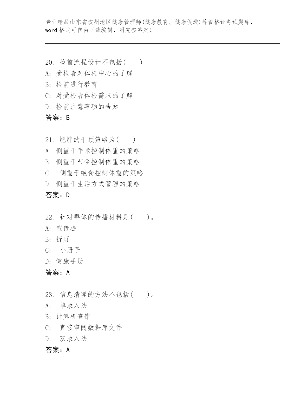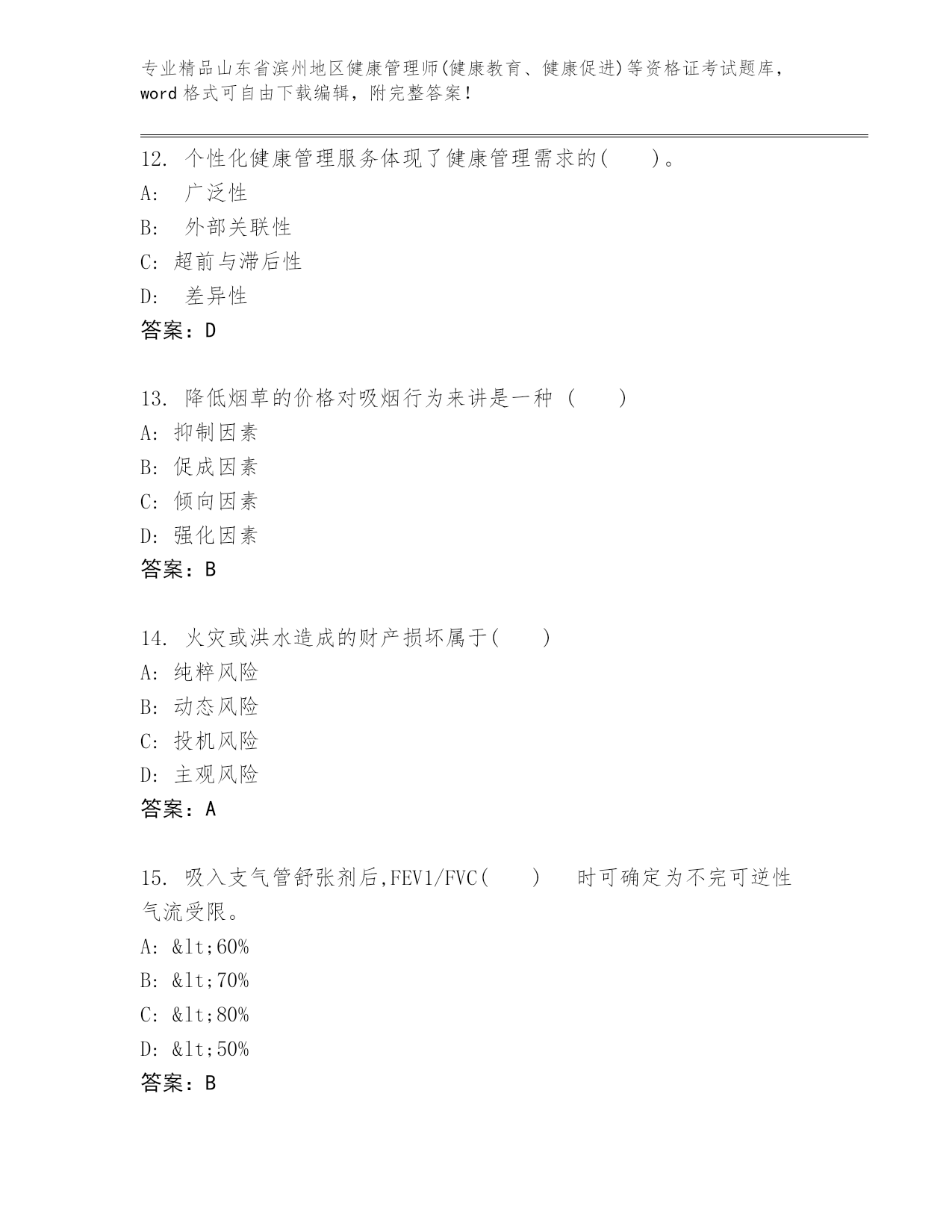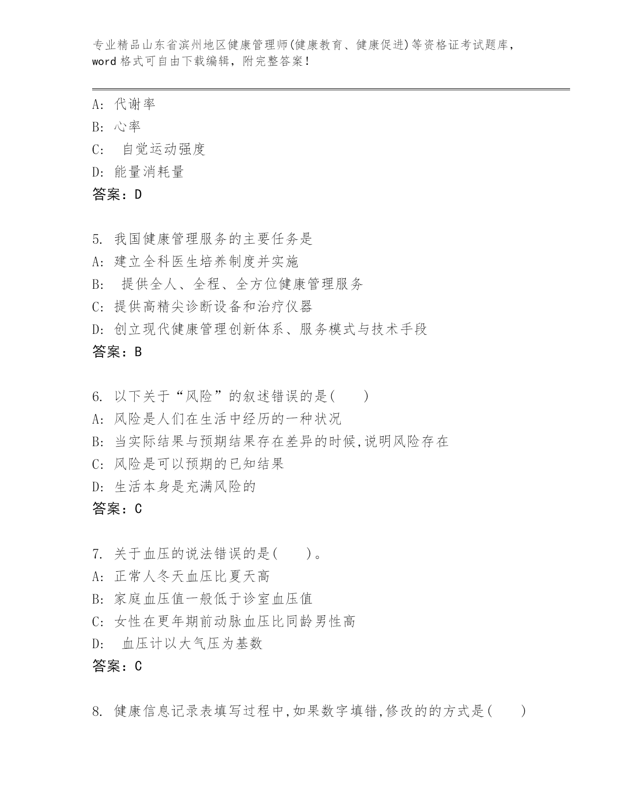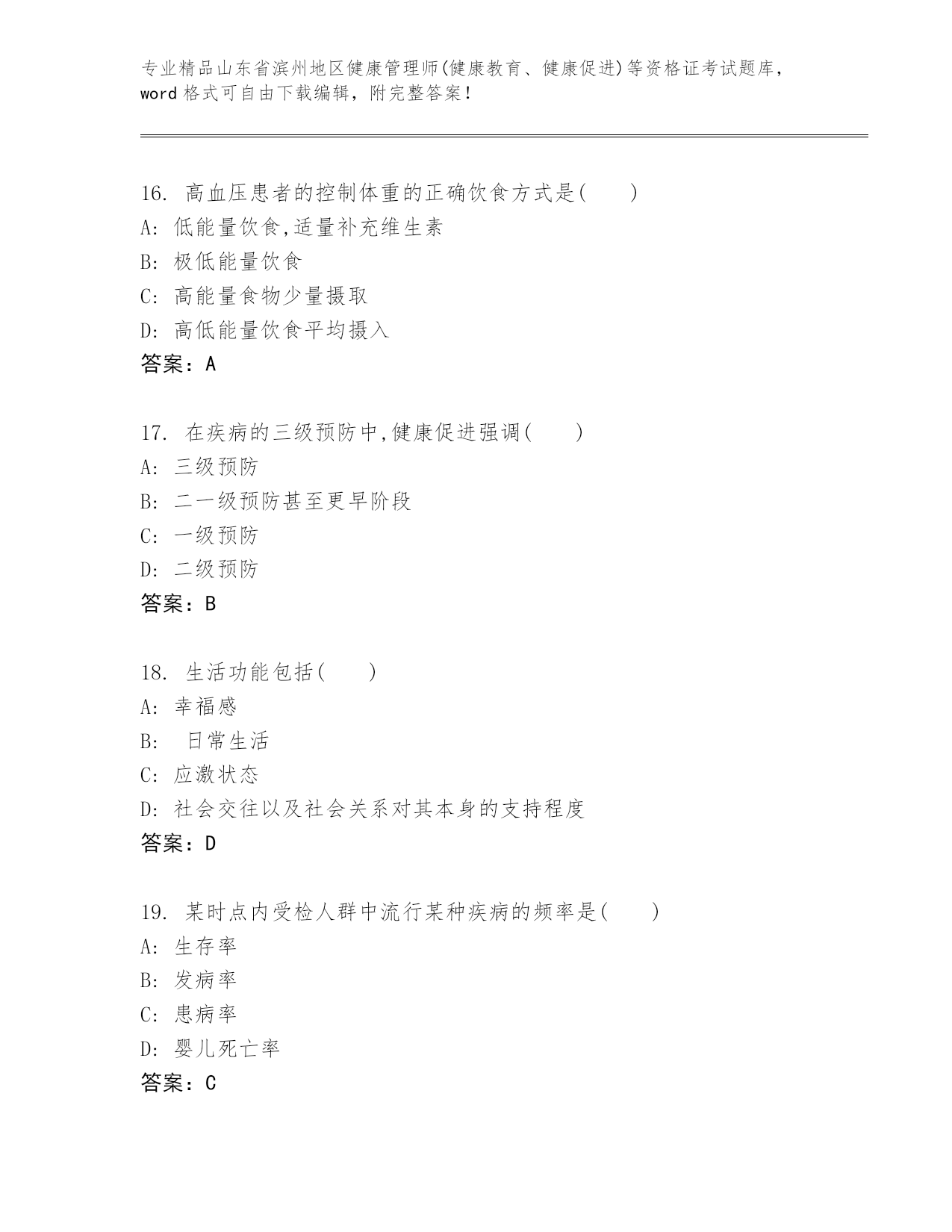 山东省滨州地区健康管理师(健康教育、健康促进)等资格证考试附答案(基础题).docx