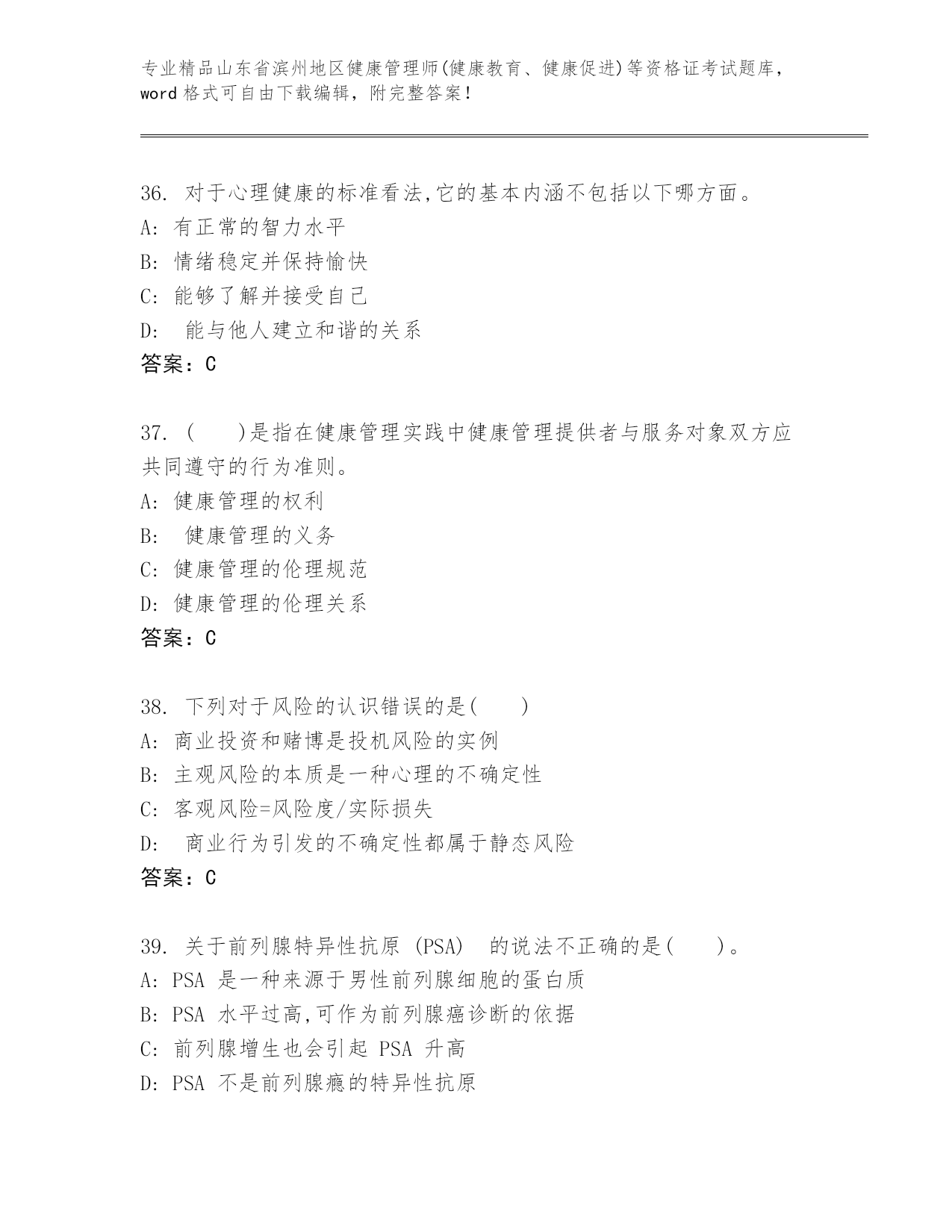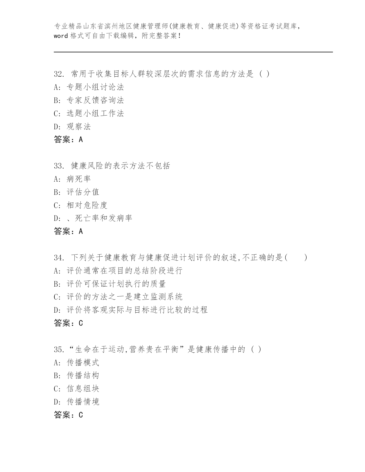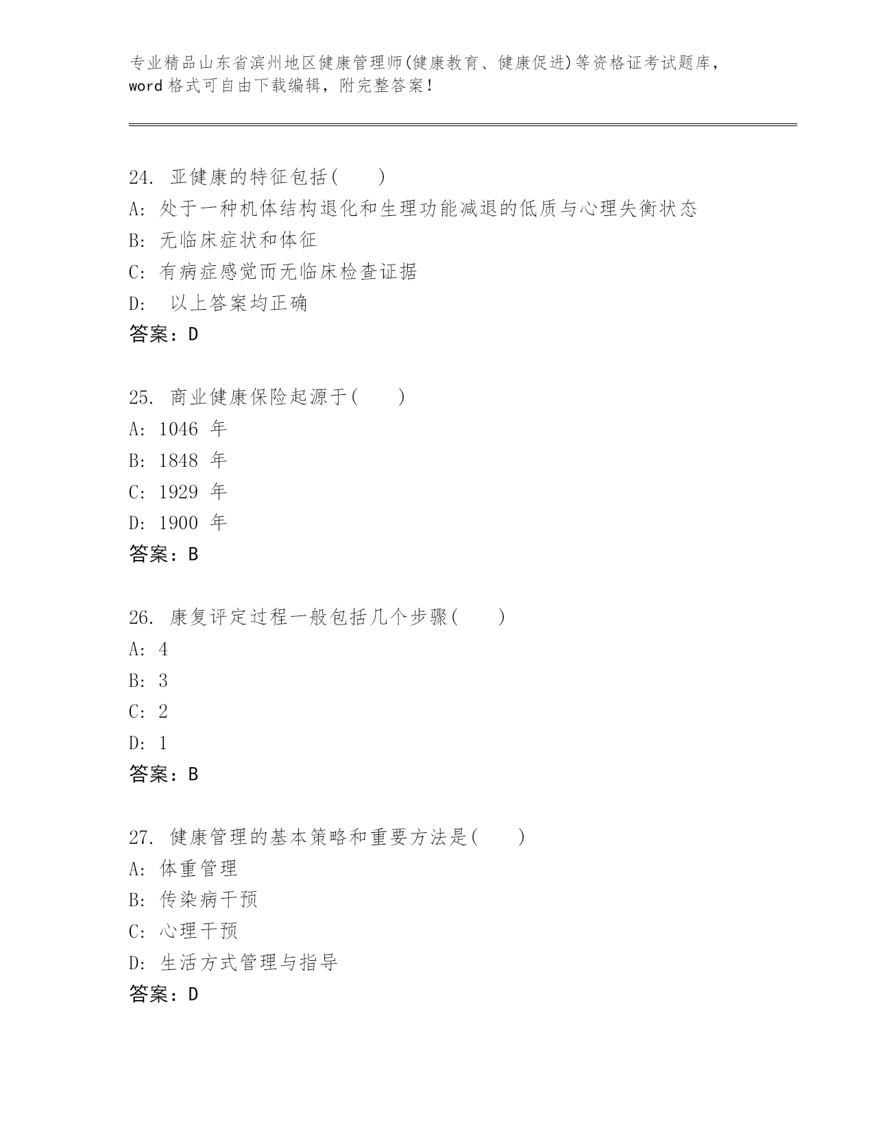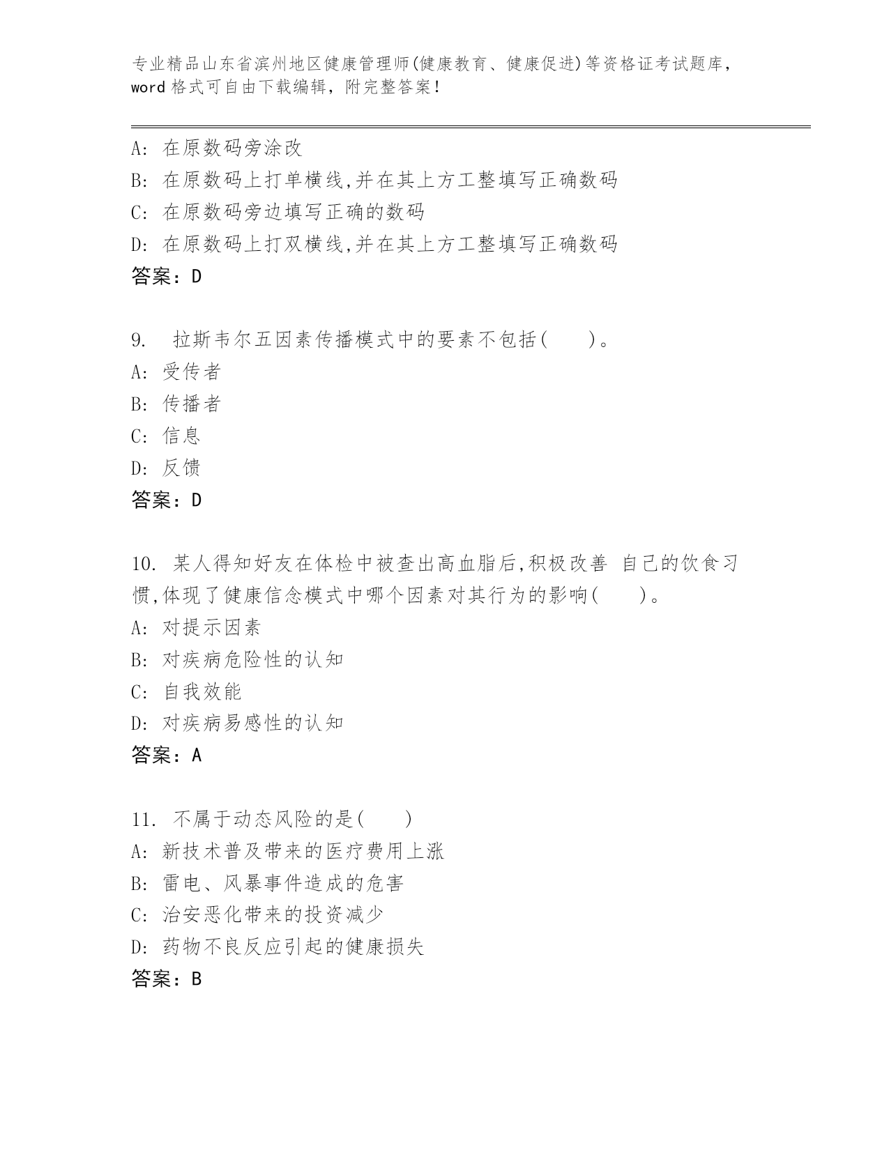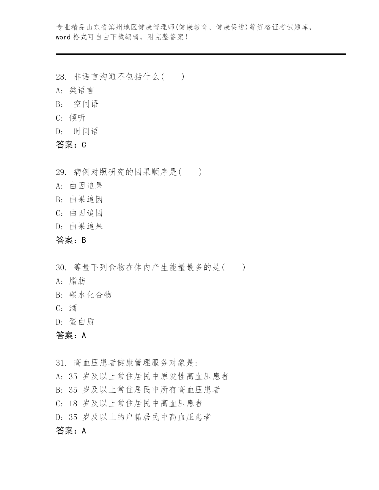 山东省滨州地区健康管理师(健康教育、健康促进)等资格证考试附答案(基础题).docx