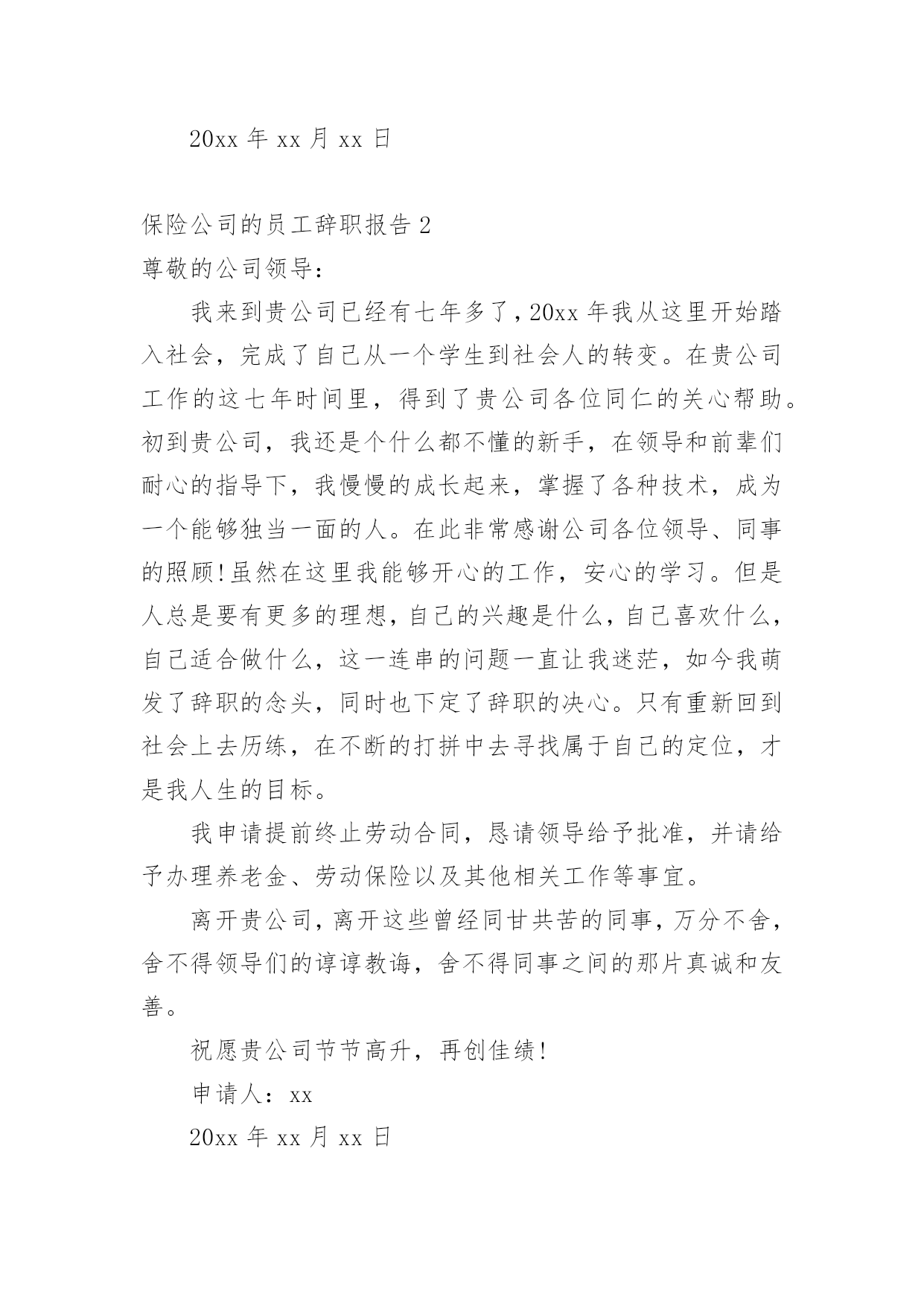 保险公司的员工辞职报告在现实生活中,报告使用的频率越来越高,报告中涉及到专业性术语要解释清楚。那么,报告到底怎么写才合适呢?下面是小编整理的保险公司的员工辞职报告,欢迎阅读,希望大家能够喜欢。保险公司的员工辞职报告1首先向您说声对不起,我辜负了您对我的期望,我是怀着十分复杂的心情写这份申请书的,今天我要向您报告一件事情,那就是我的离职。工作这件事,不是能随随便便拿来开玩笑的。我也是经过深思才决定离职的我希望您能够认真的读完,也希望您能感受到我辞职的理由,以及我的诚意。在泰康人寿工作的这段时间里,我有幸得到了公司领导及同事们的倾心指导及热情帮助。工作上,我学到了许多宝贵的工作经验和实践技能;思想上,得到领导与同事们的指导与帮助,有了更成熟与深刻的人生观。在这里的每一位员工,对待我就像对待自己的家人和好朋友一样。我感到非常温馨。这是一个和谐的公司,也是一个积极向上的公司。在这里我在这个积极的集体中学习到了什么是坚持,什么是顽强。这都要感谢这个大家庭。在公司学到了不少东西,但是我却感觉到现在自己越来越难适应这个工作。也许是我自身的能力问题。我想,这就是时间所表现出来的问题。对于这个问题,我考虑了很多种解决方案,但是最终,我还是选择了离职。刚刚开始踏上这个岗位时,心中全是期待。感觉那就是自己实现梦想的地方。但是时间长了发现越来越力不从心。也许是我自身工作压力所造成的。我想,在我这里,这个职业发挥不了它最大的潜能。我希望有个更好的人去做它,更好的体现它的价值。而那个人不是我。对于我离职后给公司和学校造成的不便,我感到深深的愧疚。我知道,我的突然离职给学校和公司造成麻烦了,但是这里真的不是能够体现我价值的地方,我想,公司也是希望有个更能体现的人来展现这个岗位的精彩。离职,这件事真的是我理智思考很久所做出的决定。我相信您认真看完了,也一定会同意我的做法的。辞职,不是一件小事,这关系到我的生活。请不要怀疑我的决心。离职,是我深思熟虑的决定。离职后就要有一个明确的目标,对自己后期实习做一个明确的规划。生活就要拉开序幕了.如何规划好我的实习生活,有条不紊地进行着,需要我有个明确的目标和规划/我暂且将计划分为几部分.首先,理论与知识相结合。学习理论的目的在于实践,过分强调理论而轻视实践,人就会丧失实践的能力。只有付诸行动,认真去实践,所学到的知识才不至于成为空洞教条的理论。纸上得来终觉浅,绝知此事要躬行,实践是理论的基础,是理论的出发点和归宿点,对理论起决定作用,这是毫无疑义的。但也不能因此而轻视理论,导致唯实践主义,我可以趁实习的机会将在学校所学的知识通过实践转化为自己的经验,从而避免走弯路。其次,要培养良好心态和习惯即使作为实习生的我们,不要以为接电话、发传真、复印文件之类的“杂货”完全没有技术含量,会从小事中积累重要经验。例如复印文件就可以熟悉公文的写作,打电话可以锻炼和陌生客户沟通的能力,发传真也可以帮助熟悉公司的客户。在所有的工作中,沟通和协调能力都是一项最基本的素质,在实习中应注意培养这种能力。这种能力也可以称为处理关系的技巧,有助于工作中和谐气氛的形成,与人们头脑中“逢迎上司”、“阿谀逢迎”的概念是两码事。沟通和协调能力也是自我表现的一个方面,能让上司更全面地了解自己,看到实习中为工作所做出的努力。最后,将实习纳入职业规划中。作为即将毕业的大学生,大家都知道实习经历对于求职的重要性。企业在招聘应届毕业生时,筛选简历最看重的因素之一便是学生是否参加过专业实习,企业和公司偏爱有社会实习和实践经验的学生,这是公开的秘密。招聘企业认为,有工作经验的学生在工作中能马上上手,这也是为公司节省成本,丰富的社会实践经验也展示了应聘者积极进取的心态,公司青睐他们是鉴于他们在实习中综合素质会得到提升,免去了初入职场时“愣头愣脑的`”青涩。此致敬礼申请人:xxx20xx年xx月xx日保险公司的员工辞职报告2尊敬的公司领导:我来到贵公司已经有七年多了,20xx年我从这里开始踏入社会,完成了自己从一个学生到社会人的转变。在贵公司工作的这七年时间里,得到了贵公司各位同仁的关心帮助。初到贵公司,我还是个什么都不懂的新手,在领导和前辈们耐心的指导下,我慢慢的成长起来,掌握了各种技术,成为一个能够独当一面的人。在此非常感谢公司各位领导、同事的照顾!虽然在这里我能够开心的工作,安心的学习。但是人总是要有更多的理想,自己的兴趣是什么,自己喜欢什么,自己适合做什么,这一连串的问题一直让我迷茫,如今我萌发了辞职的念头,同时也下定了辞职的决心。只有重新回到社会上去历练,在不断的打拼中去寻找属于自己的定位,才是我人生的目标。我申请提前终止劳动合同,恳请领导给予批准,并请给予办理养老金、劳动保险以及其他相关工作等事宜。离开贵公司,离开这些曾经同甘共苦的同事,万分不舍,舍不得领导