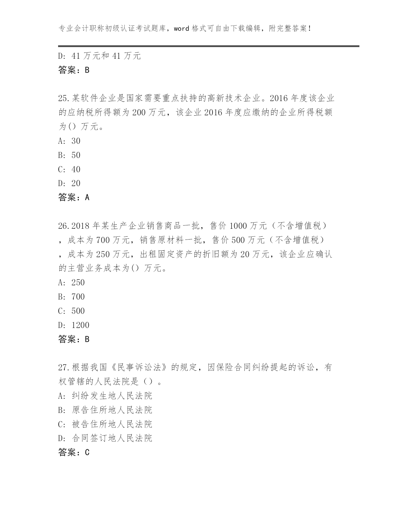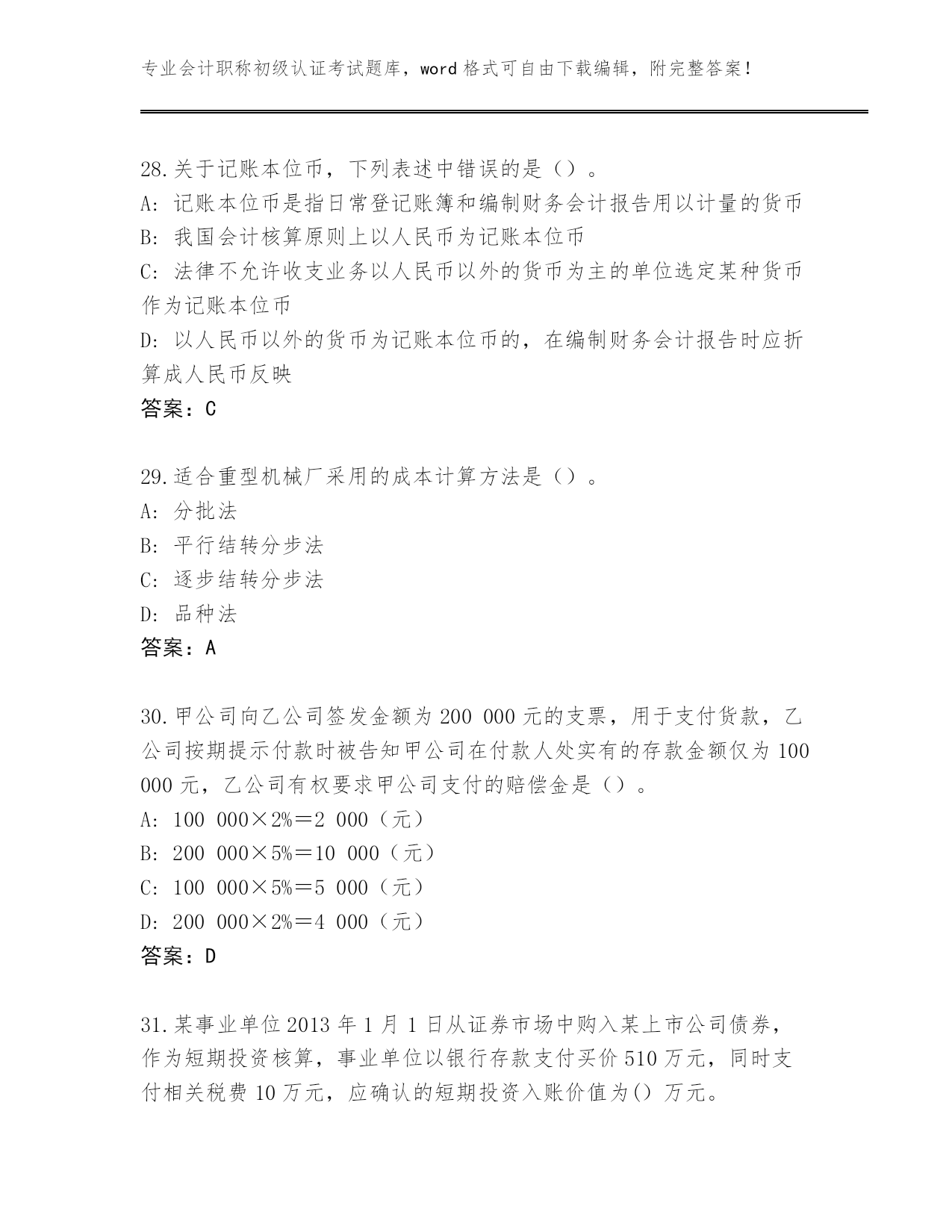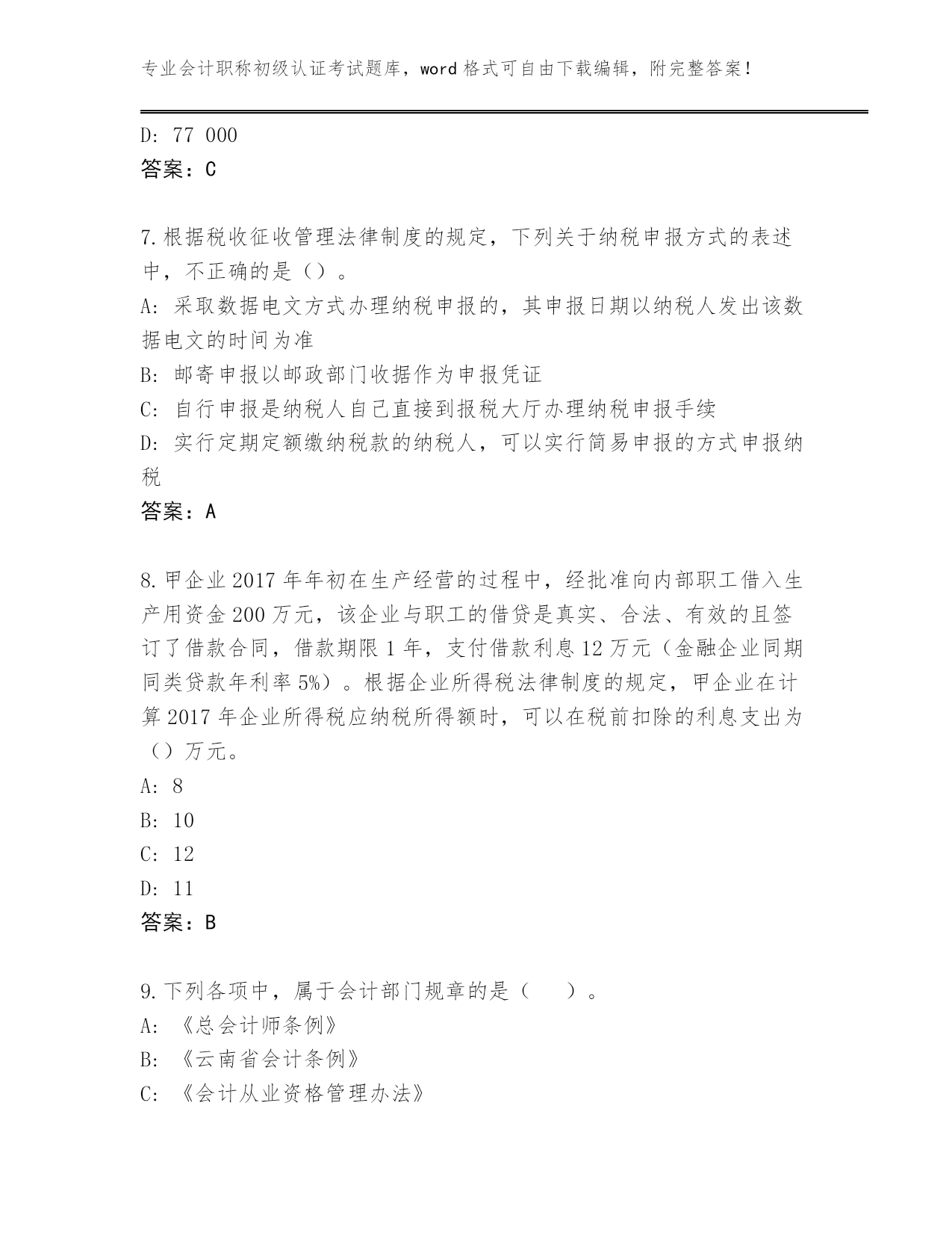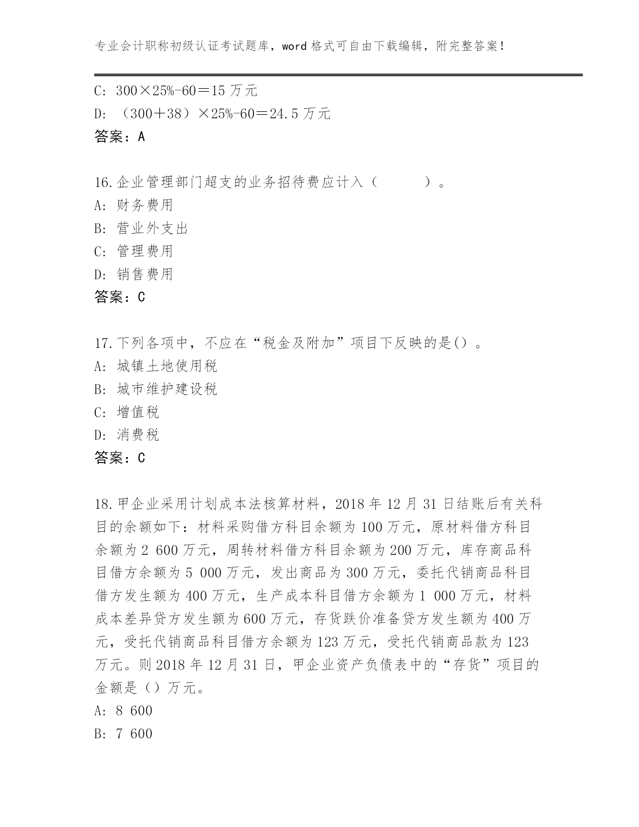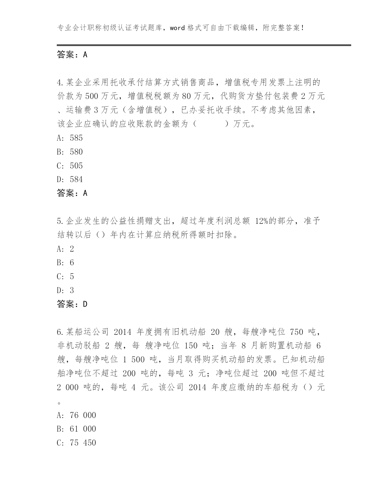 2023-2024年湖北省东西湖区会计职称初级认证考试王牌题库(培优).docx