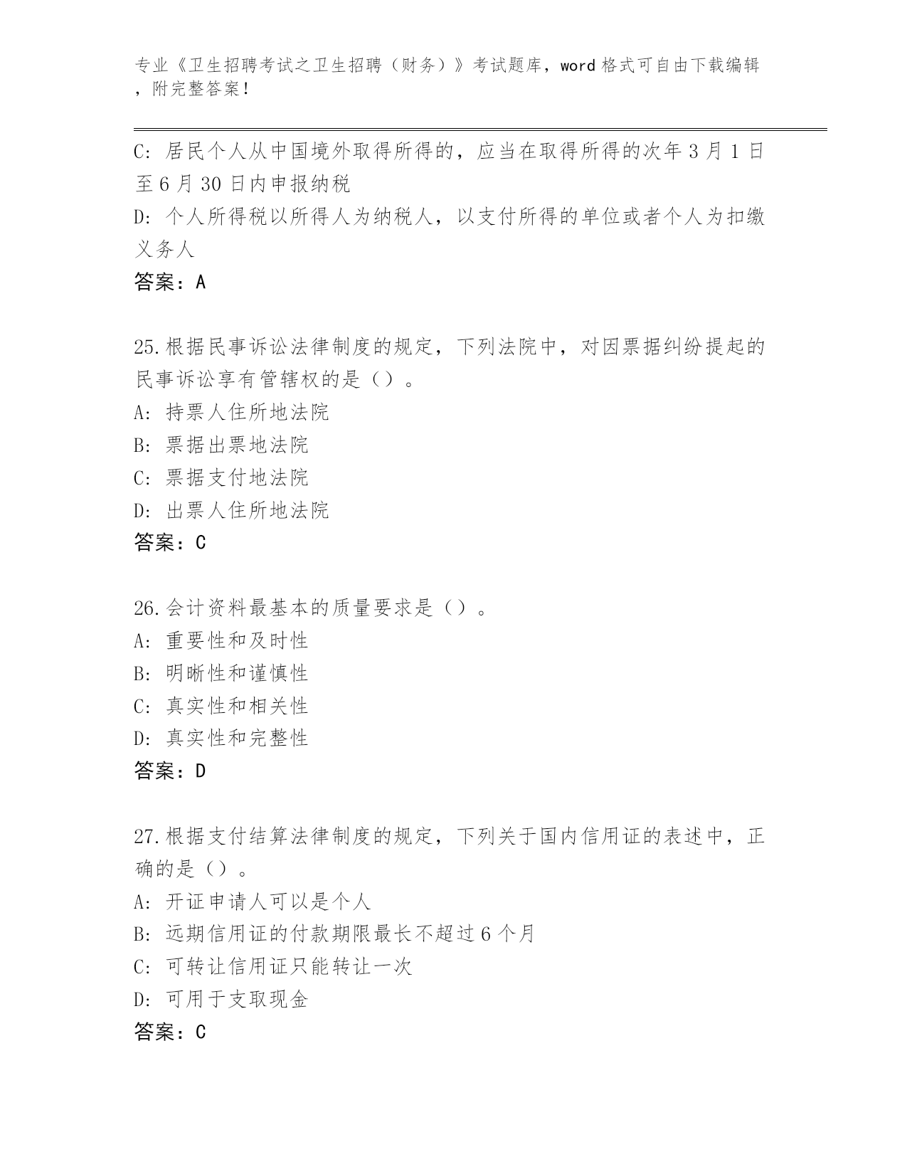 湖北省安陆市2024年《卫生招聘考试之卫生招聘(财务)》考试a4版可打印
