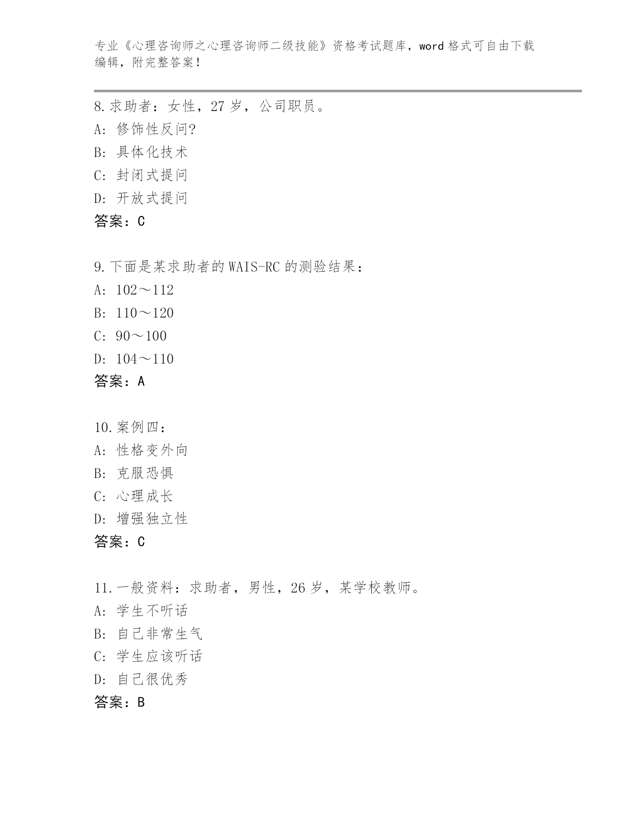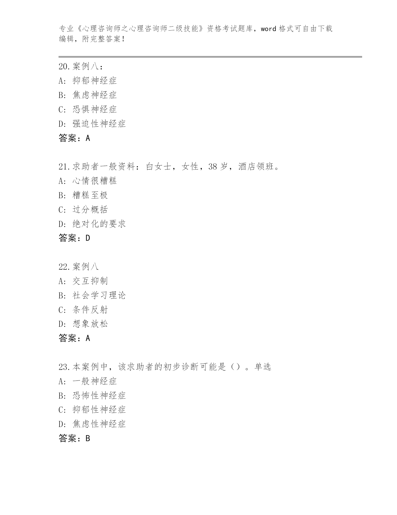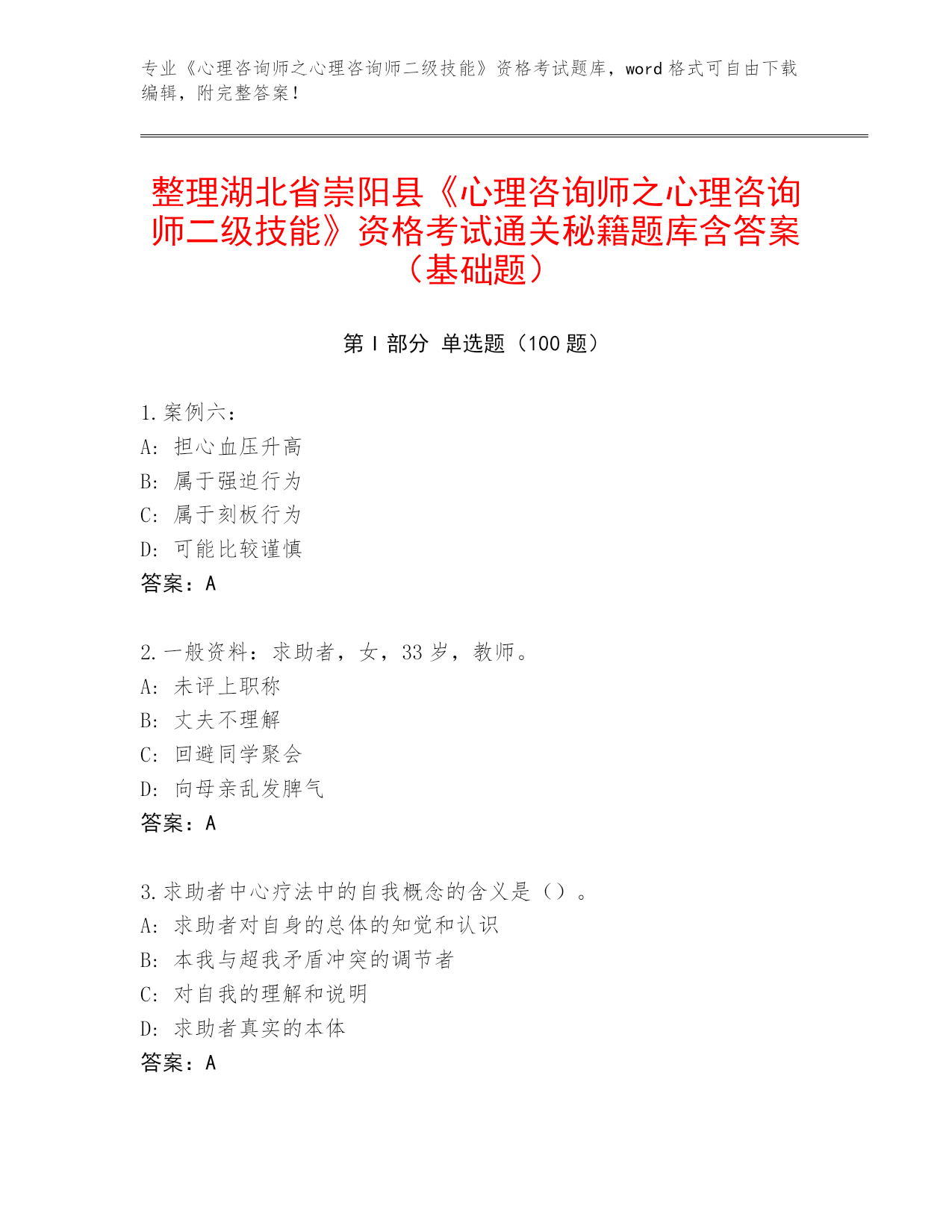 2023-24年湖北省崇阳县《心理咨询师之心理咨询师二级技能》资格考试通关秘籍题库【黄金题型】