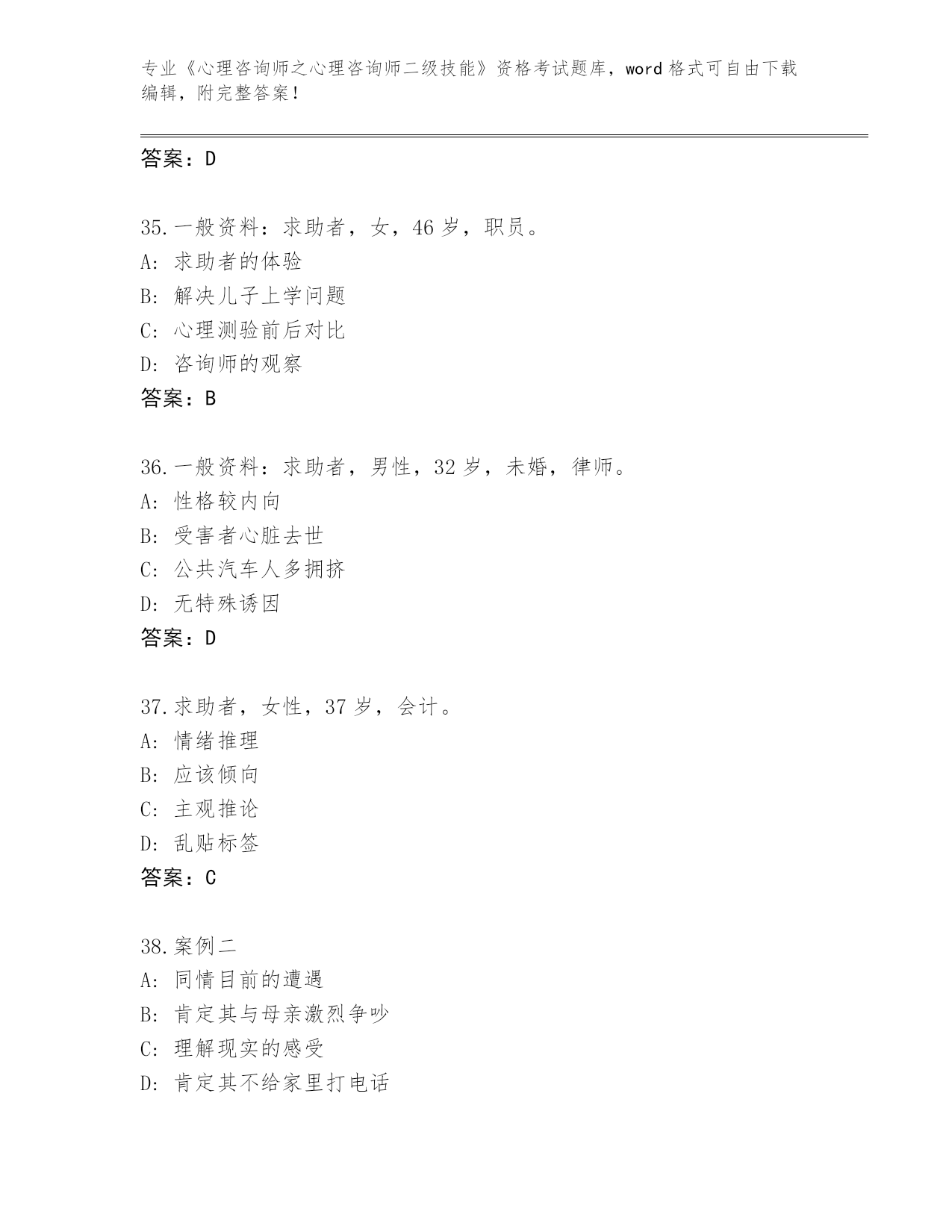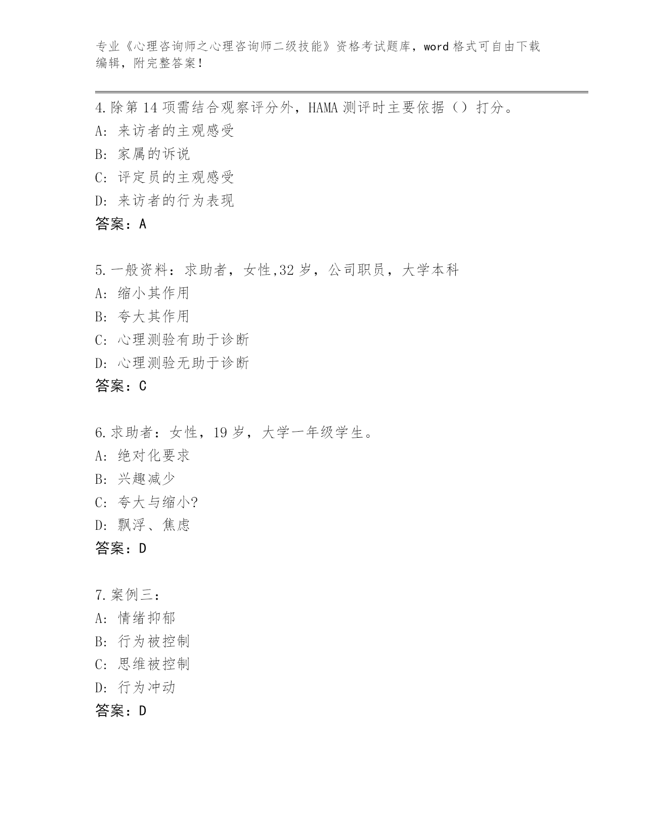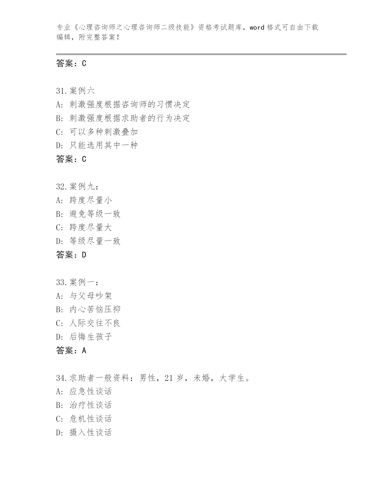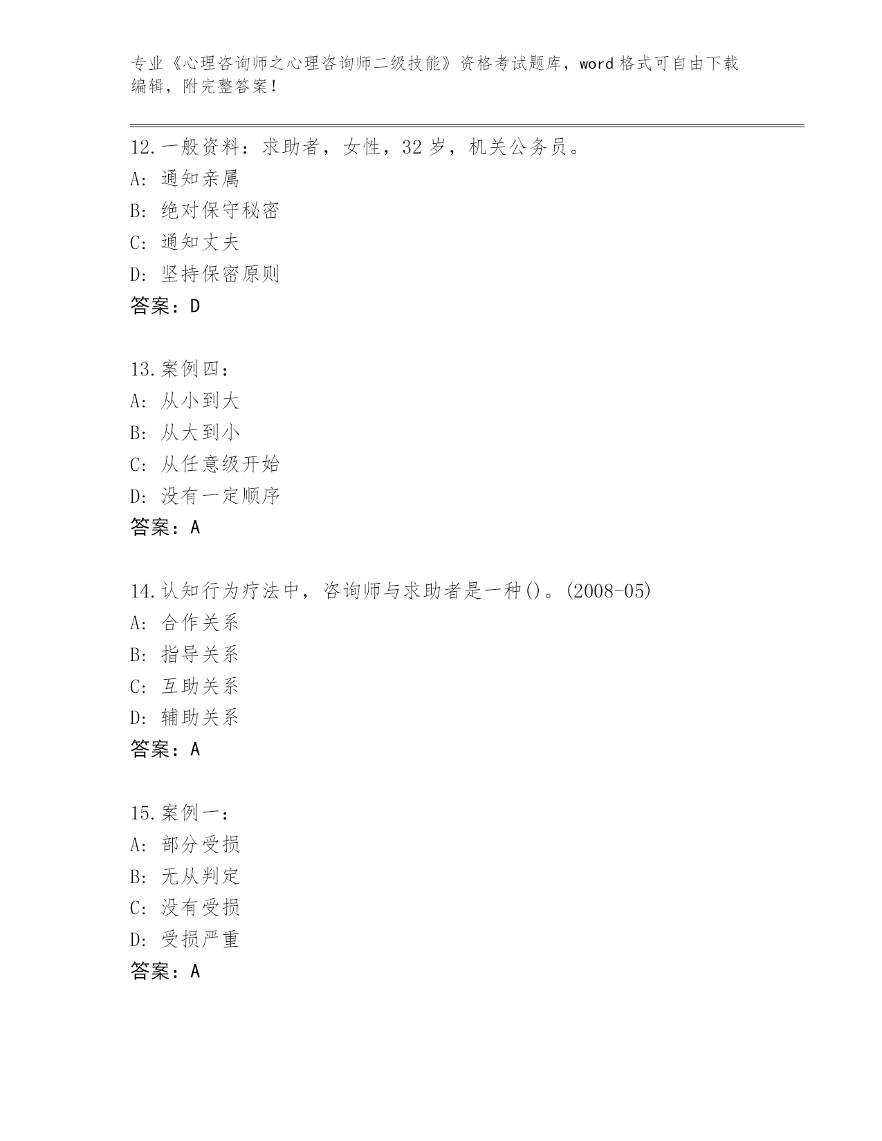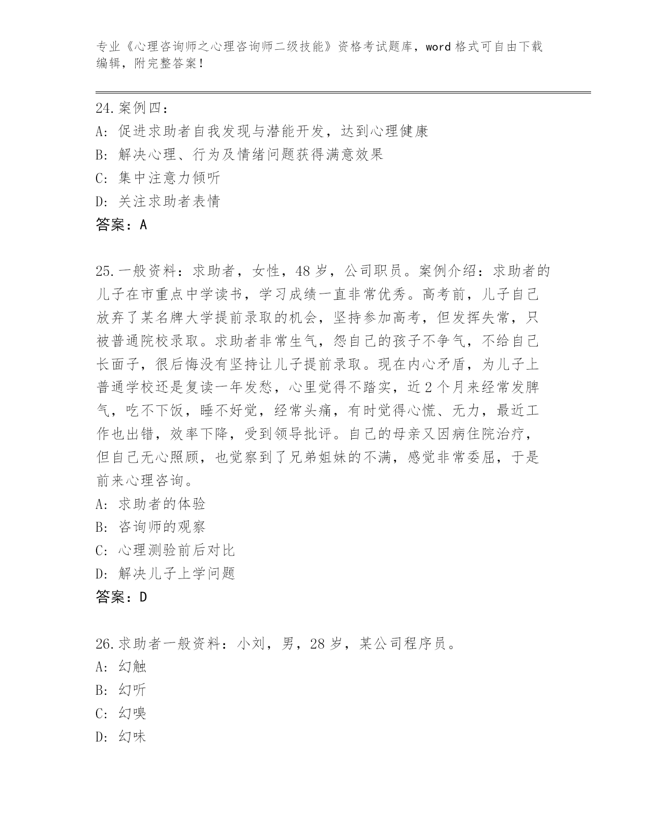 湖北省2024年《心理咨询师之心理咨询师二级技能》资格考试通关秘籍题库(典型题)