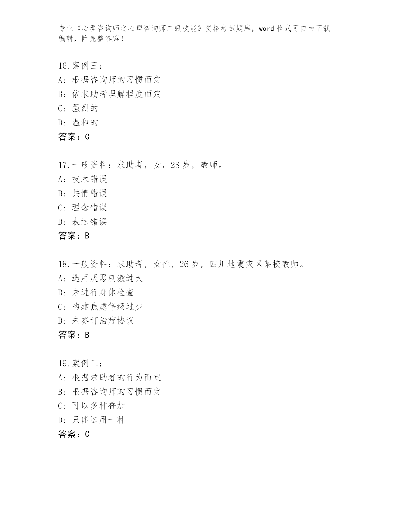 整理河南省《心理咨询师之心理咨询师二级技能》考试通关秘籍题库含答案(巩固)