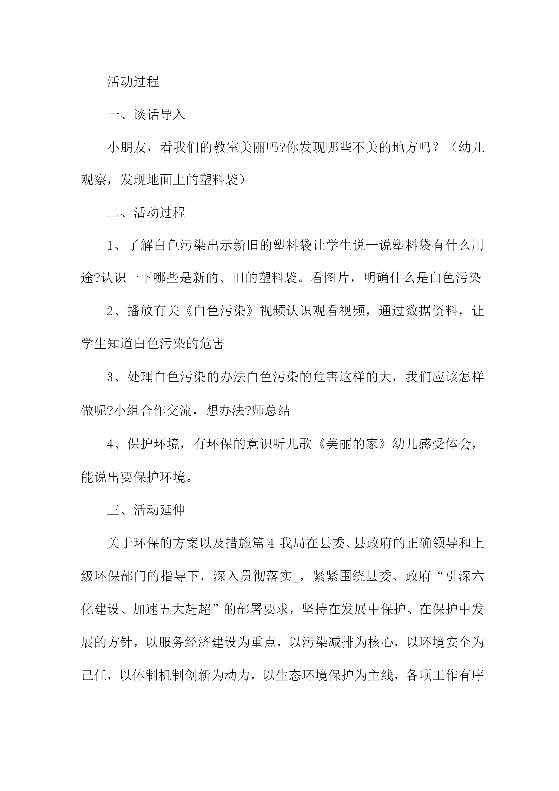 关于环保的方案以及措施【7篇】关于环保的方案以及措施篇1环保部日前发布《中国环境噪声污染防治报告(20__)》,披露了全国城市声环境现状以及噪声防治工作的总体情况。全国城市声监测夜间1/4不达标报告显示,20__年,全国共有308个地级及以上城市开展了功能区声环境质量监测;昼间总点次达标率为%,夜间为%。31个省会城市情况也不乐观,昼间总点次达标率为%,夜间为%,交通干线两侧区域声污染相当严重。从质量监测看,20—年,全国有321个地级及以上城市开展了昼间区域声环境质量监测,平均值为分贝,达到一级的城市13个、二级220个、三级84个,省会城市总体处于二级、三级水平。324个地级及以上城市开展了昼间道路交通声环境质量监测,平均值为分贝。全国最“吵”的地方,并非京沪等特大城市,而是以均值分贝位列第一的贵阳,哈尔滨紧随其后。对此,中国环境监测总站研究员温香彩表示,长期调研跟踪显示,哈尔滨噪声强度大跟生活习惯相关,而贵阳则是由于最近几年工地较多。噪声投诉占环境投诉总量1/320__年3月,世卫组织一份报告首次给噪声污染“定罪”。根据世卫组织对欧洲国家的流行病学研究,噪声污染已成为空气污染之后影响人体健康的环境因素。过度暴露在噪声污染中,不仅会严重影响心理健康,也会增加患心脏病等疾病的风险。此外,噪音对建筑物和机械设备的影响也不容忽视。也正因此,噪声成为环境污染投诉高发区。年度报告显示,20年,全国共收到环境噪声投诉万件,占环境投诉总量的%。其中,工业企业噪声类占%,建筑施工噪声类占%,社会生活噪声类占%,交通噪声类占%。按照全国经济区域划分,东部地区噪声投诉量占全国%,西部、中部和东北地区分别为%、%和%。尽管投诉比例居高不下,但问题的解决却十分不易。温香彩介绍,与大气、水、土壤等环境要素的污染都不同,噪声污染瞬时性、局部性、分散性很强,所以即使接到群众举报,有时很难取证,投诉经常不了了之;或者当时解决了,之后又会继续。也因此,对于噪声污染,目前的状况是“民不告,官不究”。与此同时,一组数据令人忧心。20__年,环保部审批建设项目环评159个,其中131个对环境产生不同程度噪声影响。20—年,全国老工业环境污染治理施工项目和竣工项目总数分别为7203个和5652个,其中噪声治理施工项目和竣工项目仅分别占项目总数的%和%。全国施工项目本年完成投资合计亿元,其中噪声治理投资总计为亿元,虽然较上年增加%,总额却少得可怜。同期,全国噪声与振动污染防治行业总产值为119亿元左右,其中噪声控制工程与装备为57亿元,技术服务收入10亿元,与上年相比有较大幅度下降。各地治理效果尚不显著噪声污染作为环境污染的一种,最近几年受关注度有了一定提高,但与水、气、土壤污染相比,受重视程度还远远偏低。有专家认为,城市噪声在某种程度上来说,已经成为环境改善的短板。其实,从国家到地方都为此做出了努力。20__年,国家、地方新颁布了9部环境噪声相关标准规范,涉及风力发电机组、三轮汽车和低速货车等产品的噪声测量方法、地铁车辆段、停车场区域建设敏感建筑物项目环境噪声与振动控制规范等。20__年,地方政府制定了8部环境噪声污染防治相关规章文件,各级行政主管部门发布了21部环境噪声污染防治相关文件,内容涉及城市声环境功能区划分与调整、绿色护考、噪声污染防治管理与专项整治等工作。同时,国家相关部门和各级地方政府还开展了功能区划调整、新生产机动车型噪声型式检验、绿色护考、达标区创建等工作,为改善声环境质量提供了保障。“噪声违法是典型的违法成本低。”温香彩说,由于调查取证难、部门交叉管理、处罚主体不明,常常造成执法的缺位和错位。对此,专家呼吁有关部门应与公众共同重视噪声污染防治,“以道路交通噪声污染为例,最近几年车越来越多、噪声越来越大,城市规划往往忽视了噪声污染防治问题,路修到哪儿、房子盖到哪儿,忽略了噪声对居住环境及健康的影响”。温香彩说,令人欣慰的是,目前国内一些地区已开始探索一些先进的防治模式。报告显示,20—年,上海市建立起约7平方公里的外环区域城市噪声地图和数据库,其中包括2689个道路要素、万个建筑要素,通过该系统可以实现地理信息、声源信息及噪声数据信息的显示和查询,为城市环境噪声管理提供有力手段。关于环保的方案以及措施篇2一、活动时间:9月15日班队活动课二、活动对象:6(3)班全体同学三、活动准备:在教室内召开本次主题班会,黑板上写好主题:节能、环保,爱我校园。同学们亲手绘制“节能、环保,爱我校园”主题海报,一块画了一幅刊头画,写着本次主题班会的号,留作倡议签名之用。四、活动过程:开场:男:老师、同学们,你们好!6(3)班“节能、环保,爱我校园”主题班会在这个夏天的下午顺利开展,愿我们共同度过一段美好的时光!女: