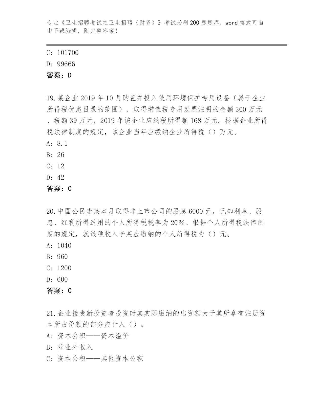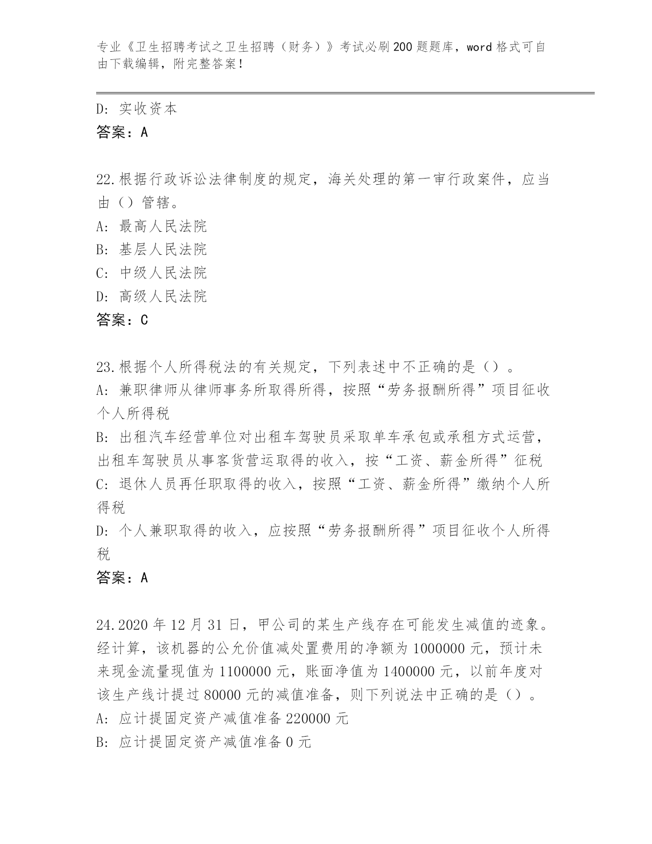 2024年黑龙江省庆安县《卫生招聘考试之卫生招聘(财务)》考试必刷200题王牌题库附答案【能力提升】