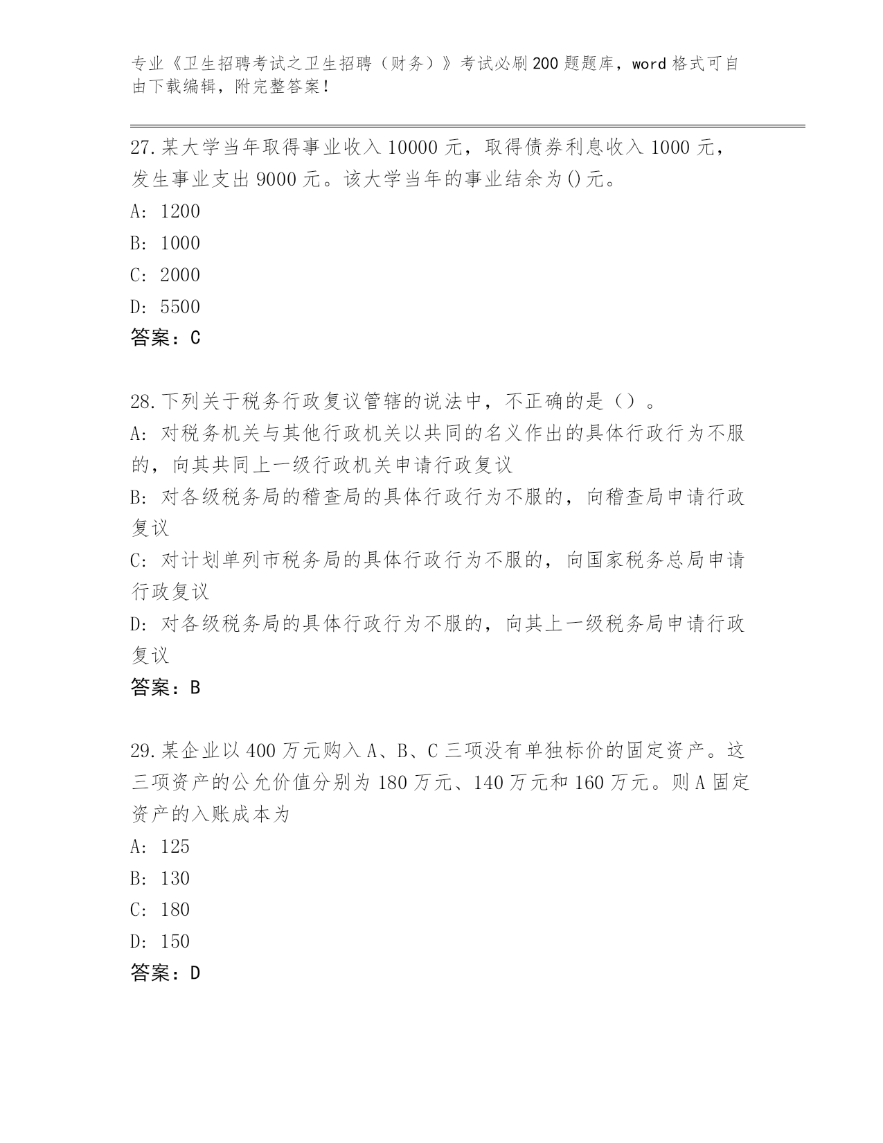2024年黑龙江省庆安县《卫生招聘考试之卫生招聘(财务)》考试必背200题王牌题库附解析答案