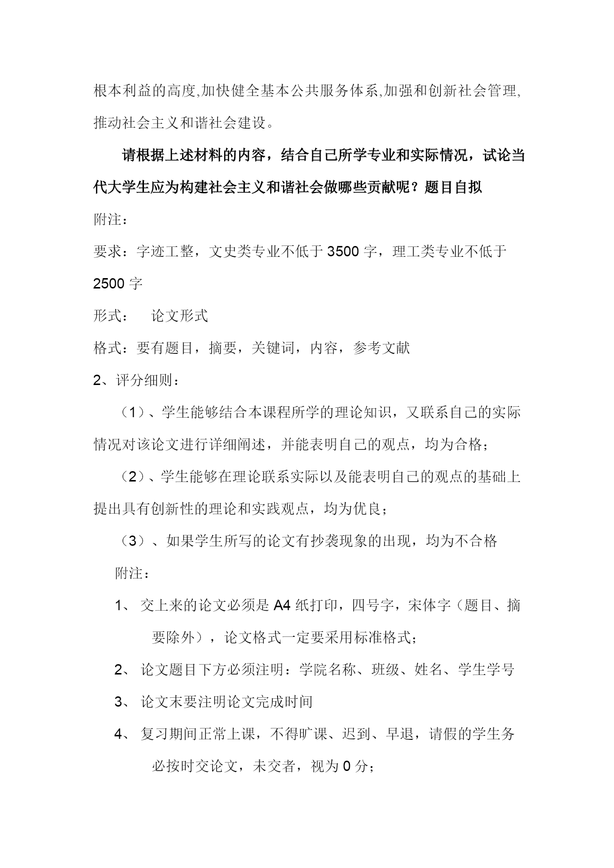 2012级《毛泽东思想和中国特色社会主义理论体系概论》考查