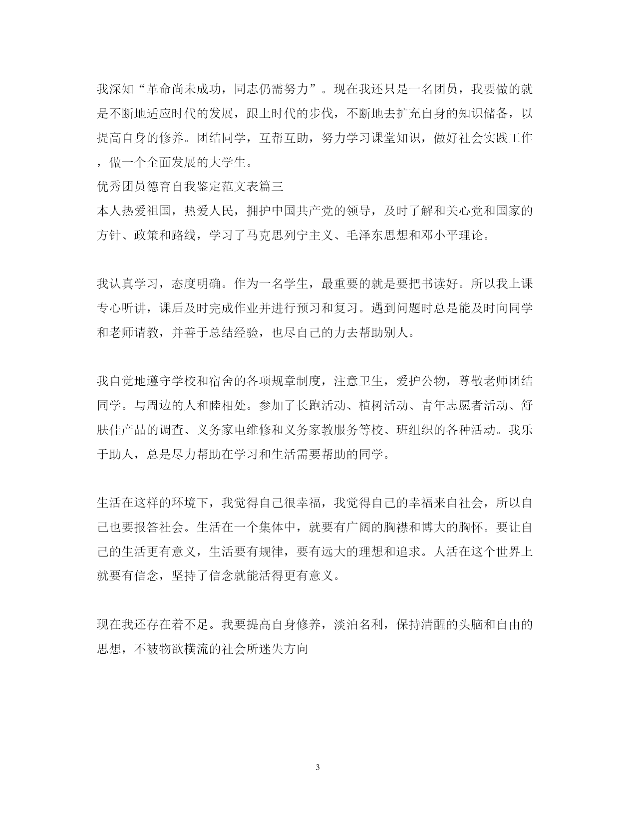 此资料由网络收集而来,如有侵权请告知上传者立即删除。资料共分享,我们负责传递知识。PAGEPAGE3优秀团员德育自我鉴定范文表团员也要经常做自我鉴定与总结,如此便能更好的发现自身不足,不断提升自己。要成为一名优秀的共青团员,要不断地适应时代的发展,跟上时代的步伐,不断地去扩充自身的知识储备,以提高自身的修养。以下是范文网小编整理的3篇优秀团员德育自我鉴定范文表,仅供参考,希望对大家有所帮助。优秀团员德育自我鉴定范文表篇一我热爱祖国,衷心拥护党的领导,关心时事政治,思想健康进步。自觉遵守《中学生守则》和《中学生日常行为规范》,具有较强的集体荣誉感,热爱劳动,先后担任过班级的体育委员和宣传委员,能以一名团员和班干部的标准要求自己,团结同学,配合老师工作,任职期间获得了老师和同学的一致好评。我勤学好问,在高中三年学习生活中取得了较大进步,并做到了各科的均衡发展。在完成课业学习任务的同时,我积极参加了化学学科的夏令营和竞赛活动,拓宽了自己的课外知识面。我具有一定的组织才能,高一时曾成功地主持了一次主题班会,在全校性评比中获得了第一名。我爱好书法,具有一定的基础,曾在高二年学校组织的“迎香港回归书法现场表演赛”中获三等奖,我创作的黑板报也曾在学校举办的黑板报设计比赛中获优秀奖。我爱好文学,先后担任《青年文学报》和《南国诗报》的特约记者和撰稿人,一些文学作品也曾在报上发表。高一、高二年时,我还在课余时间里担任校图书管理员。课外知识丰富,曾在高二下学期学校举办的“迎香港回归知识竞赛”中获得第一名。在体育方面,我爱好球类运动,达到了国家规定的体育锻炼标准。高一年在校田径运动会上曾获得了男子乙组跳高比赛第三名。高二年时,我参加校健美体操队并代表学校参加了全省中学生运动会健美操比赛,获得了团体第五名,为学校赢得了荣誉。优秀团员德育自我鉴定范文表篇二思想上有了很大的进步,学习上也比较刻苦努力,现在将我大一的生活做个总结一、思想上:我积极上进,努力向党组织靠拢,并时刻用理论指导自己的行为。思想道德上的不断提高不仅为我以后加入优秀政党提供了有力支撑,而且可以为更多同学入党做好充分服务准备工作。中国共产党博爱精神是我所追求的,我相信跟着这么优秀的政党,发展的前景无限。二、学习上:我深知学习的重要性。大学时代是学习现代科学知识的黄金时代,我应该抓住这个有利的时机,用知识来武装自己的头脑。我懂得了科学规划生涯,认真学习专业知识。首先,合理安排时间,调整好作息时间,分配好学习、工作、娱乐的时间。其次,要保质保量的完成老师布置的作业,老师布置的作业一般是他(她)多年教学经验的总结,具有很高的价值,应认真完成。三、工作上:为了使自己成为一个全面发展的高素质大学生,同时,也是寻找一次为同学服务的机会,在开学之初我积极参加班委的选举,虽未能成功,但还是依然为同学服务。四、生活上:人与人之间的关系非常重要。我与室友、同班同学关系良好,大家互帮互助,团结一致。我要进一步提高个人修养,结交更多有志青年,提高自己的生活质量和水平。生活上我依然保持勤俭节约的优良作风,充分运用一切资源做到物尽其用。我深知“革命尚未成功,同志仍需努力”。现在我还只是一名团员,我要做的就是不断地适应时代的发展,跟上时代的步伐,不断地去扩充自身的知识储备,以提高自身的修养。团结同学,互帮互助,努力学习课堂知识,做好社会实践工作,做一个全面发展的大学生。优秀团员德育自我鉴定范文表篇三本人热爱祖国,热爱人民,拥护中国共产党的领导,及时了解和关心党和国家的方针、政策和路线,学习了马克思列宁主义、毛泽东思想和邓小平理论。我认真学习,态度明确。作为一名学生,最重要的就是要把书读好。所以我上课专心听讲,课后及时完成作业并进行预习和复习。遇到问题时总是能及时向同学和老师请教,并善于总结经验,也尽自己的力去帮助别人。我自觉地遵守学校和宿舍的各项规章制度,注意卫生,爱护公物,尊敬老师团结同学。与周边的人和睦相处。参加了长跑活动、植树活动、青年志愿者活动、舒肤佳产品的调查、义务家电维修和义务家教服务等校、班组织的各种活动。我乐于助人,总是尽力帮助在学习和生活需要帮助的同学。生活在这样的环境下,我觉得自己很幸福,我觉得自己的幸福来自社会,所以自己也要报答社会。生活在一个集体中,就要有广阔的胸襟和博大的胸怀。要让自己的生活更有意义,生活要有规律,要有远大的理想和追求。人活在这个世界上就要有信念,坚持了信念就能活得更有意义。现在我还存在着不足。我要提高自身修养,淡泊名利,保持清醒的头脑和自由的思想,不被物欲横流的社会所迷失方向