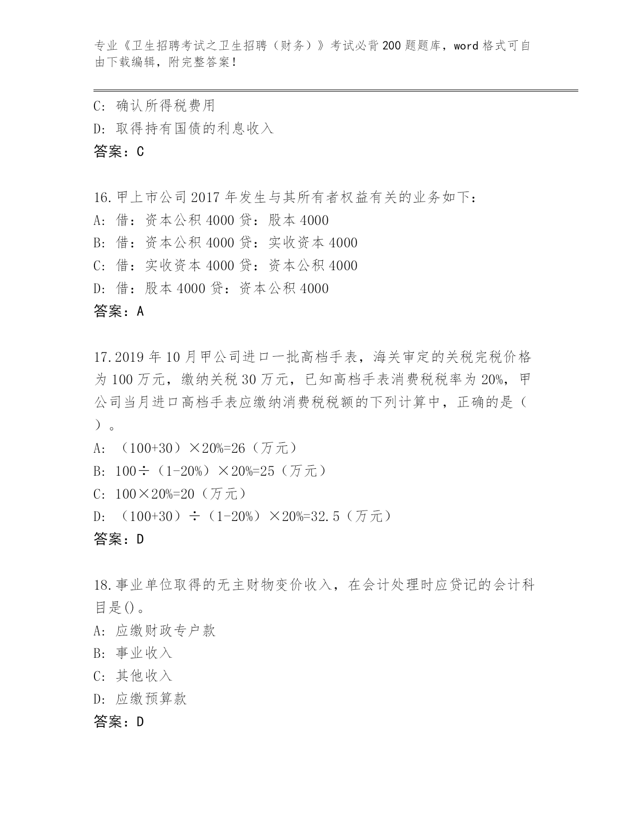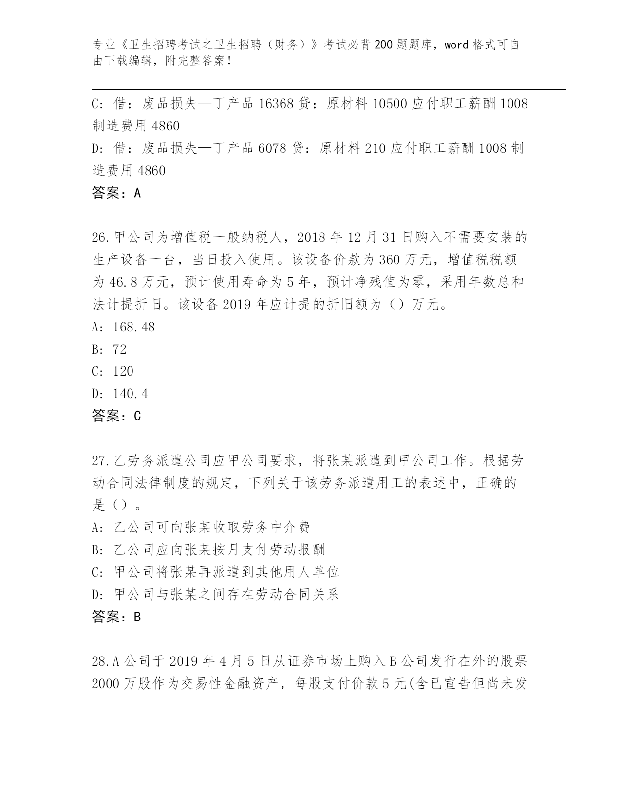 广东省宝安区《卫生招聘考试之卫生招聘(财务)》考试必背200题大全【夺分金卷】