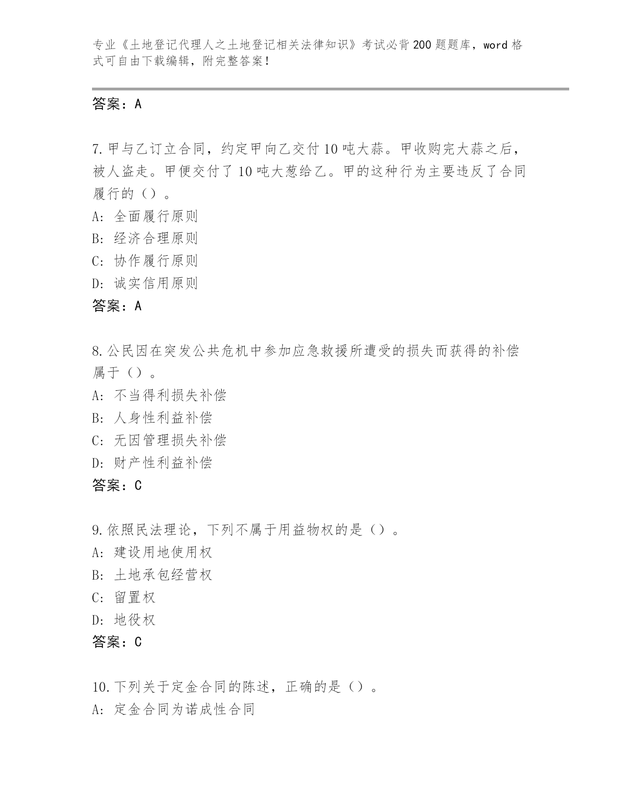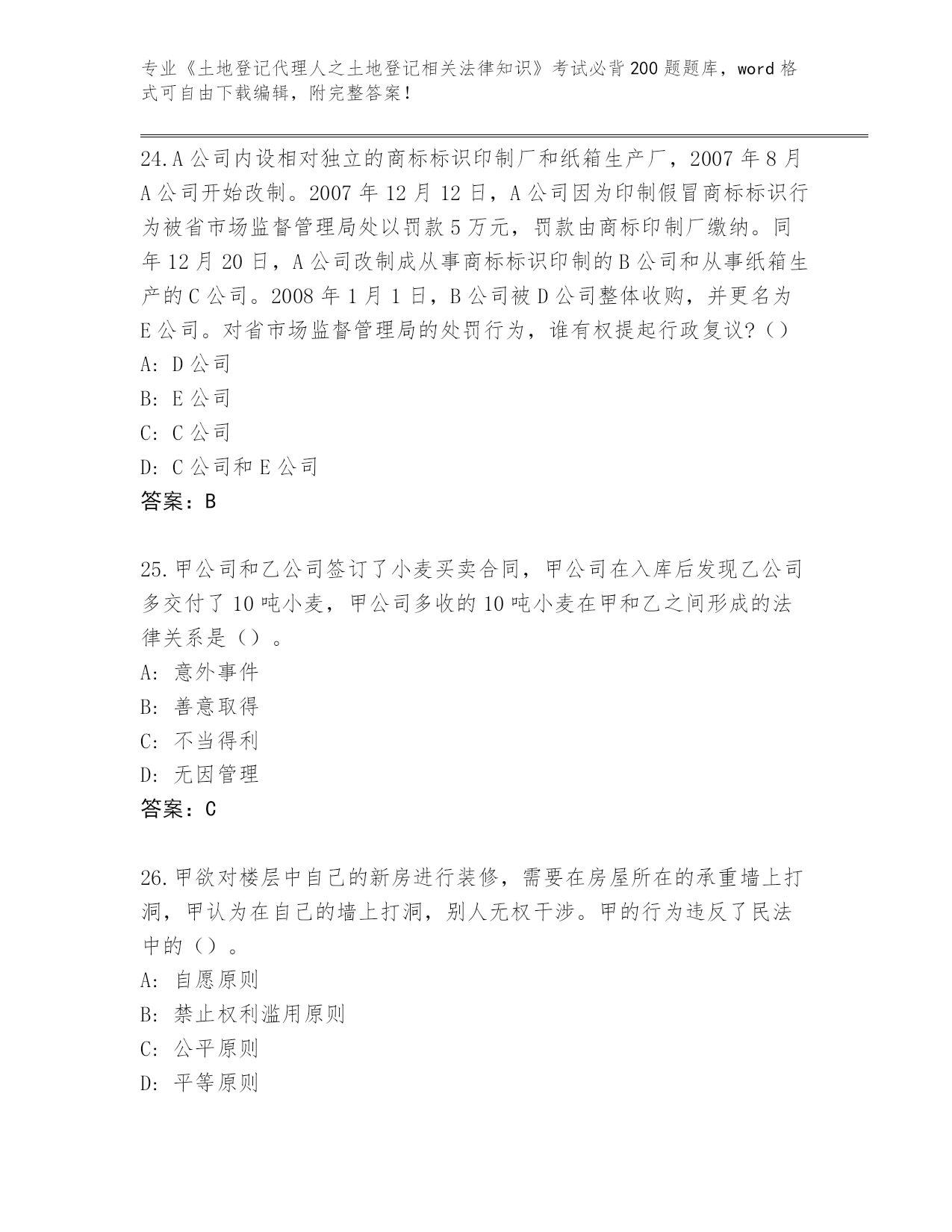 2024黑龙江省泰来县《土地登记代理人之土地登记相关法律知识》资格考试必刷200题真题(网校专用)