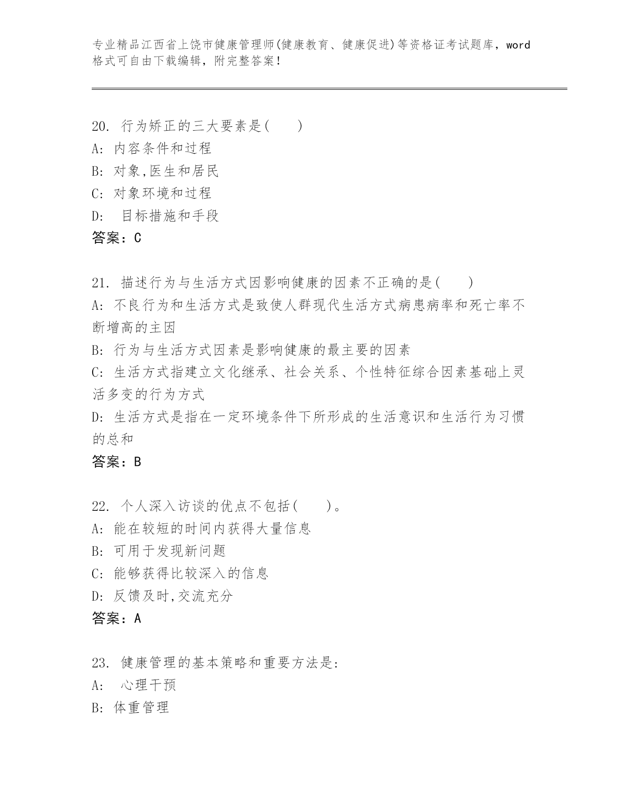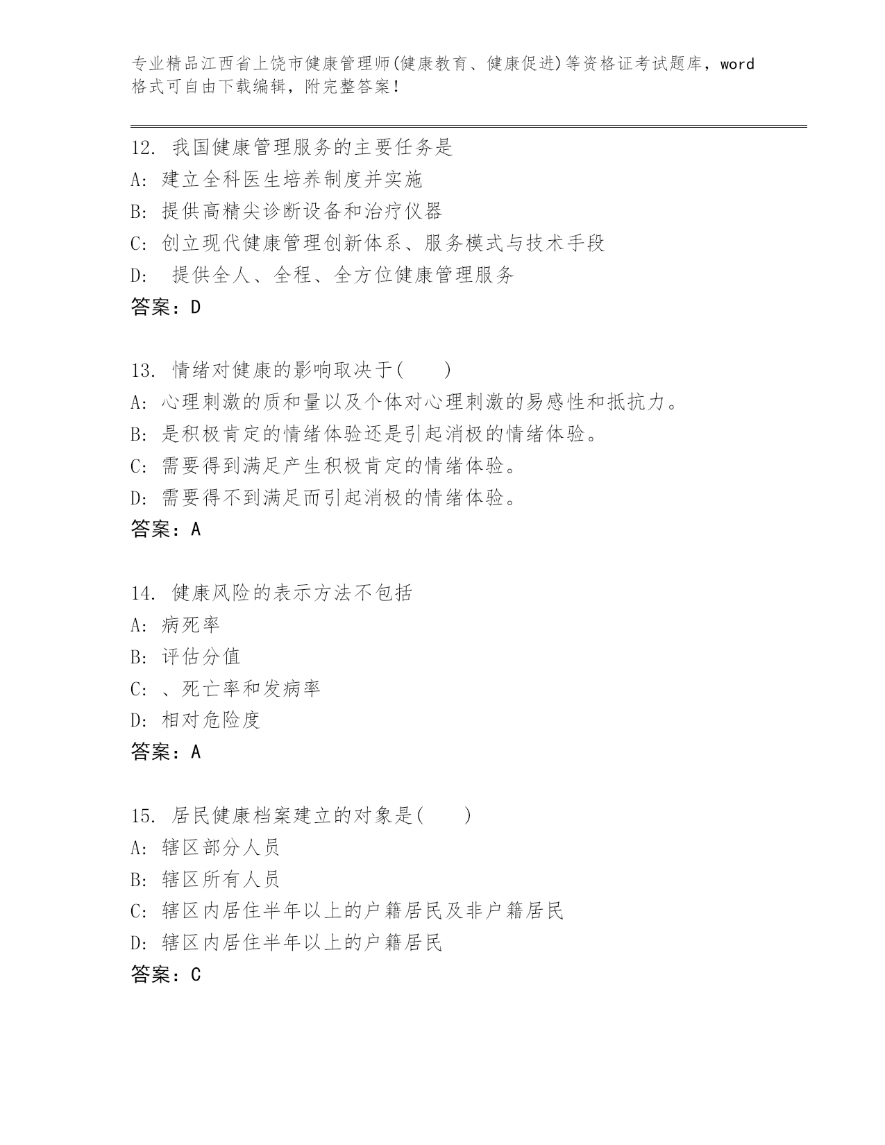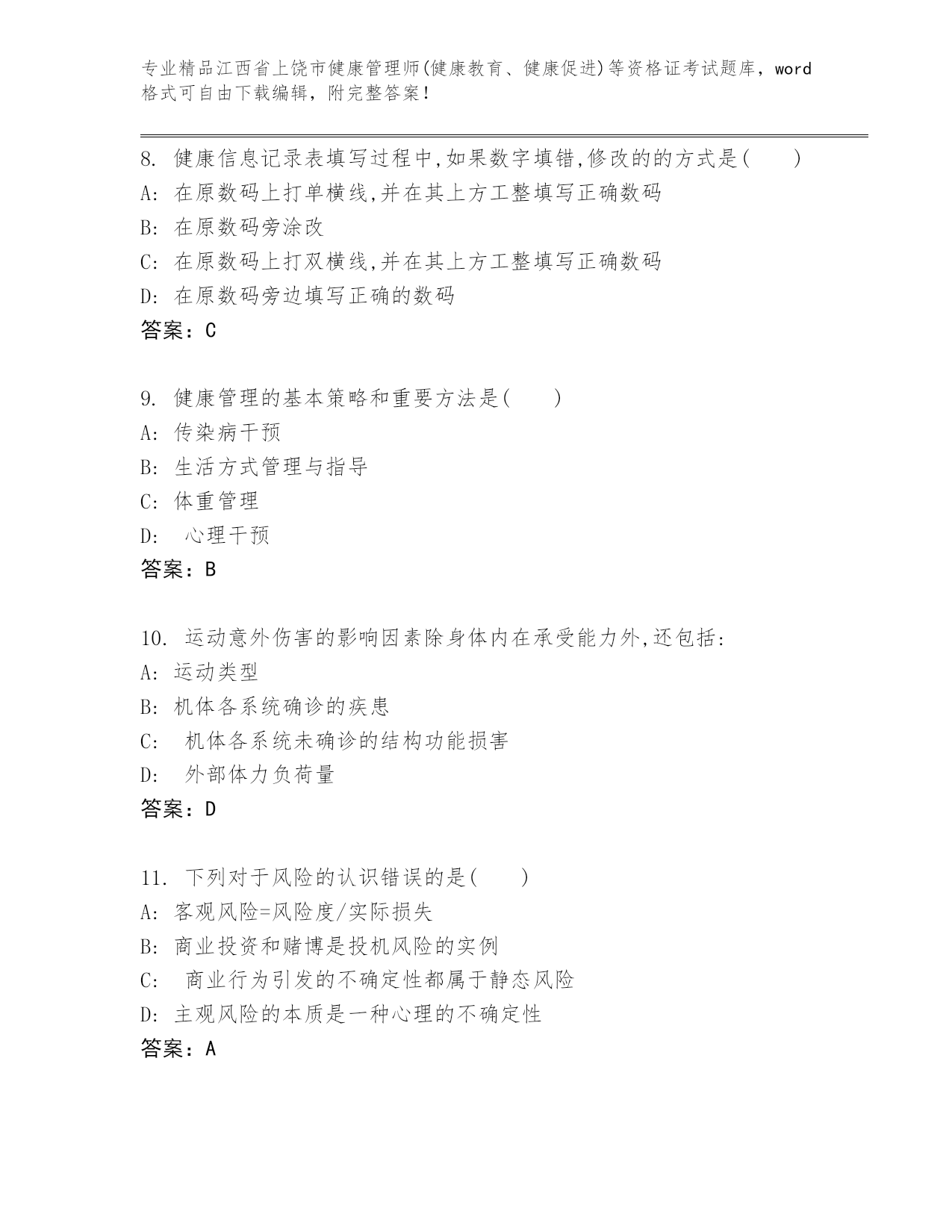 历年江西省上饶市健康管理师(健康教育、健康促进)等资格证考试(考点提分).docx
