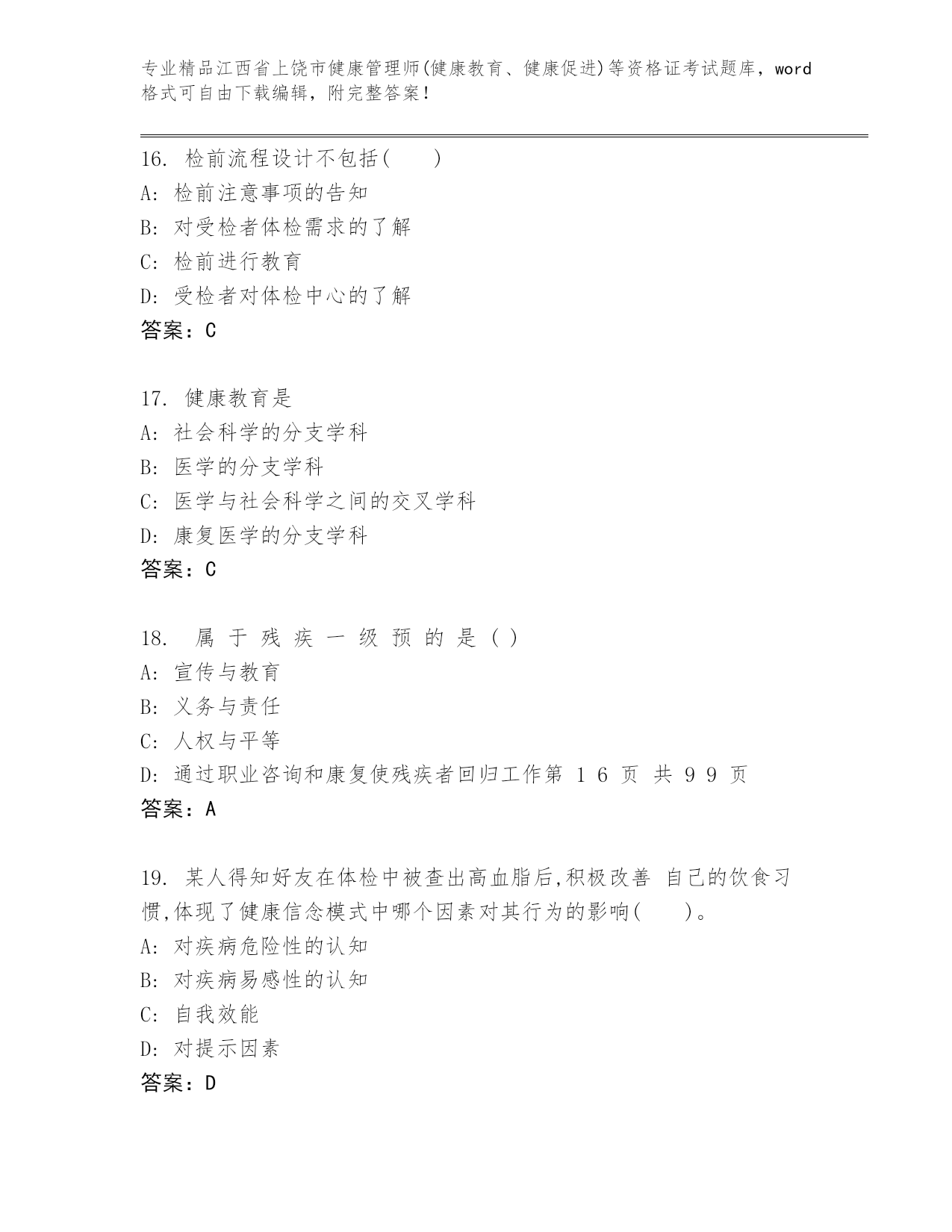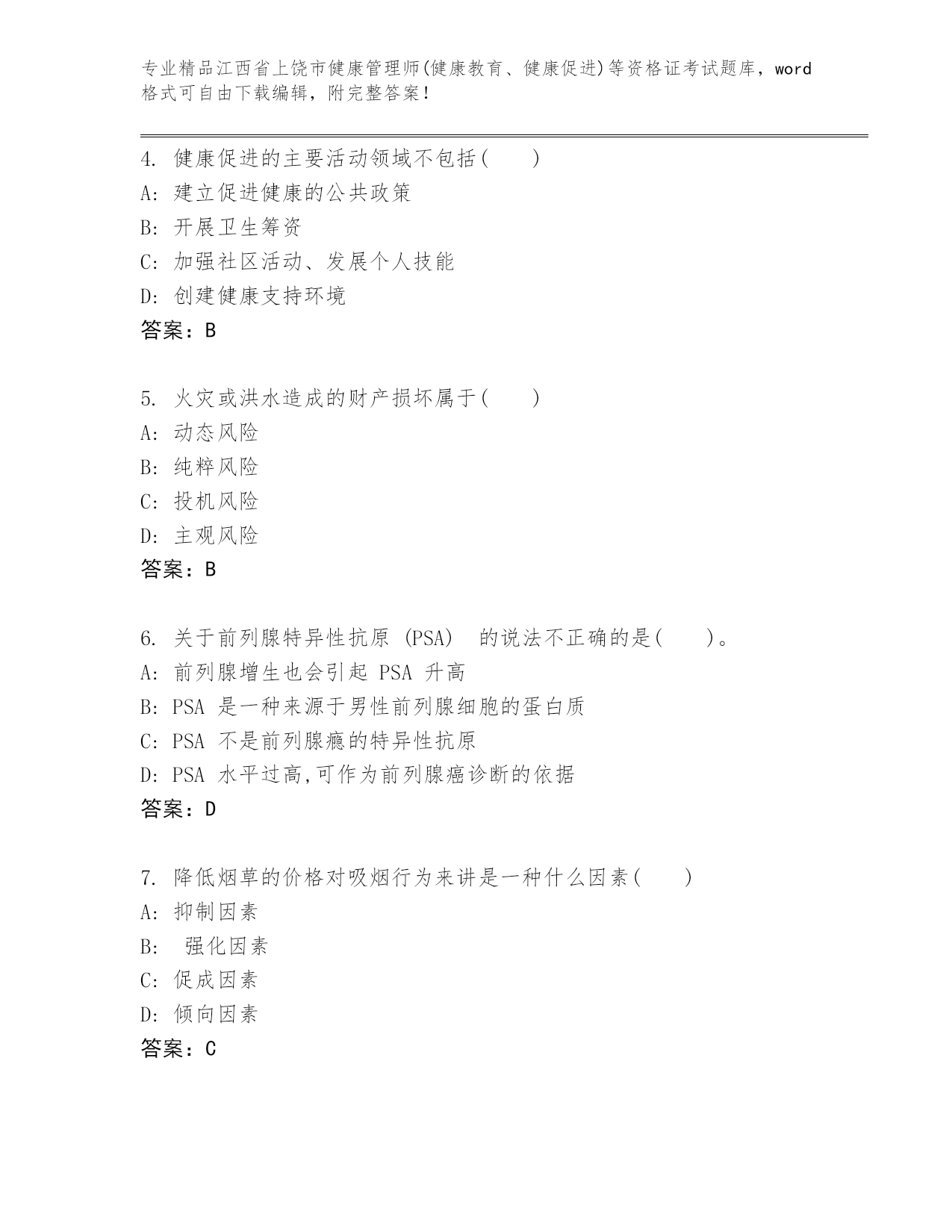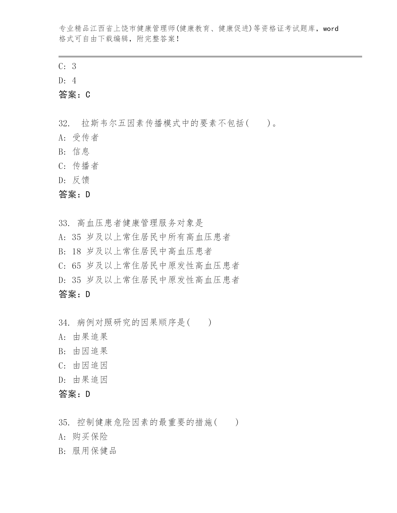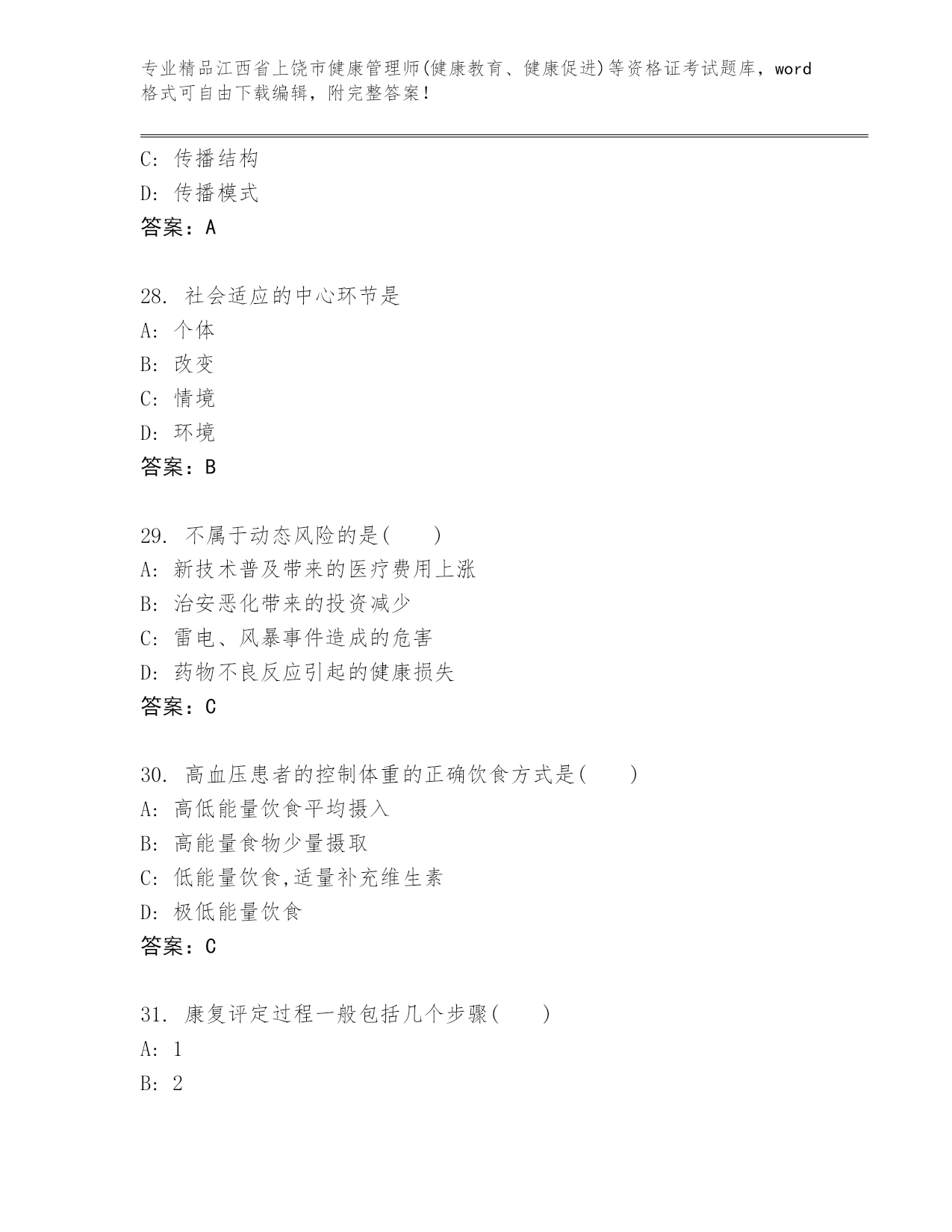 历年江西省上饶市健康管理师(健康教育、健康促进)等资格证考试(考点提分).docx