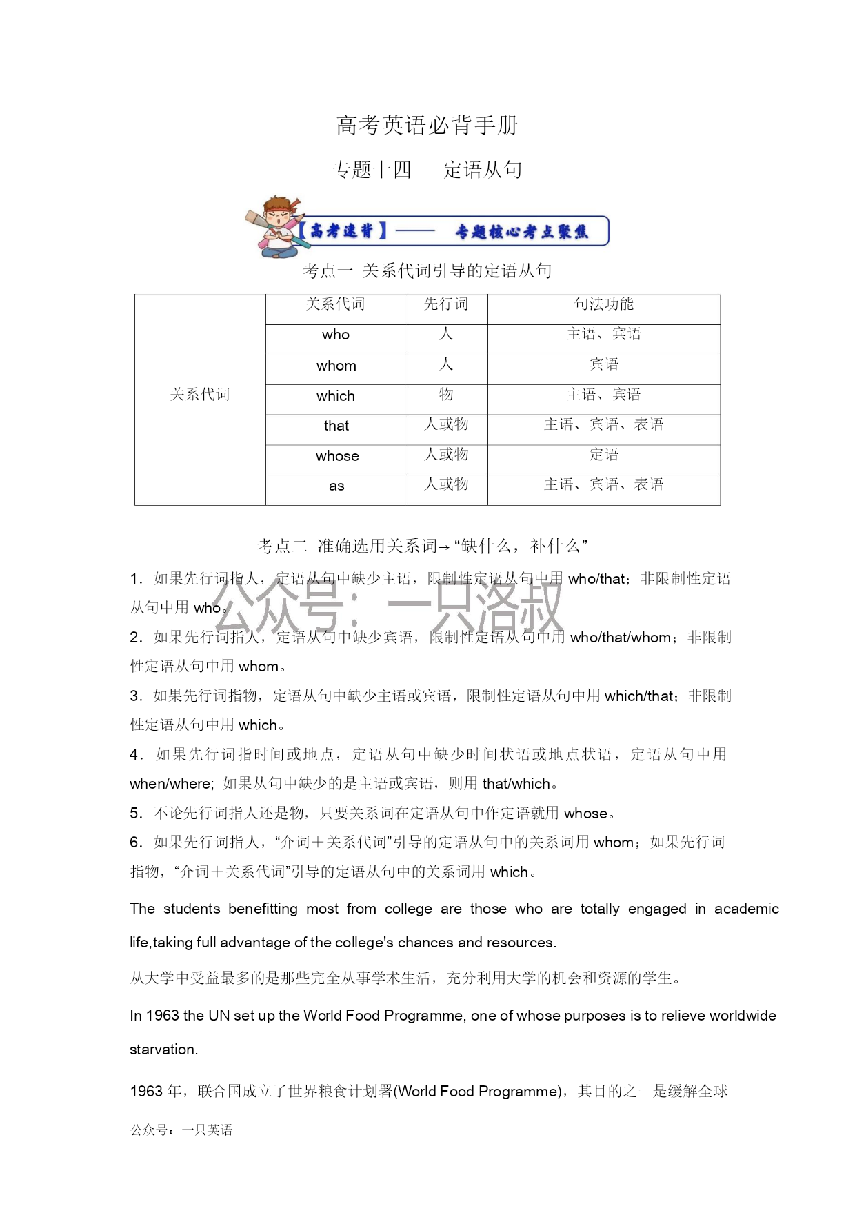 专题 14 高考英语语法【定语从句】核心考点聚焦 -高考英语必背手册