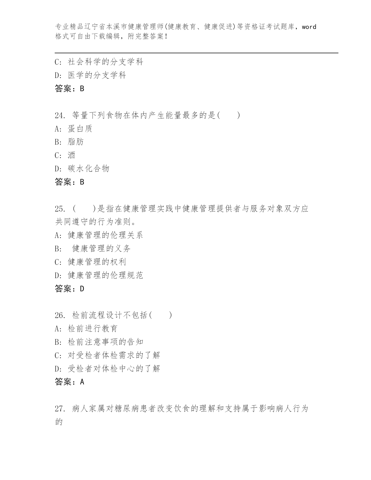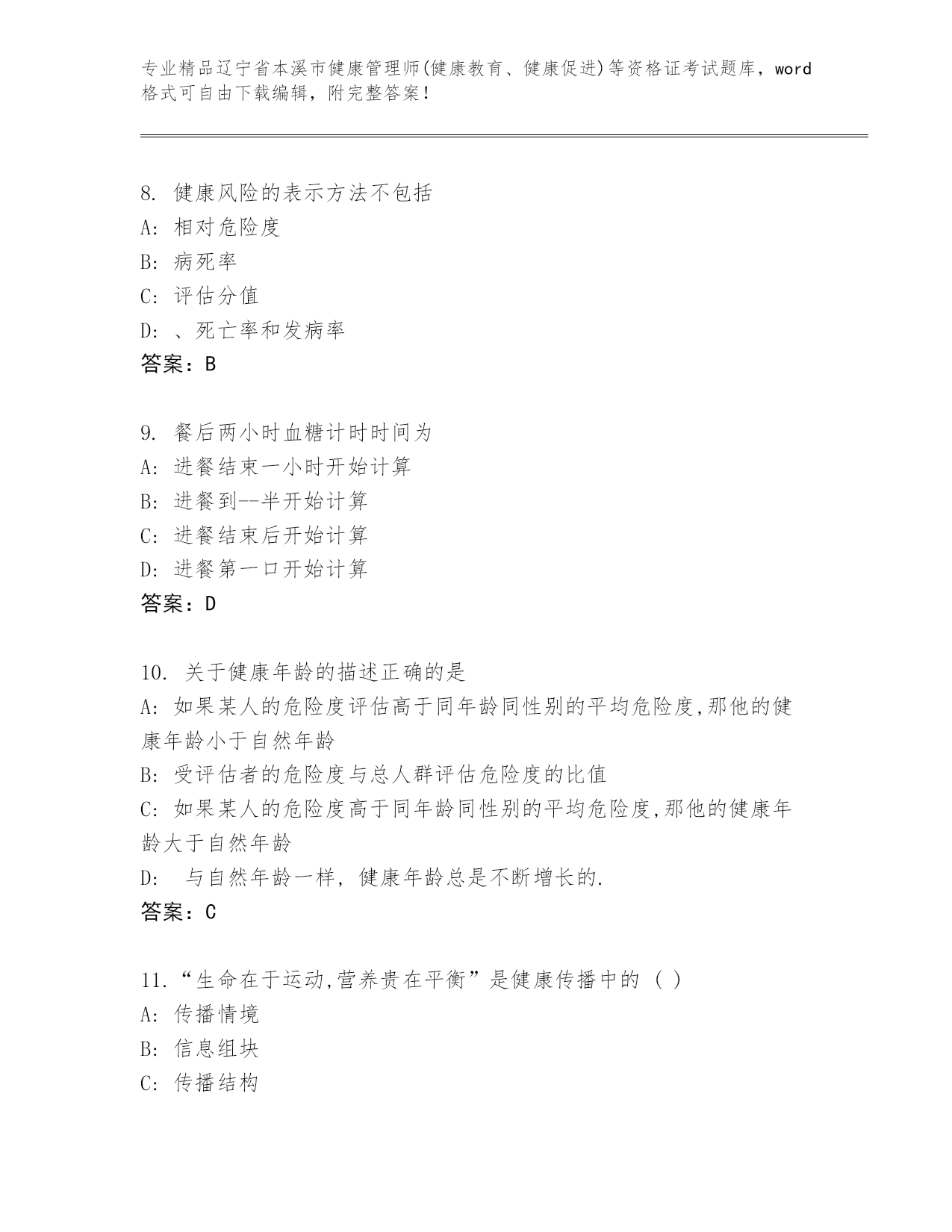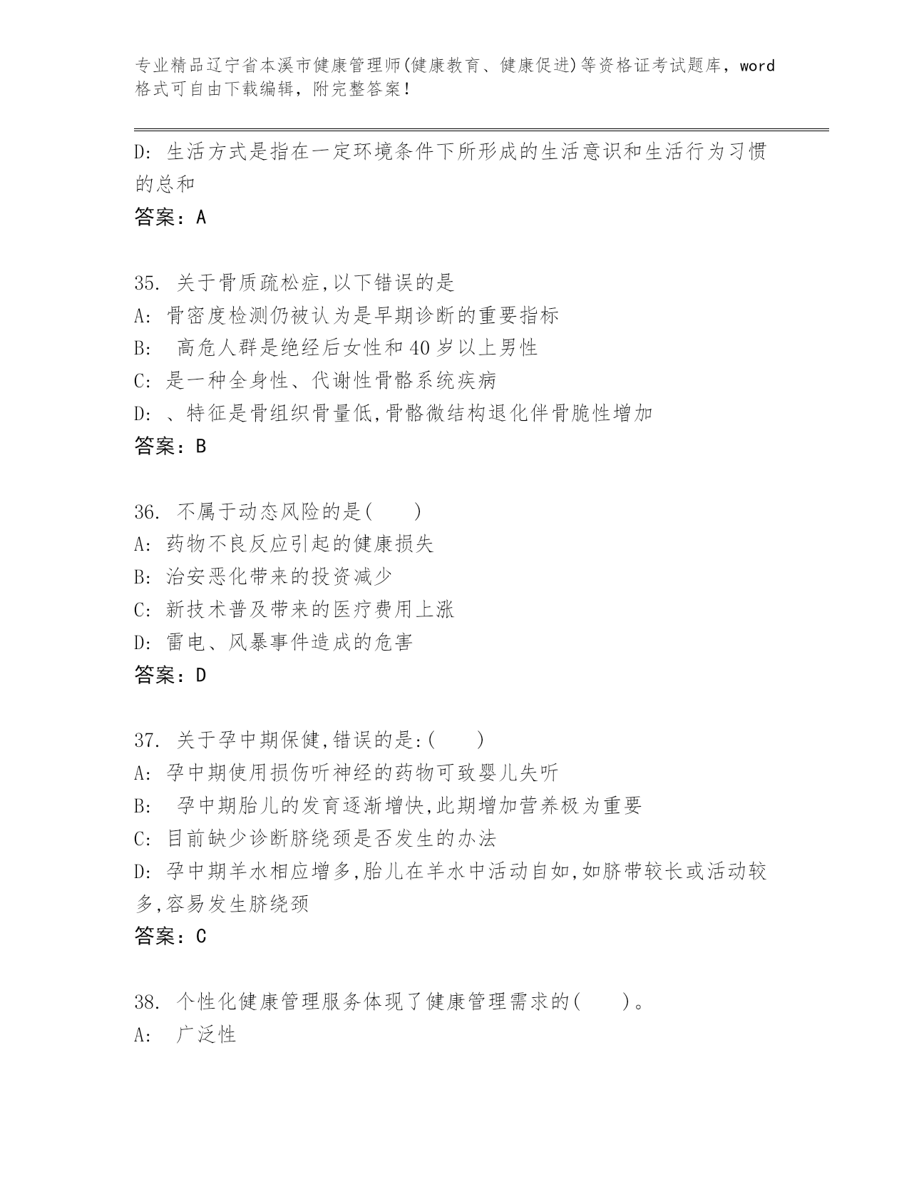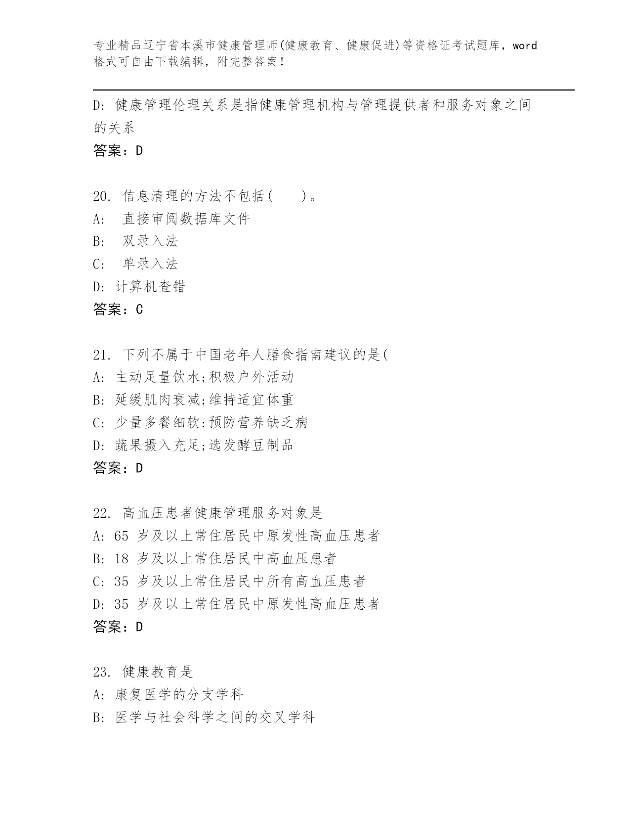 辽宁省本溪市健康管理师(健康教育、健康促进)等资格证考试优选题库【突破训练】.docx