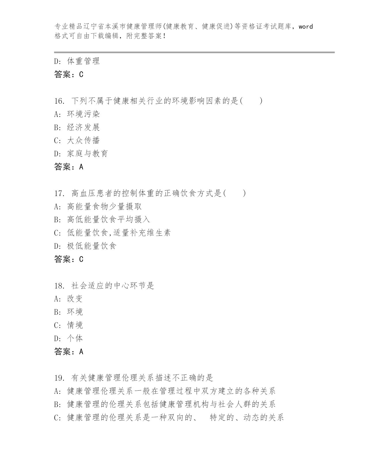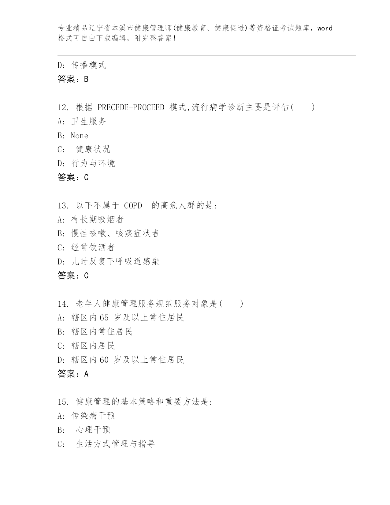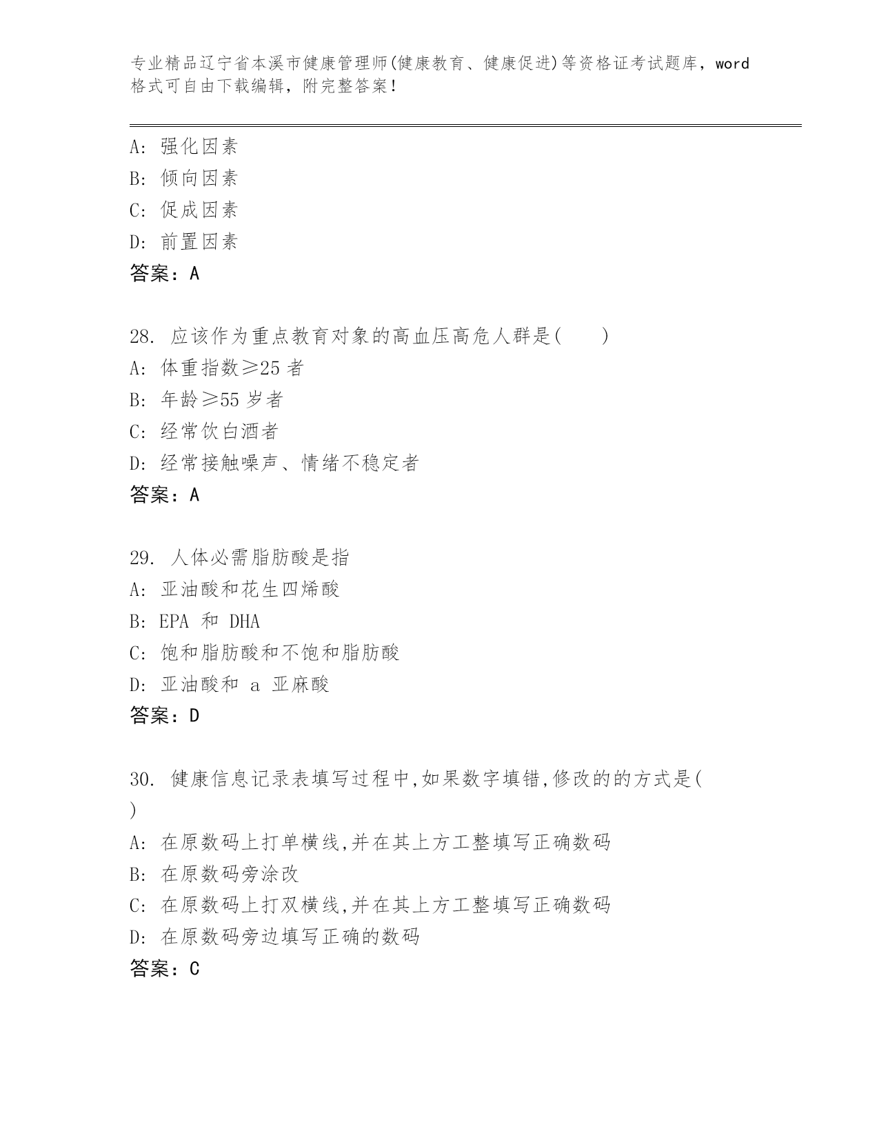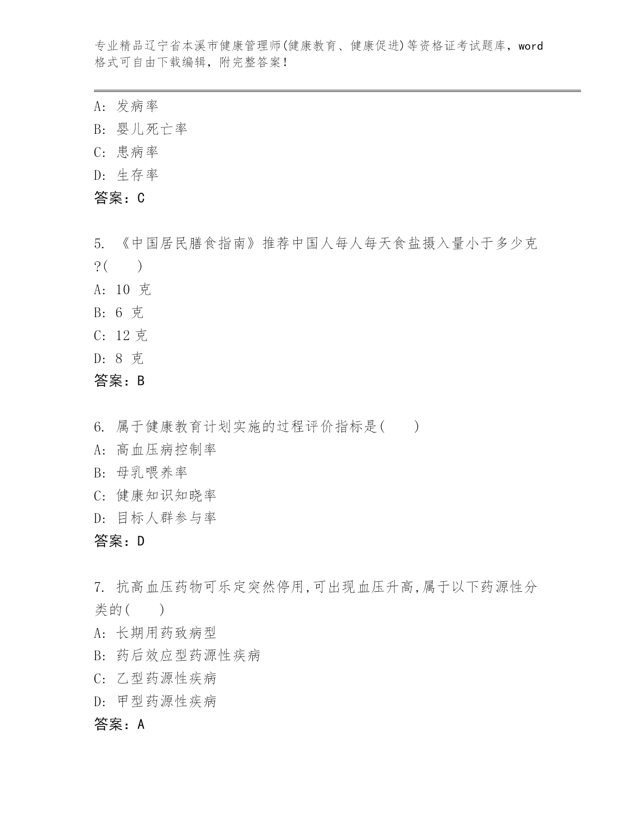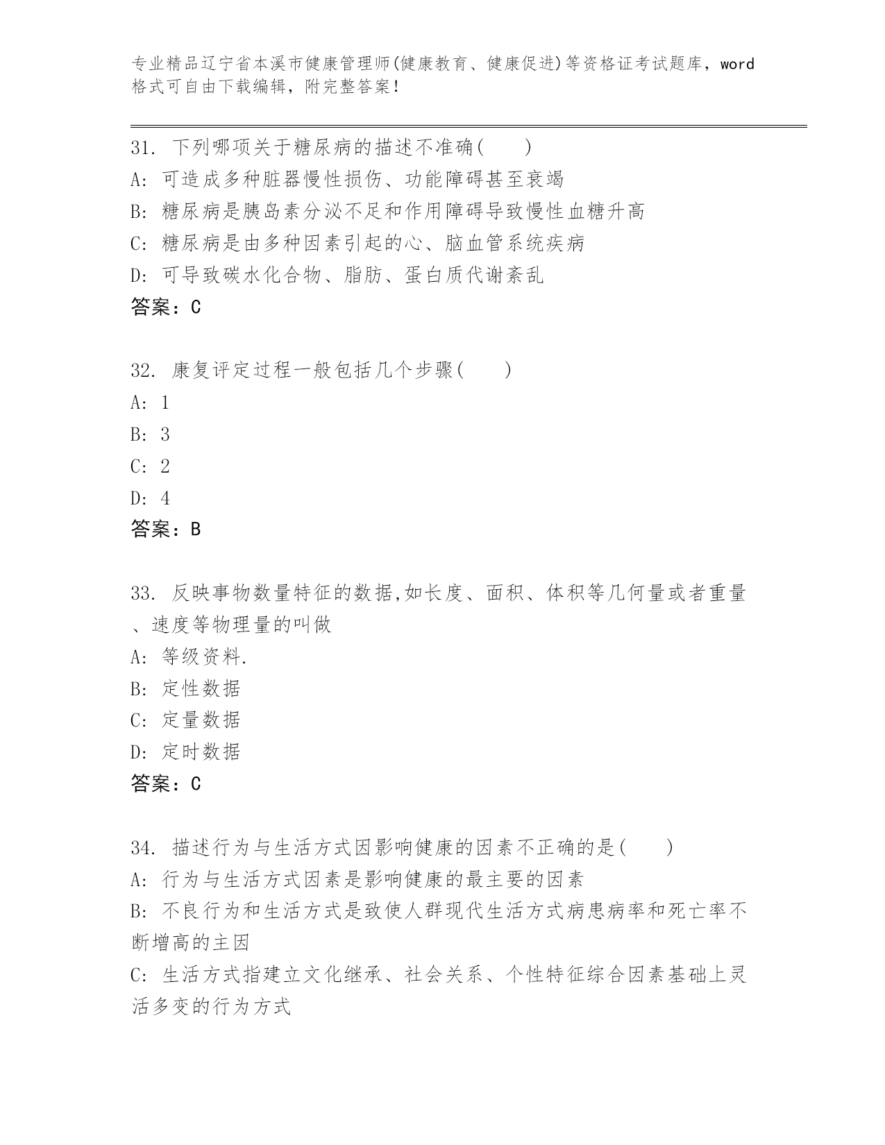 辽宁省本溪市健康管理师(健康教育、健康促进)等资格证考试优选题库【突破训练】.docx