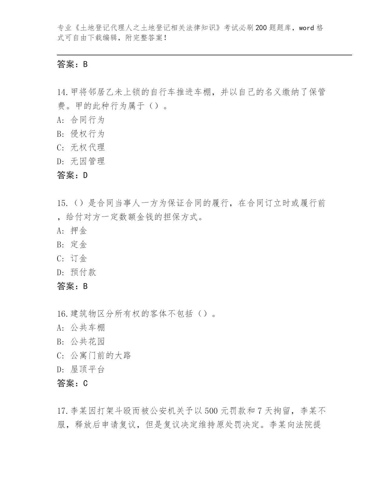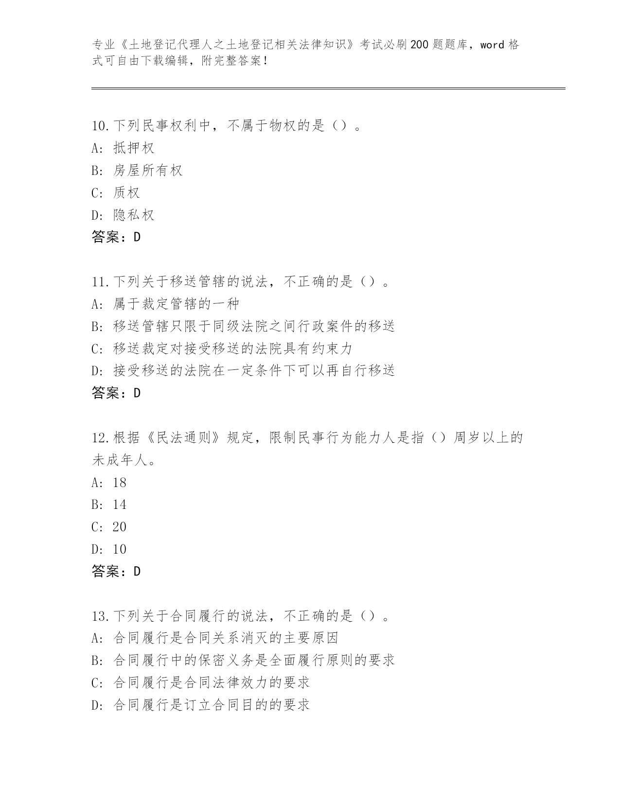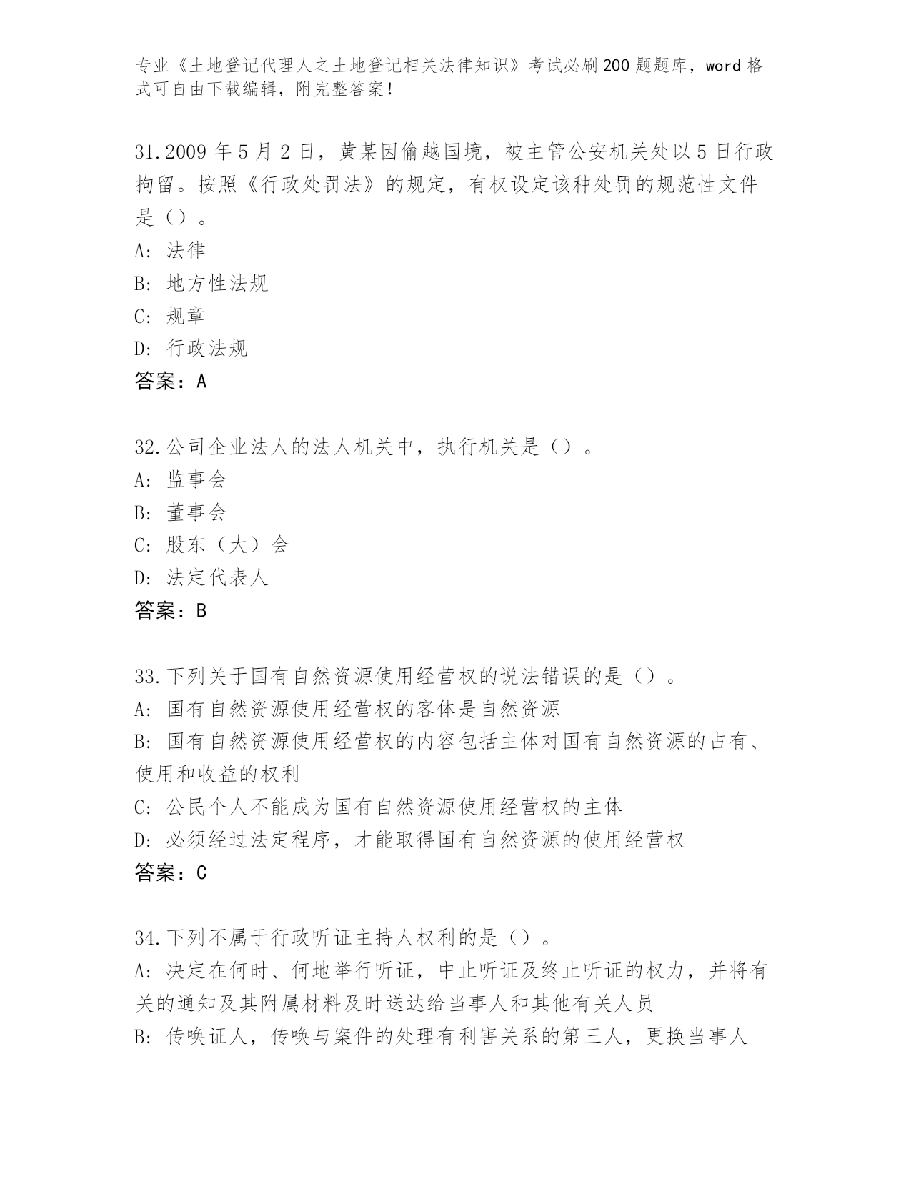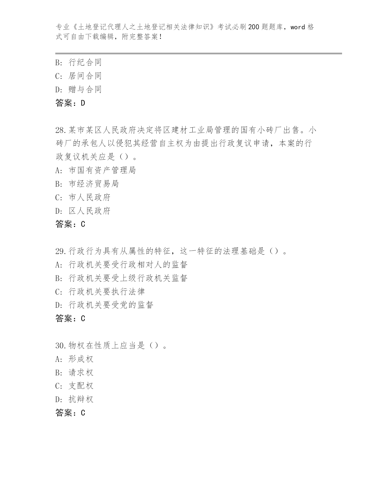 陕西省内部使用《土地登记代理人之土地登记相关法律知识》考试必刷200题题库【含答案】