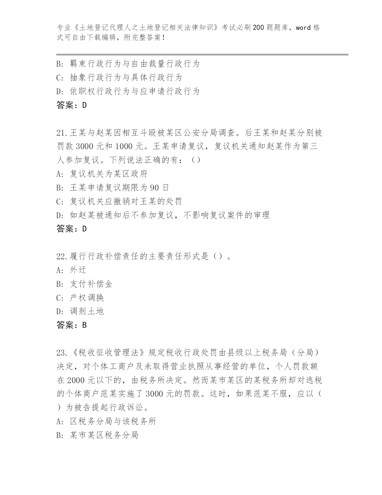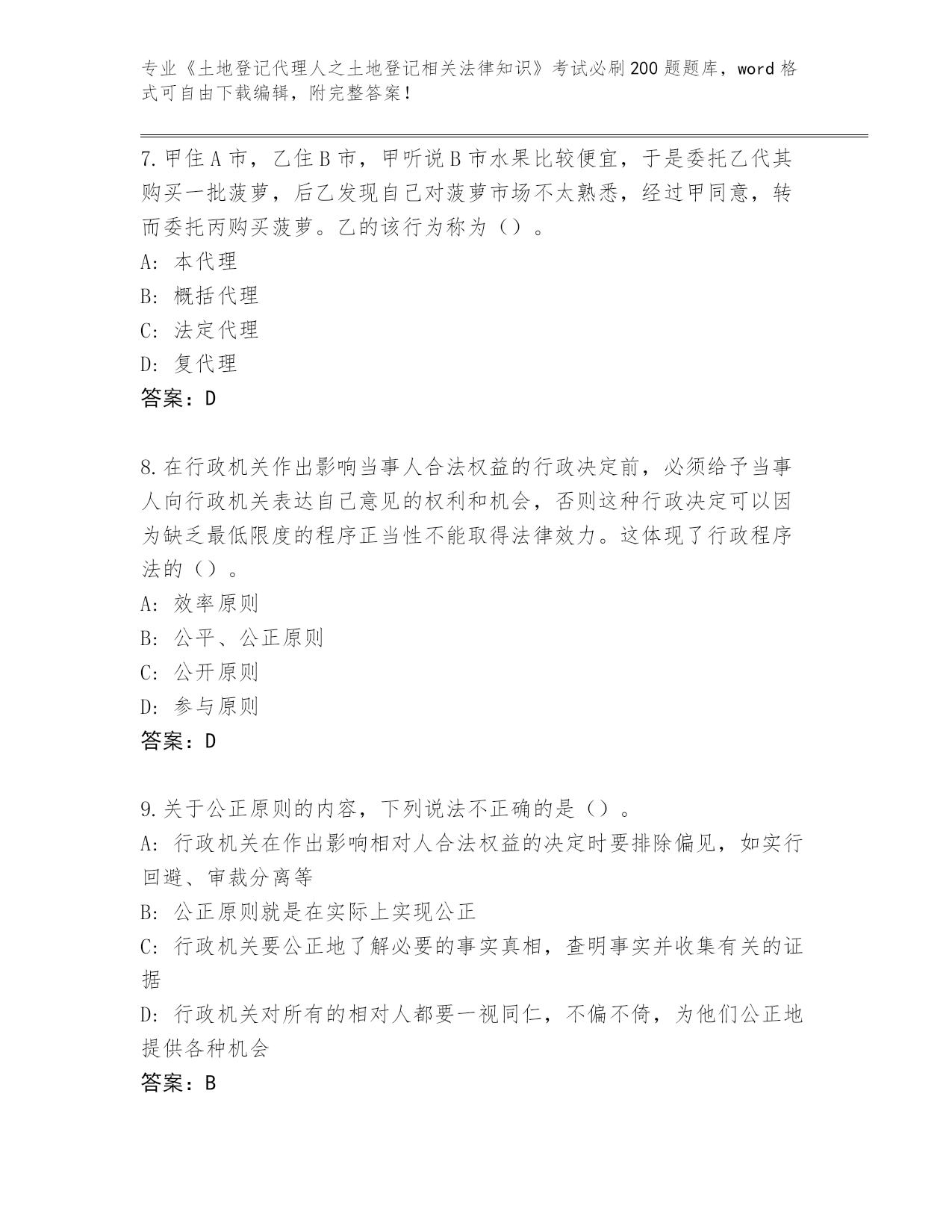 2024黑龙江省泰来县《土地登记代理人之土地登记相关法律知识》资格考试必刷200题真题(网校专用)