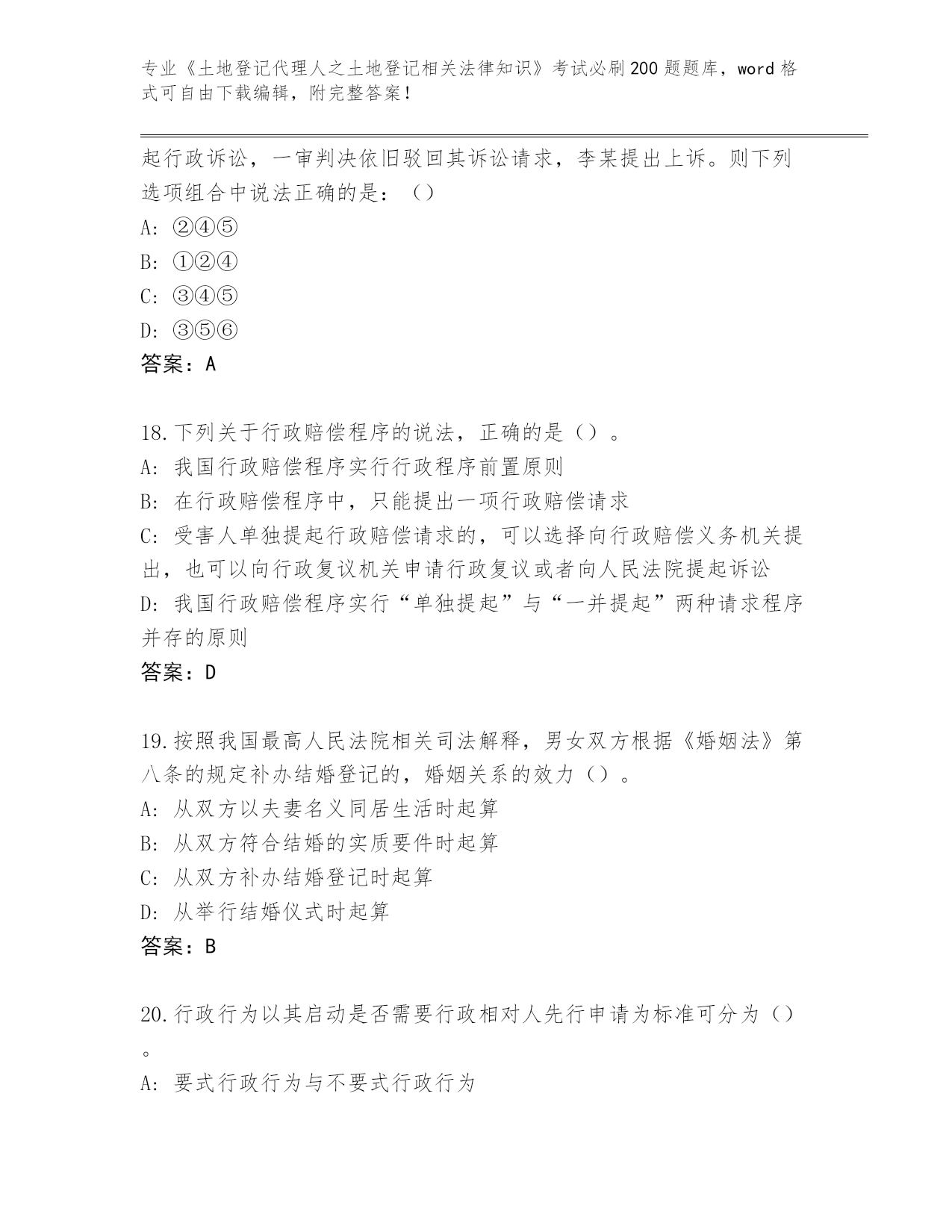 贵州省水城县2024年《土地登记代理人之土地登记相关法律知识》资格考试必刷200题真题题库含答案