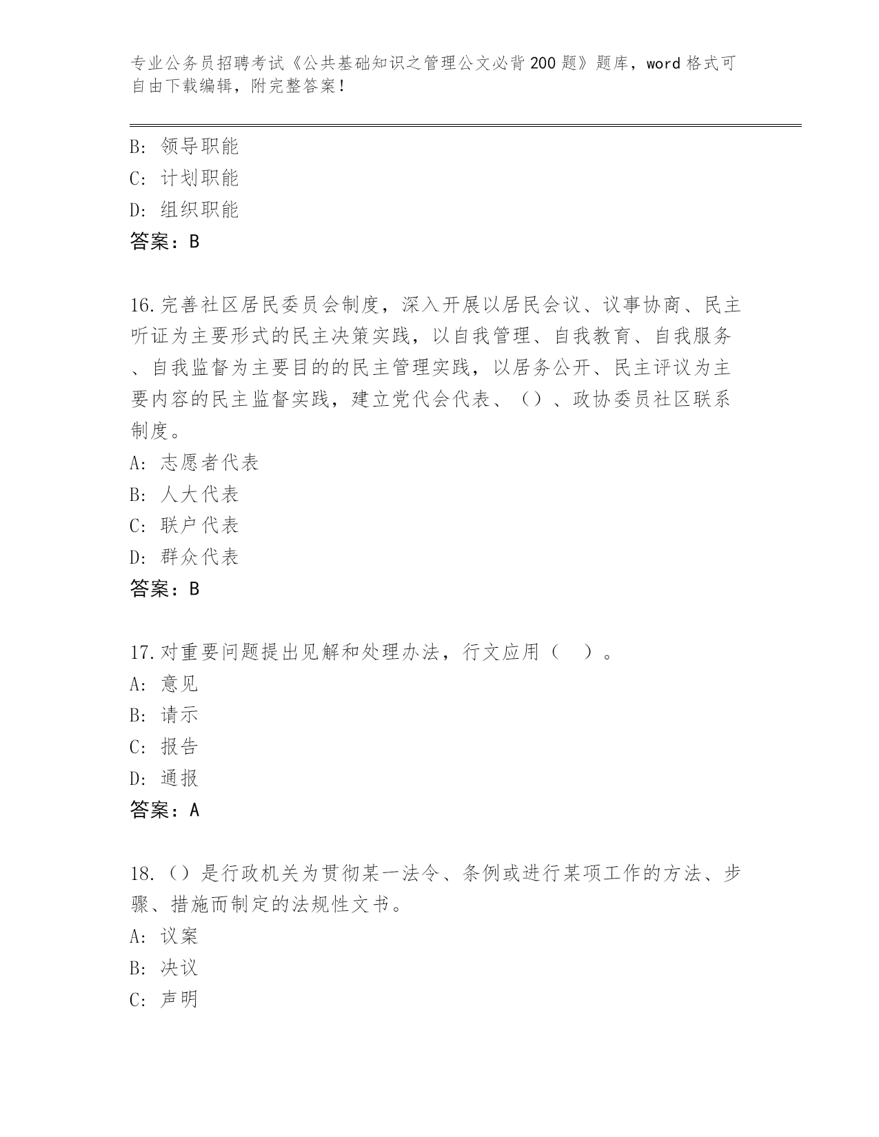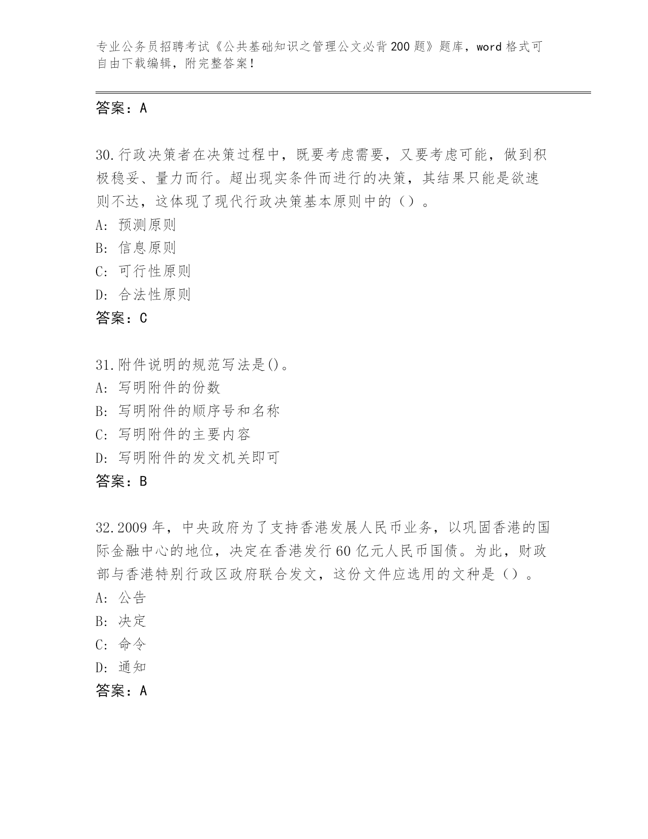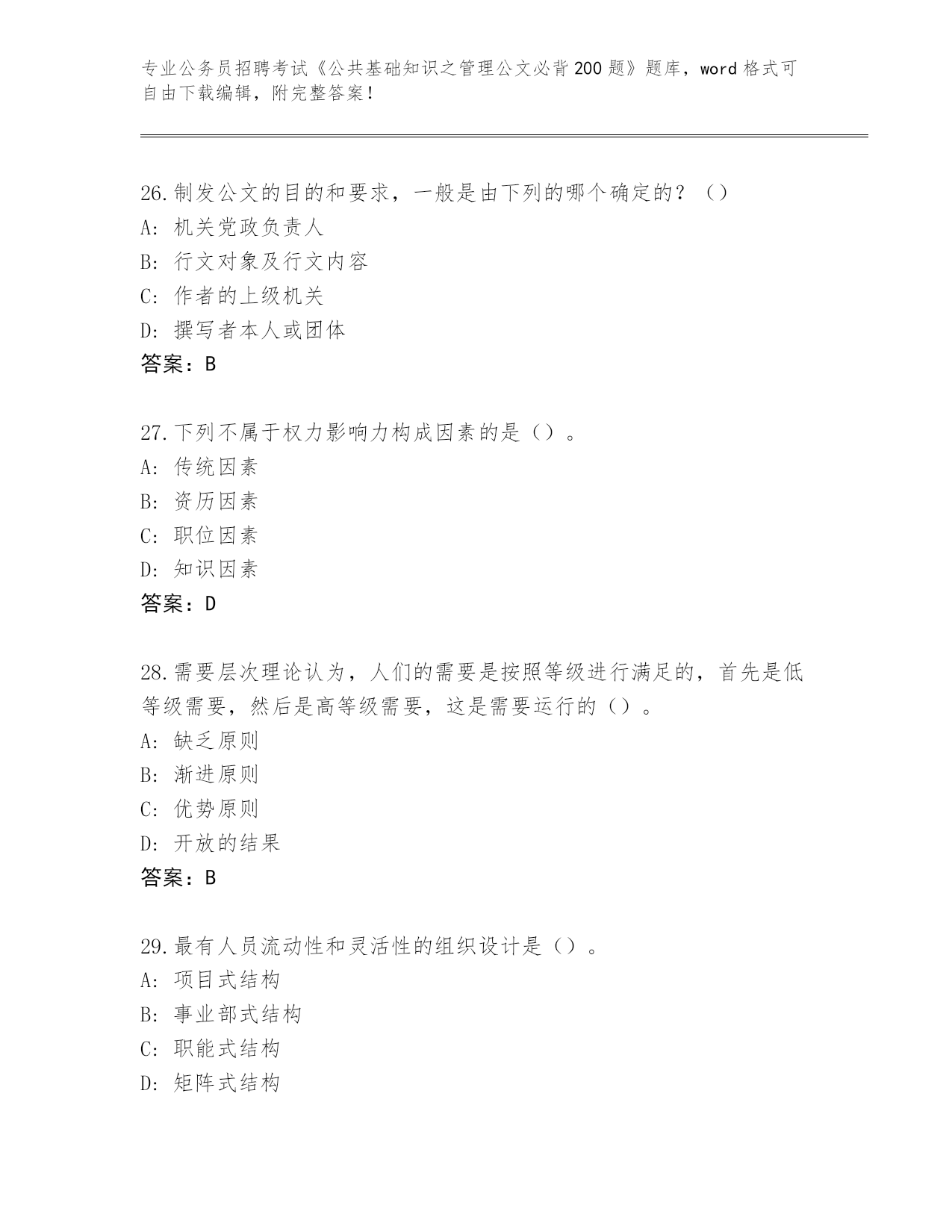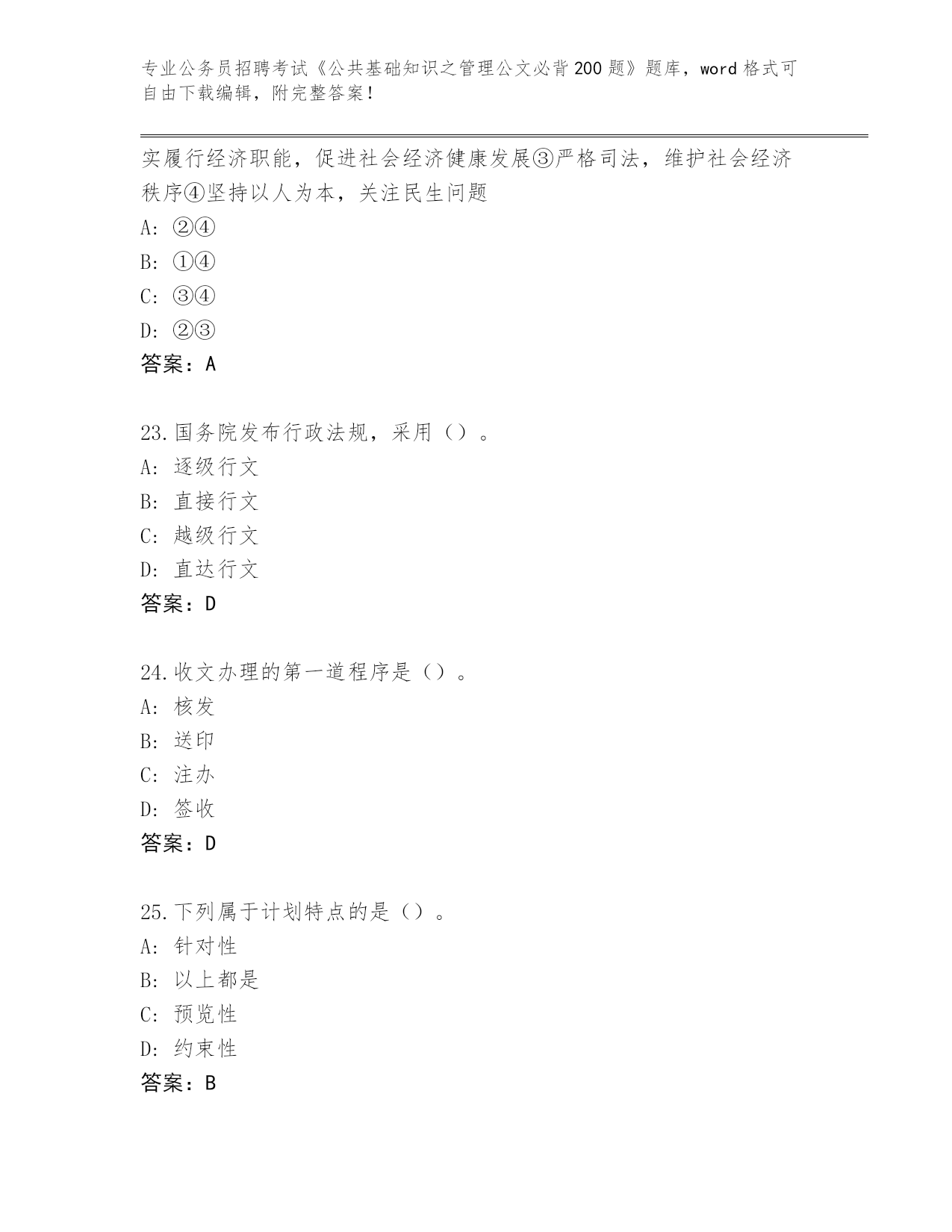 2024年山西省公务员招聘考试《公共基础知识之管理公文必背200题》真题及答案【历年真题】